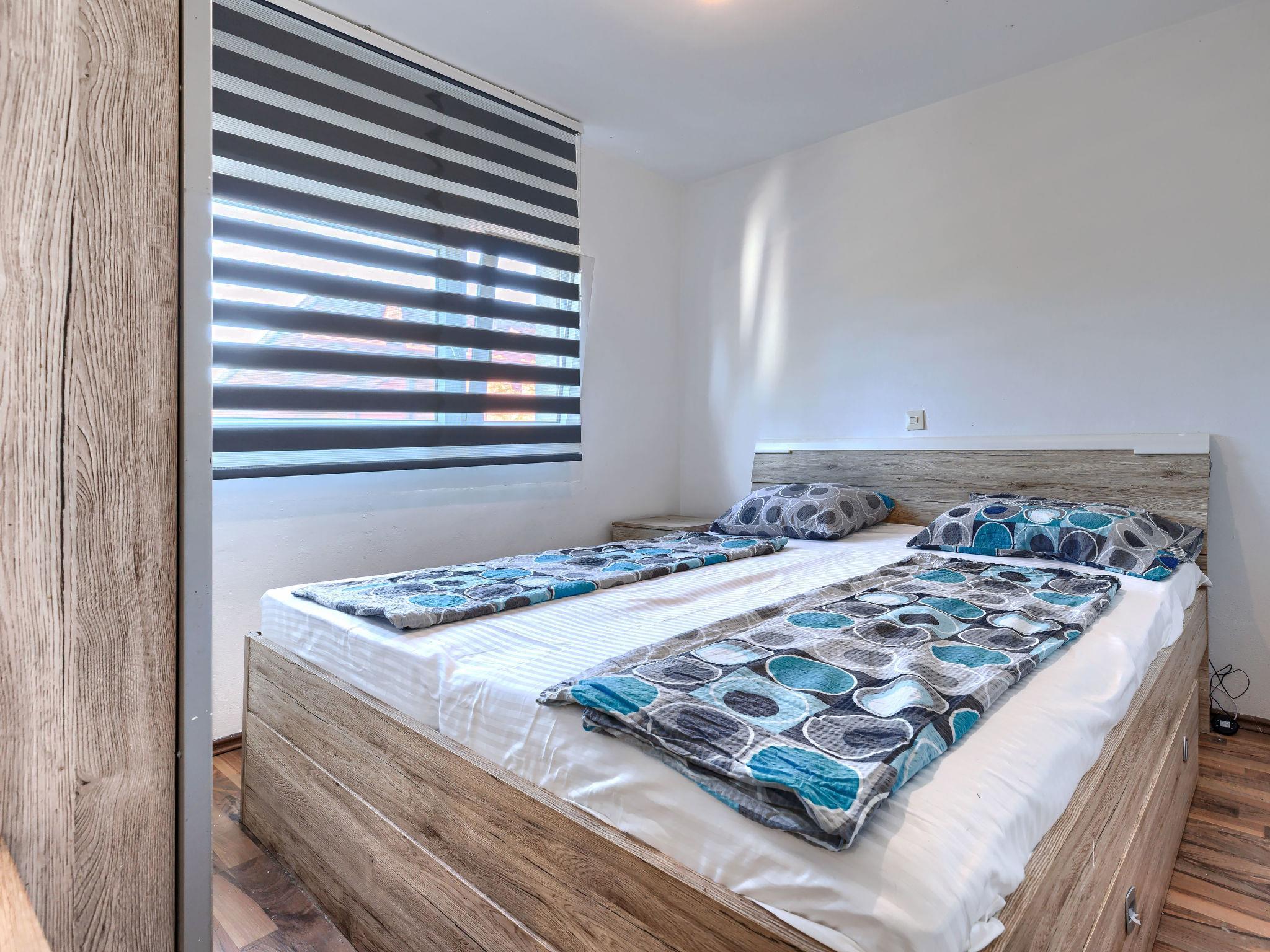 "Sabo 2", 3-room apartment 50 m2, on the ground floor. Living/dining room with 1 sofabed (160 cm, length 200 cm), satellite TV (flat screen), air conditioning. Exit to the terrace. 2 rooms, each room with 1 french bed (160 cm, length 200 cm). Open kitchen (oven, dishwasher, 4 ceramic glass hob hotplates, toaster, kettle, freezer, electric coffee machine). Shower/WC. No heating option. Terrace 15 m2. Facilities: washing machine. Internet (WiFi, free). Maximum 3 pets/ dogs allowed.