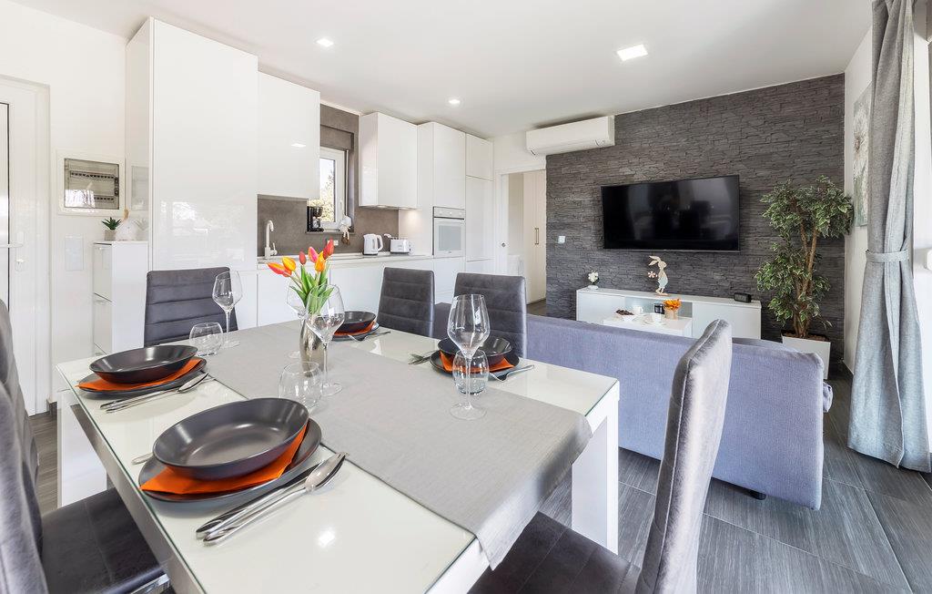 Huset har en lækker tagterrasse med jacuzzi, udendørsmøbler og en fortryllende udsigt til havet og Brijuni-øgruppen. Huset har et moderne design og er udstyret med alle nødvendige hårde hvidevarer. Fra terrassen på 1. sal kan I beundre den vidunderlige havudsigt, mens udendørsterrassen i stueetagen lægger op til jeres hyggelige morgenmadsseancer og grillmiddage. Grunden er indhegnet og har god plads samt mange lege- og fritidsaktiviteter. Her er det også tilladt at tage hunden venner med, som kan løbe frit rundt på det store grønne område sammen med børnene.