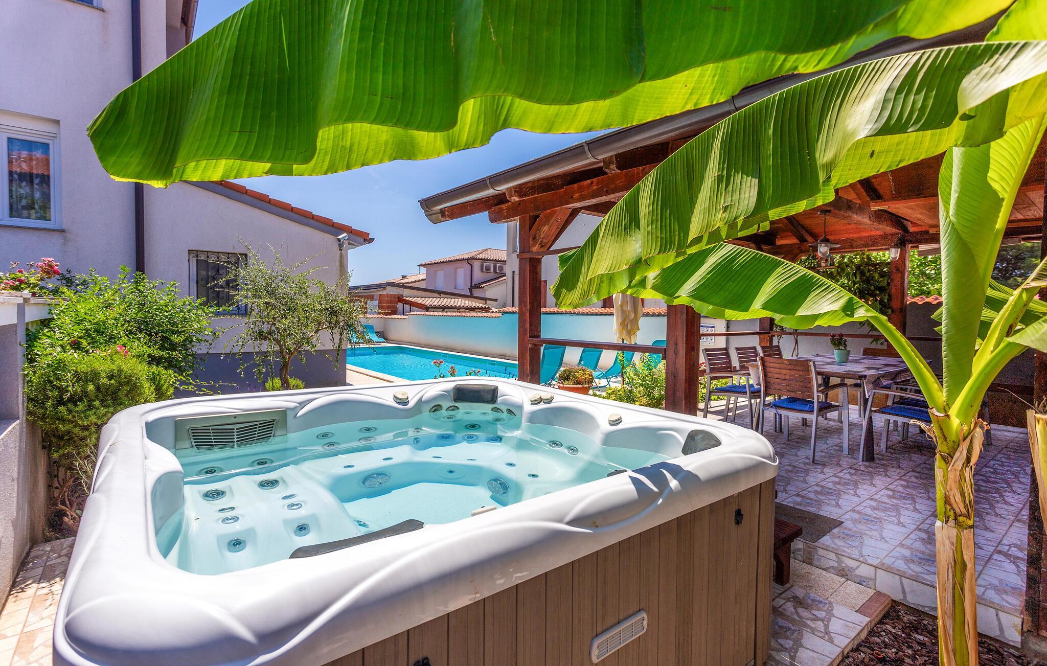 En helt fantastisk beliggenhed i Valbandon, har dette attraktive feriehus der er det perfekte valg for feriegæster der søger det helt bedste. I kan gå til de smukke kiesstrande og tilbringe dagen i solen og havet. Husets smagfulde indretning strækker sig over stueetagen, første sal og kælderen, der huser et aktivitetsrum med billard, bordfodbold, dart og karaokeanlæg til mange timers underholdning og fælles samvær. Ved siden af ligger motionsrummet. På den smukt anlagte grund er der en pool og en whirlpool. Nyd den overdækkede terrasse med sommerkøkken bord og stole til fælles samvær. Hold jer i form med det udendørs fitnessudstyr og nyd at se børnene lege på legepladsen med rutsjebane og meget mere. På solrige sommeraftener er det skønt med en gåtur gennem Fažana, med mange former for kultur og underholdning. Sæt en feriedag af til en tur i båd til nationalparken Brijuniøerne, hvor der er golfbane og en betagende natur, med unik flora og fauna. Desuden kan I bade og nyde solen.