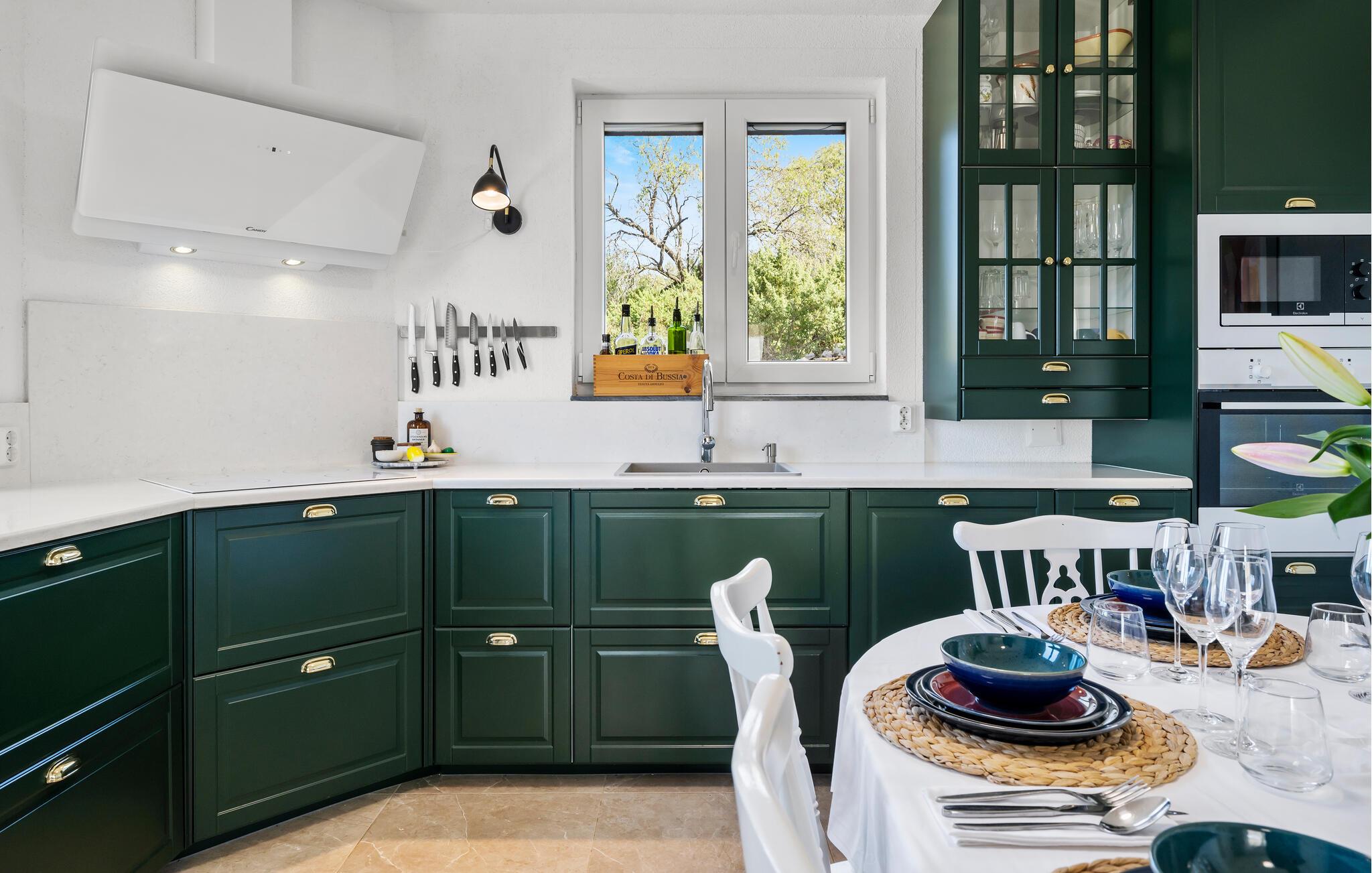 Dette stilfulde feriehus har alt, hvad I behøver for en afslappende familieferie. De lyse rum er elegant og moderne indrettet, hvilket skaber en harmonisk balance mellem komfort og stil. Tilbered lækre måltider i det veludstyrede køkken og nyd dem på en af de to rummelige terrasser – enten overdækket eller under åben himmel med en fantastisk udsigt over landskabet. Efter en forfriskende dukkert i den private pool kan I afslutte dagen med en grillmiddag og nyde den fredelige atmosfære.
