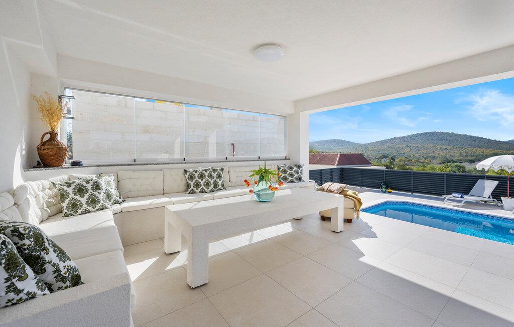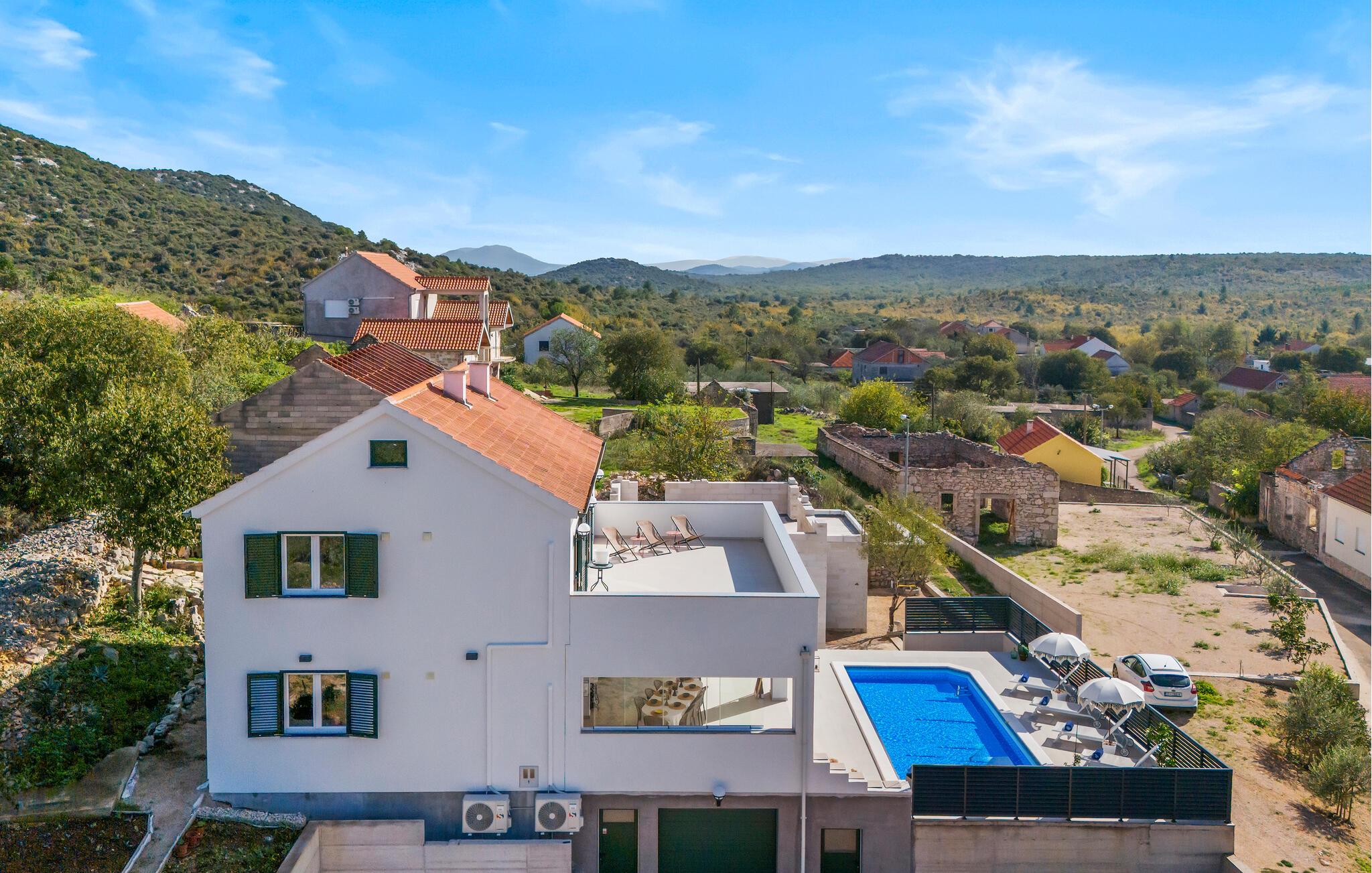 Nyd den moderne elegance i dette feriehus med pool og terrasser med udsigt.