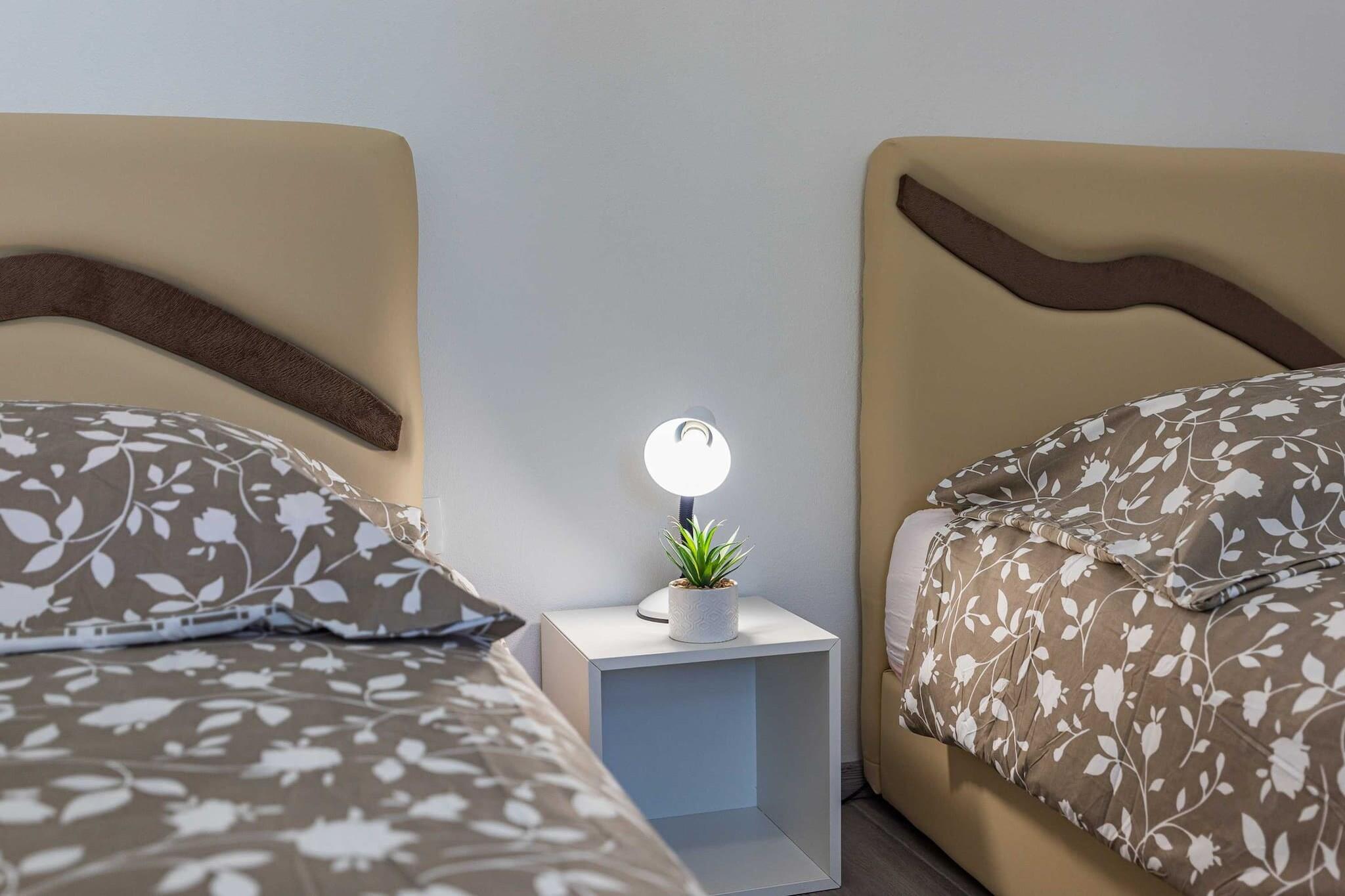 Denne charmerende villa, beliggende i den fredfyldte landsby Batvaci nær Vodnjan, tilbyder et ideelt tilflugtssted for familier, der søger afslapning. Det har to soveværelser, et badeværelse, et fuldt udstyret køkken og en hyggelig stue med en sovesofa, der kan rumme op til 4 voksne og 2 børn. Gæsterne vil nyde en smuk indhegnet gård med en opvarmet swimmingpool, udendørs bruser og jacuzzi, perfekt til at slappe af i privatlivets fred. Det udendørs køkken og spiseplads, sammen med en grill, er beliggende ved poolen under et tag, og tilbyder behagelig skygge på de varme sommerdage. Villaen tilbyder gratis privat parkering til to biler, og kæledyr er velkomne mod et tillægsgebyr. Villaen er bekvemt placeret i nærheden af Vodnjan, en by rig på historie, med attraktioner såsom St. Blaž-kirken, som har det højeste klokketårn i Istrien og en samling af helgenrelikvier og mumier. Vodnjan tilbyder også et museum i et palads fra det 14. århundrede og en oliemølle, hvor besøgende kan købe lokalt fremstillet olivenolie. Den nærmeste strand, Barbariga, ligger kun 2,5 kilometer væk og byder på muligheder for svømning, snorkling, kajaksejlads og dykning. Fažana, der ligger et par kilometer syd, giver færgeadgang til Brijuni National Park, kendt for sin fantastiske nedsænkede flora og fauna, safaripark, museer og romerske ruiner. Yderligere faciliteter omfatter aircondition, internetadgang og mulighed for at opvarme poolen mod et gebyr. Der opkræves et refunderbart depositum ved ankomsten. Gæsterne kan nyde en afslappende familieferie i private og fredelige omgivelser med adskillige aktiviteter og attraktioner i nærheden, herunder kulturelle vartegn og udendørs eventyr.
