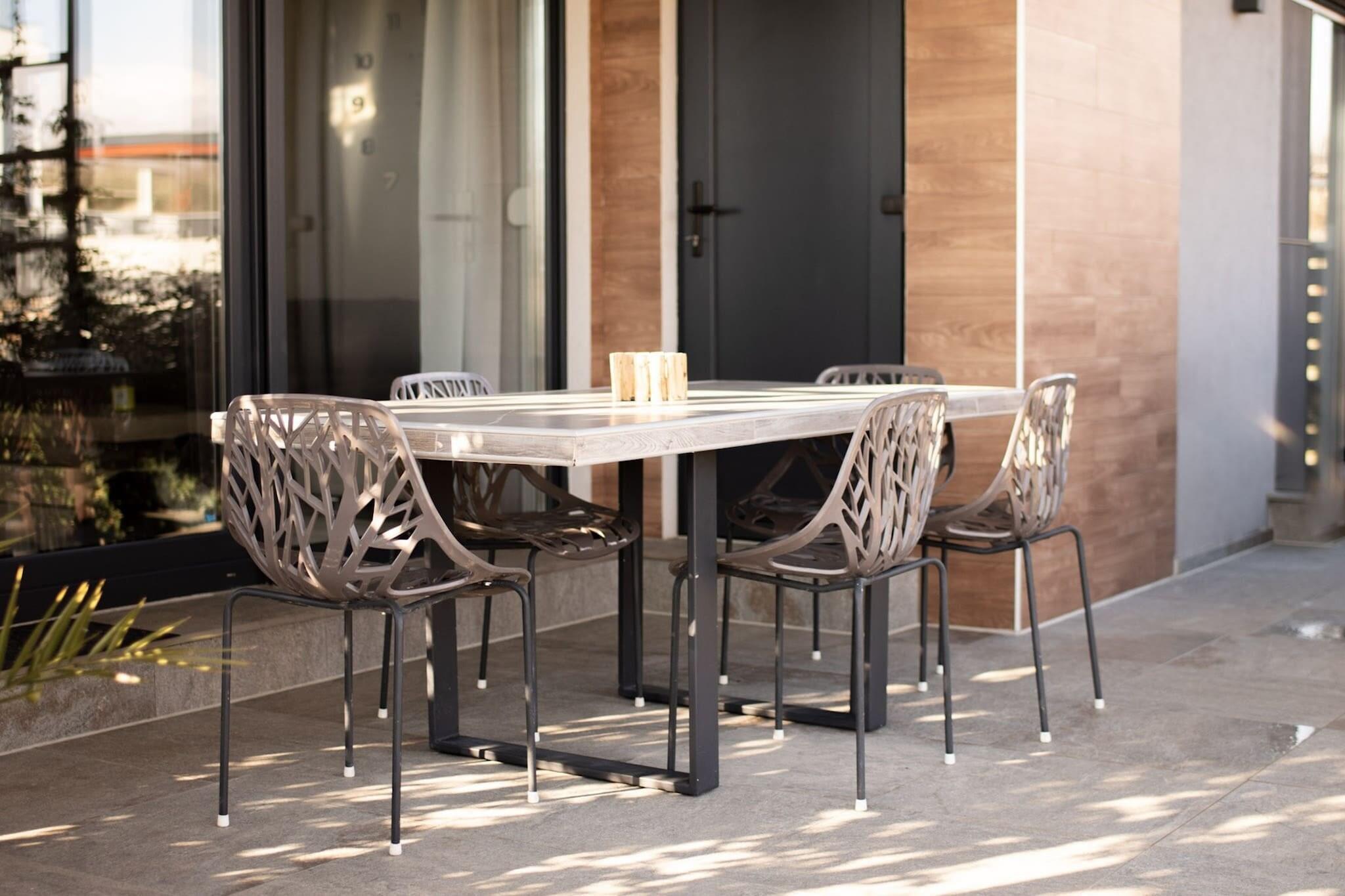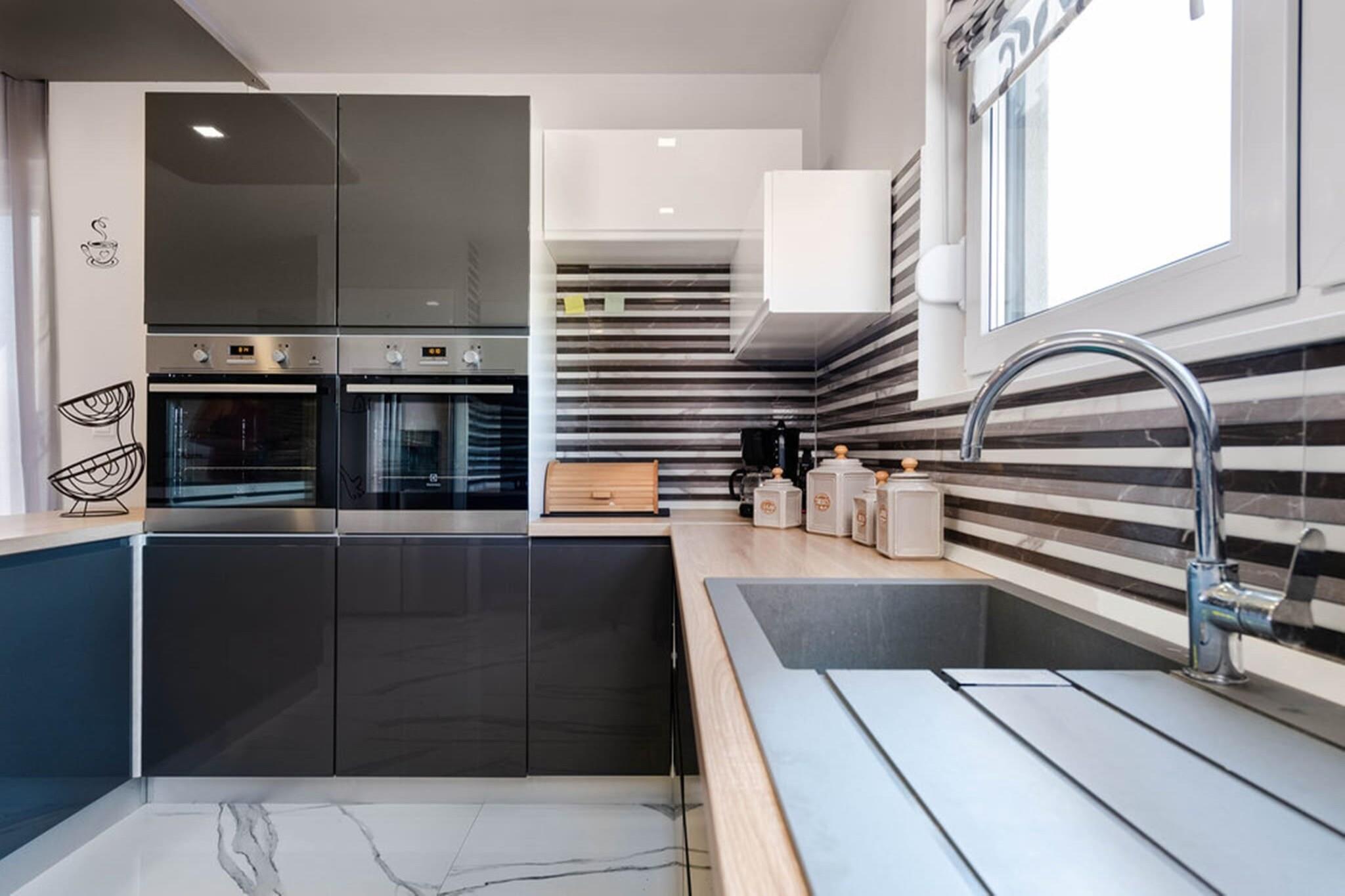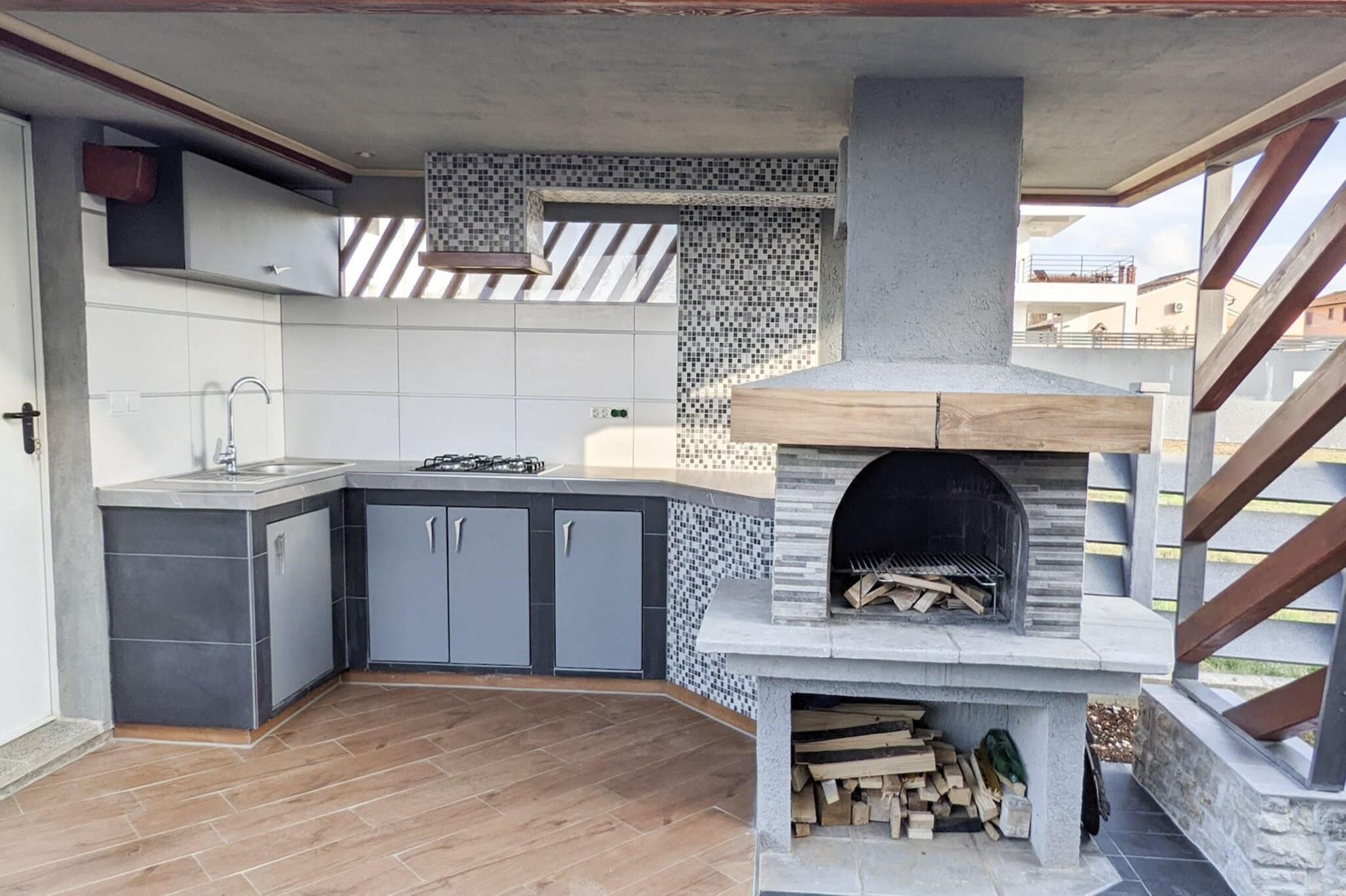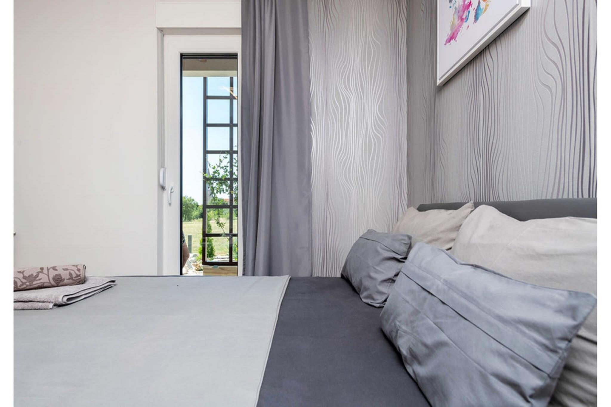 Velkommen til et dejligt, moderne hus beliggende i Galizana, perfekt til en ferie for to par eller en familie med 2-3 børn. Det udendørs rum har en privat swimmingpool med udendørs bruser, et udendørs køkken og en fantastisk udsigt over det smukke klokketårn i St. Rok's kirke. Gæsterne kan nyde gratis trådløs internetadgang, aircondition og parkering på stedet. Kæledyr er velkomne for et ekstra gebyr på EURO13 per nat per kæledyr, og ejendommen er fuldstændig indhegnet for ekstra sikkerhed. Dette charmerende hus ligger i stueetagen og indeholder en hyggelig stue, et køkken med spiseplads, to soveværelser og et badeværelse. Alle møbler er moderne og helt nye, hvilket sikrer et behageligt og stilfuldt miljø for dit ophold. Omgivet af lavendel og en række farverige blomster, er terrassen udstyret med komfortable havemøbler, der giver et skyggefuldt sted at slappe af på varme sommerdage. Børn kan more sig med at køre på en lille cykel (velegnet til børn i alderen 2-3 år) eller lege på den tilgængelige gynge. Galizana er bekvemt beliggende kun 8 km fra Pula, der er berømt for sit fantastiske amfiteater og romerske monumenter. Det er også 7 km fra Fazana, en malerisk kystby med en dejlig strand, der er særligt velegnet til børn på grund af det lave vand. Fra Fazana kan du tage på en sejltur til nationalparken Brijuni. For dem, der kan lide at ride, er Nemir i sjena-hesteranchen i nærheden og tilbyder forlystelser efter anmodning. Derudover tilbyder cykelstien 322 Savolaga, som starter og slutter i Galizana, en naturskøn rute på 7,6 km for cykelentusiaster.