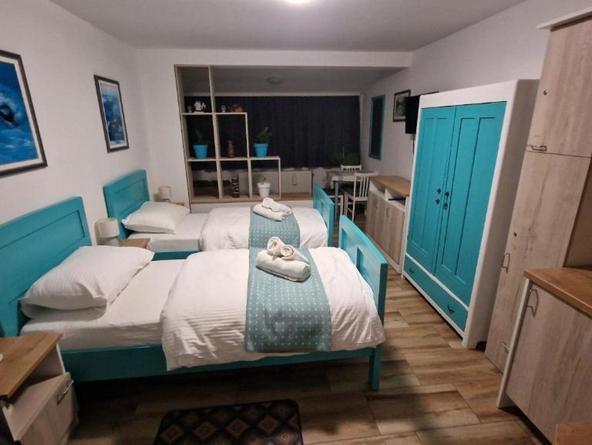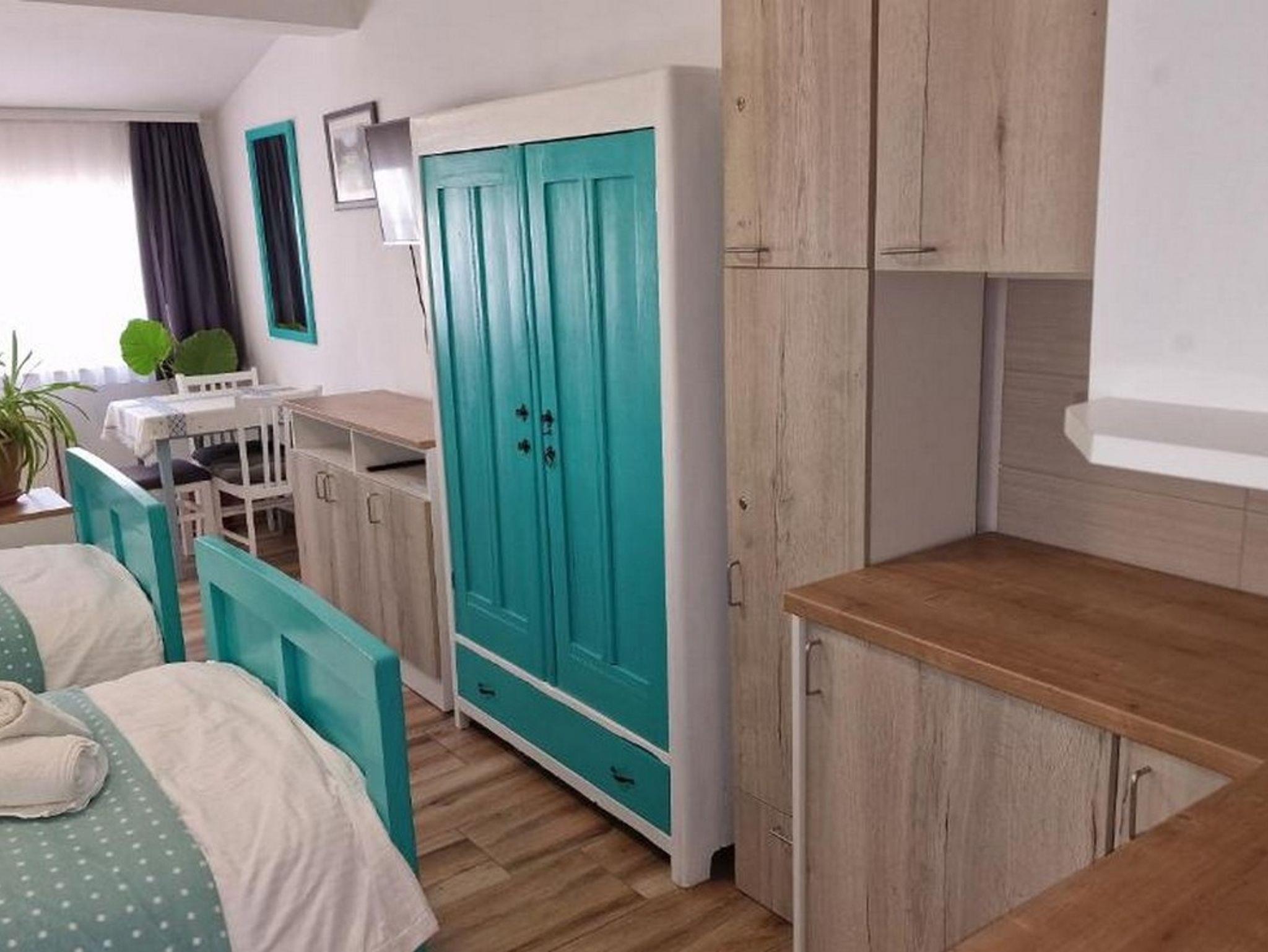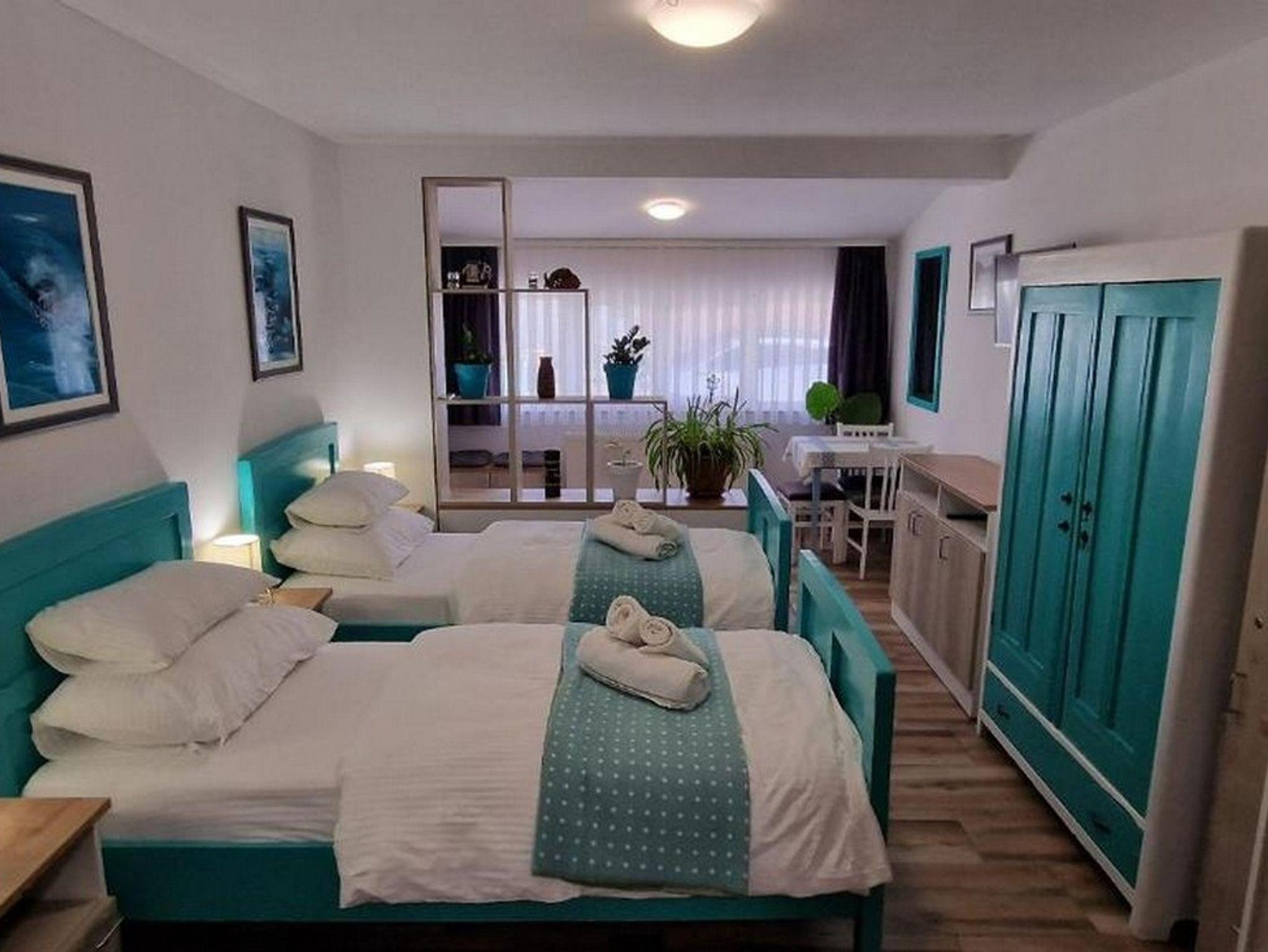 Zimmer bietet Platz für 2 Gäste. Die Betten sind in Schlafzimmern, die es 1 gibt, innerhalb einer Gesamtfläche von 23m2, angeordnet. Die Gäste haben eine eigene Terrasse zur Verfügung, auf der sie in warmen Sommernächten genießen können. Es ist erlaubt, Speisen auf dem Gemeinschafts-Grill vorzubereiten. Während ihres Aufenthalts können Gäste das gemeinsam zur Nutzung stehende Schwimmbad benutzen. In der Unterkunftseinheit besteht die Möglichkeit des Mitbringens von Haustieren, und die Dienstleistung ist im Preis der Unterkunft enthalten. Die reservierte Unterkunftseinheit ist ein Zimmer mit eigenem Badezimmer ohne die Möglichkeit der Nutzung einer Küche. IM PREIS INBEGRIFFEN: Kurtaxe, Endreinigung, Klimatisierung, Zentralheizung, Pool, Parkplatz, Internet, Haustiere, Bügeleisen, Bügelbrett, Föhn, tragbarer Grill. UNVERBINDLICHE ZUSÄTZLICHE KOSTEN: Frühstück (7,00 €, 50% Nachlass für Kinder zwischen 4 und 12 Jahren, Kinder bis 4 Jahre sind frei.), Halbpension (20,00 €, 50% Nachlass für Kinder zwischen 4 und 12 Jahren, Kinder bis 4 Jahre sind frei.), Vollpension (30,00 €, 50% Nachlass für Kinder zwischen 4 und 12 Jahren, Kinder bis 4 Jahre sind frei.), Wäschewaschen (5,00 € Waschen). Die Verfügbarkeit zusätzlicher Dienstleistungen in Ihrem reservierten Termin und die Preise derselben (falls nicht aufgeführt) müssen im Voraus überprüft werden. Zusätzliche Dienstleistungen die in der Zahlungsaufforderung nicht aufgeführt sind werden direkt beim Vermieter bezahlt, angenommen der Gast nutzt auch diese. Ermäßigung auf den Grundpreis: Gratistag 14=13 (bei einem Aufenthalt von 14 Tagen oder mehr erhalten Sie einen Gratistag für den Aufenthalt bis 31.12.26).