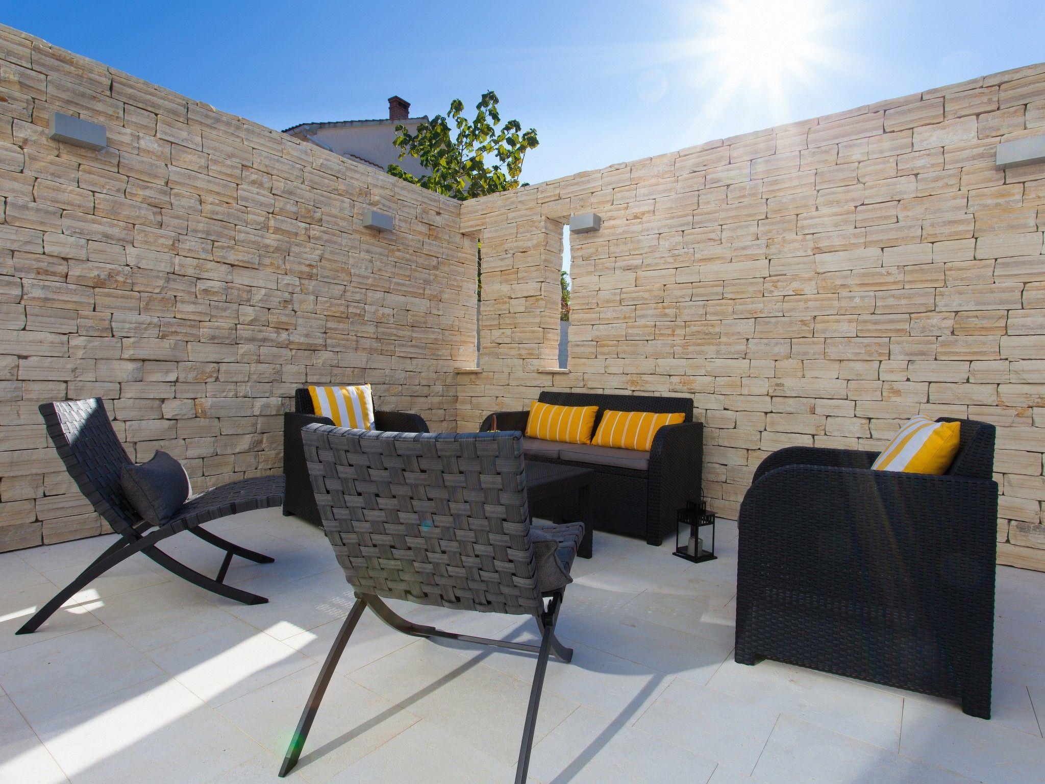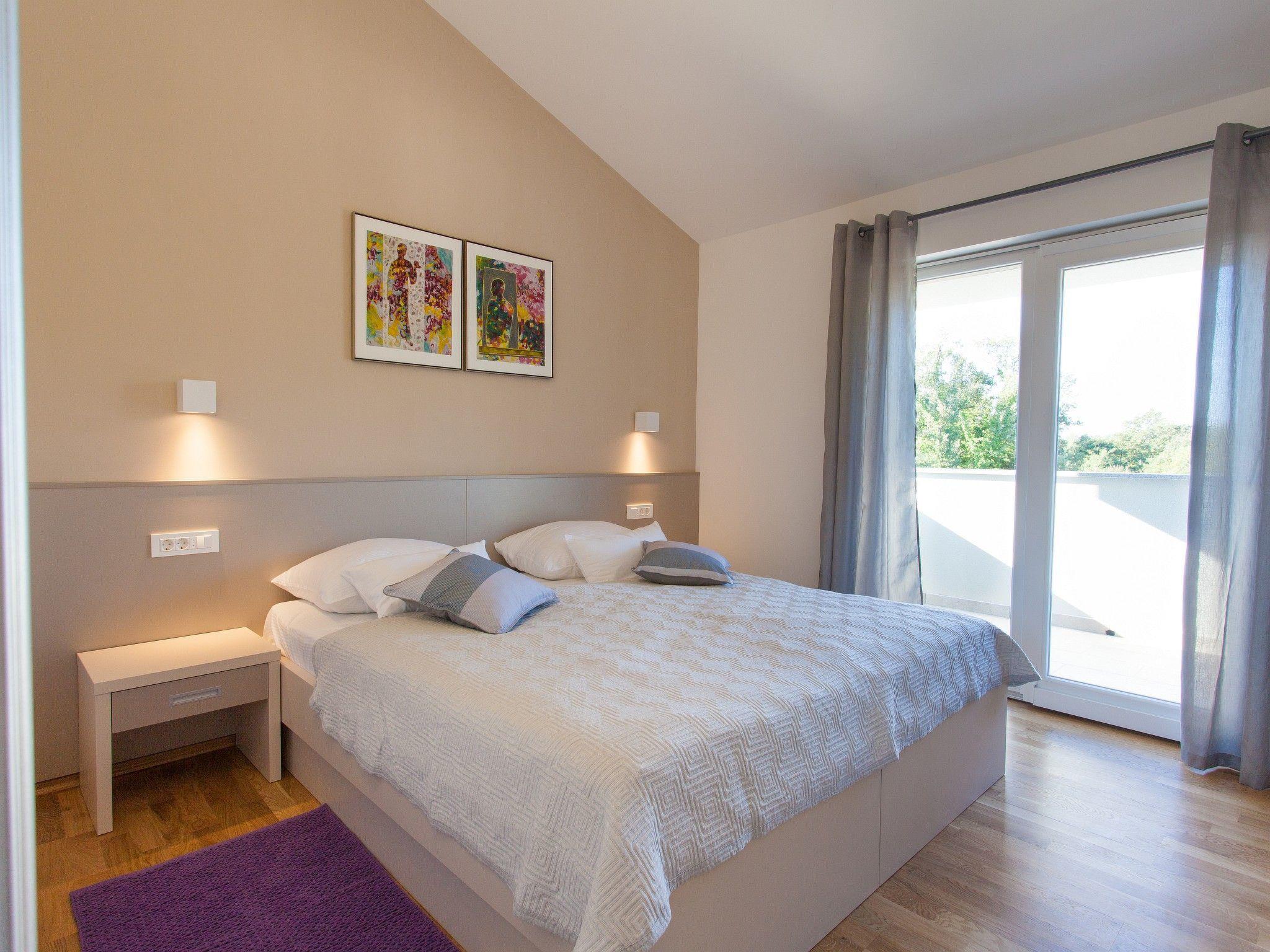 This beautifully furnished modern house surrounded by greenery is situated in Risika, a small village close to Vrbnik, in a quiet environment, ideal for a relaxing holiday. In a 1000 m2 courtyard is situated a spacious house on 180 m2 with swimming pool, bower with grill and gathering place. A spacious terrace is linked to a comfortable living room with a fireplace, dining area and fully equipped kitchen. On the ground floor, there is an extra toilet as well as one bedroom with a private bathroom. On the first floor, there is the sleeping area where are two double bedrooms, two bathrooms with showers and a sleeping sofa for two children. Guests have on disposal a parking place. All rooms are air-conditioned whilst guests on disposal have also WI-FI, TV-SAT, dishwasher and washing machine. Distance from the sandy beach Sveti Marak in Risika is approx. 2000 m. Pets are allowed on a request and additional charge.