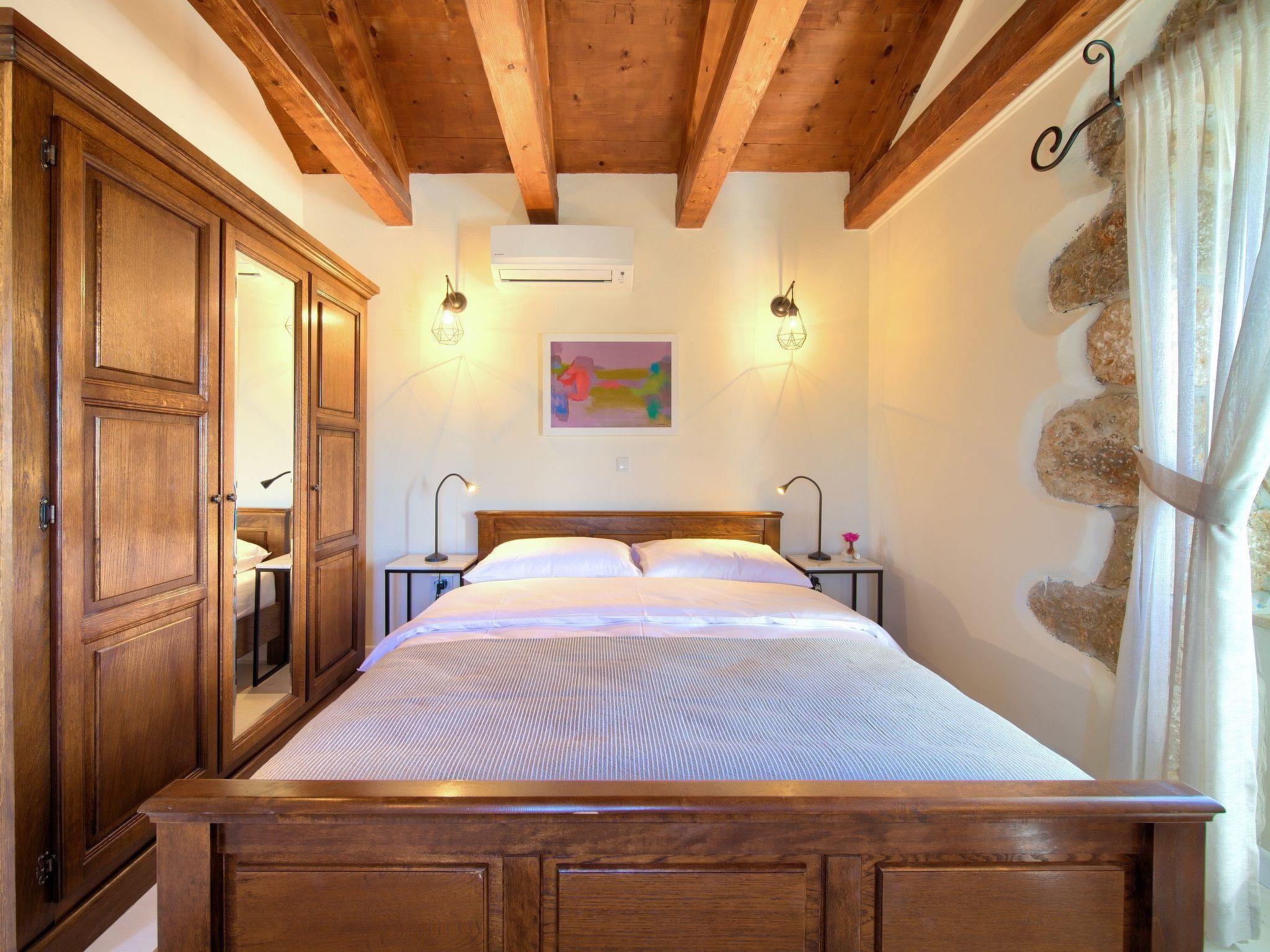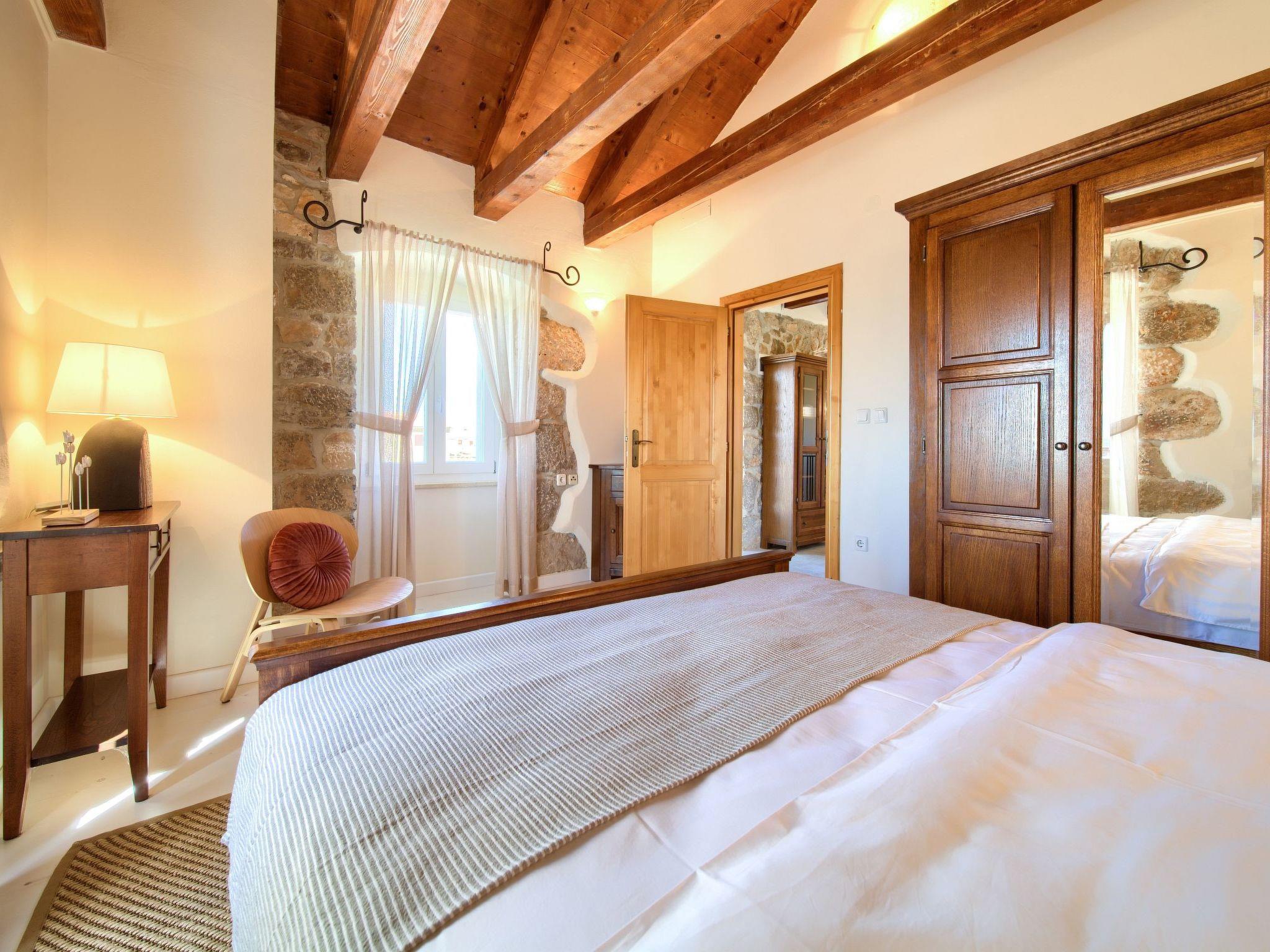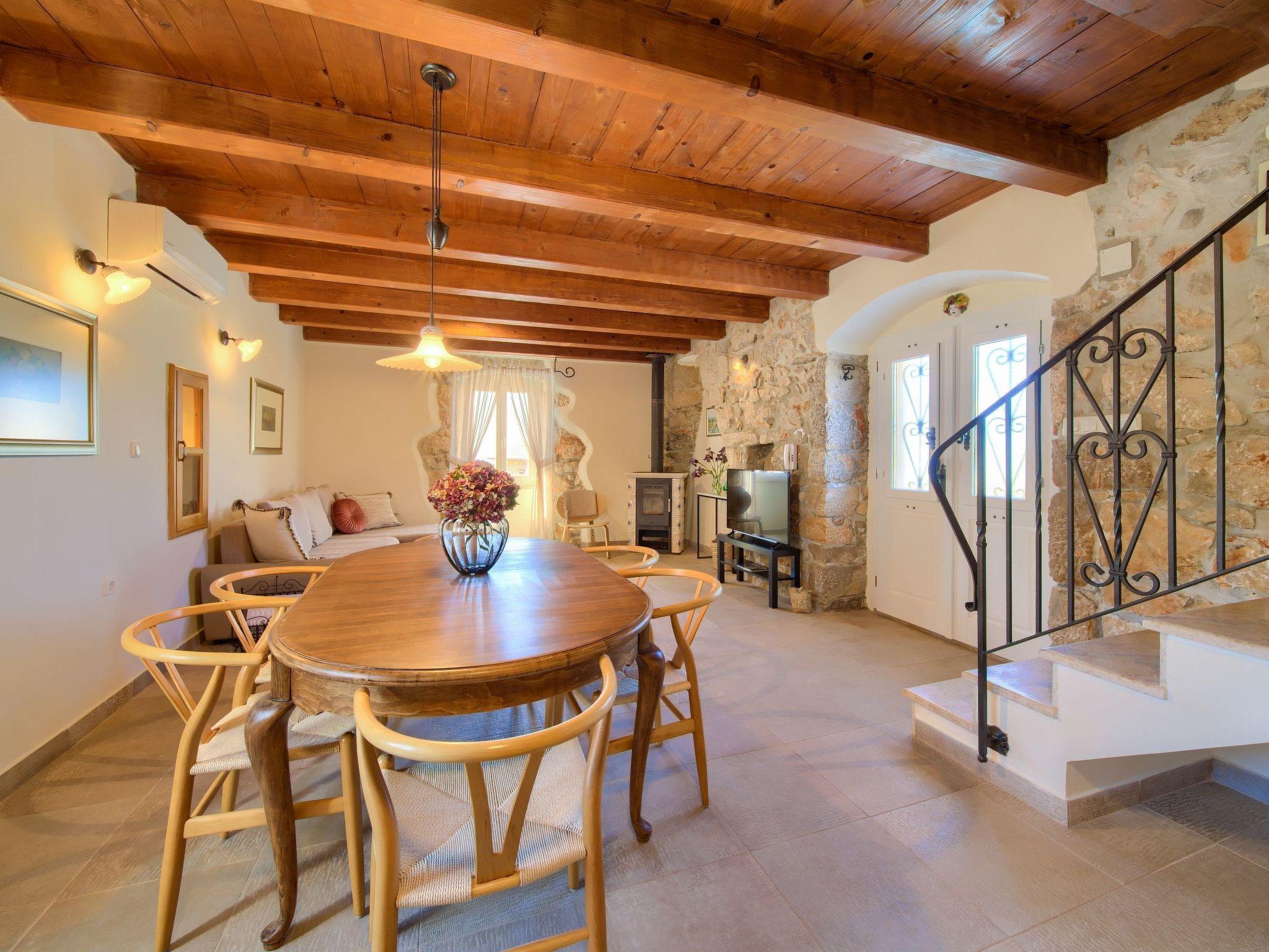 The exterior of the holiday house is just as inviting, with a garden enclosed by a traditional stone wall for exclusive guest use. It features sun loungers perfect for basking in the serene surroundings, a pool to refresh on sun-drenched days, and is adorned with olive trees, oleander, and Mediterranean flowers. For those who enjoy outdoor dining, a grill in a roofed area is available, alongside a shaded terrace, a quaint balcony, and a veranda for enjoying a glass of wine in tranquility. Additionally, three parking spaces ensure easy access for those arriving by car.