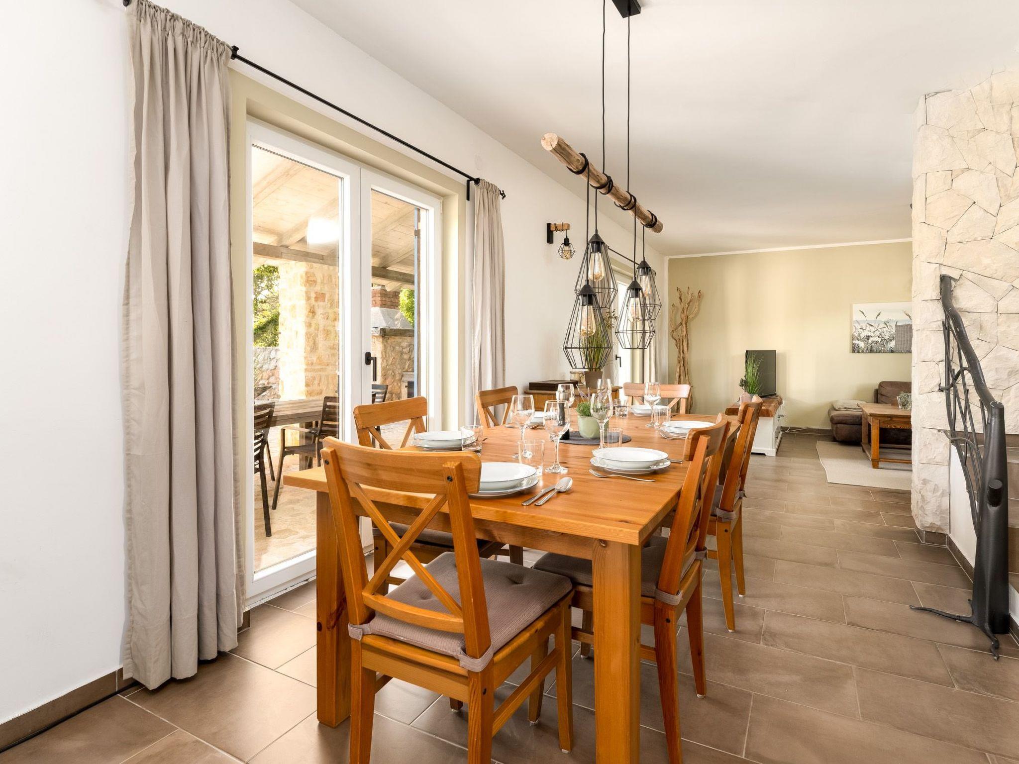 This luxuriously furnished villa is located in the center of the island of Krk, in the village of Garica. The total area is 150 m2. On the ground floor there is a living room, a dining room, a fully equipped kitchen and a toilet. Upstairs there are three bedrooms each with private bathroom, air conditioning and TV.