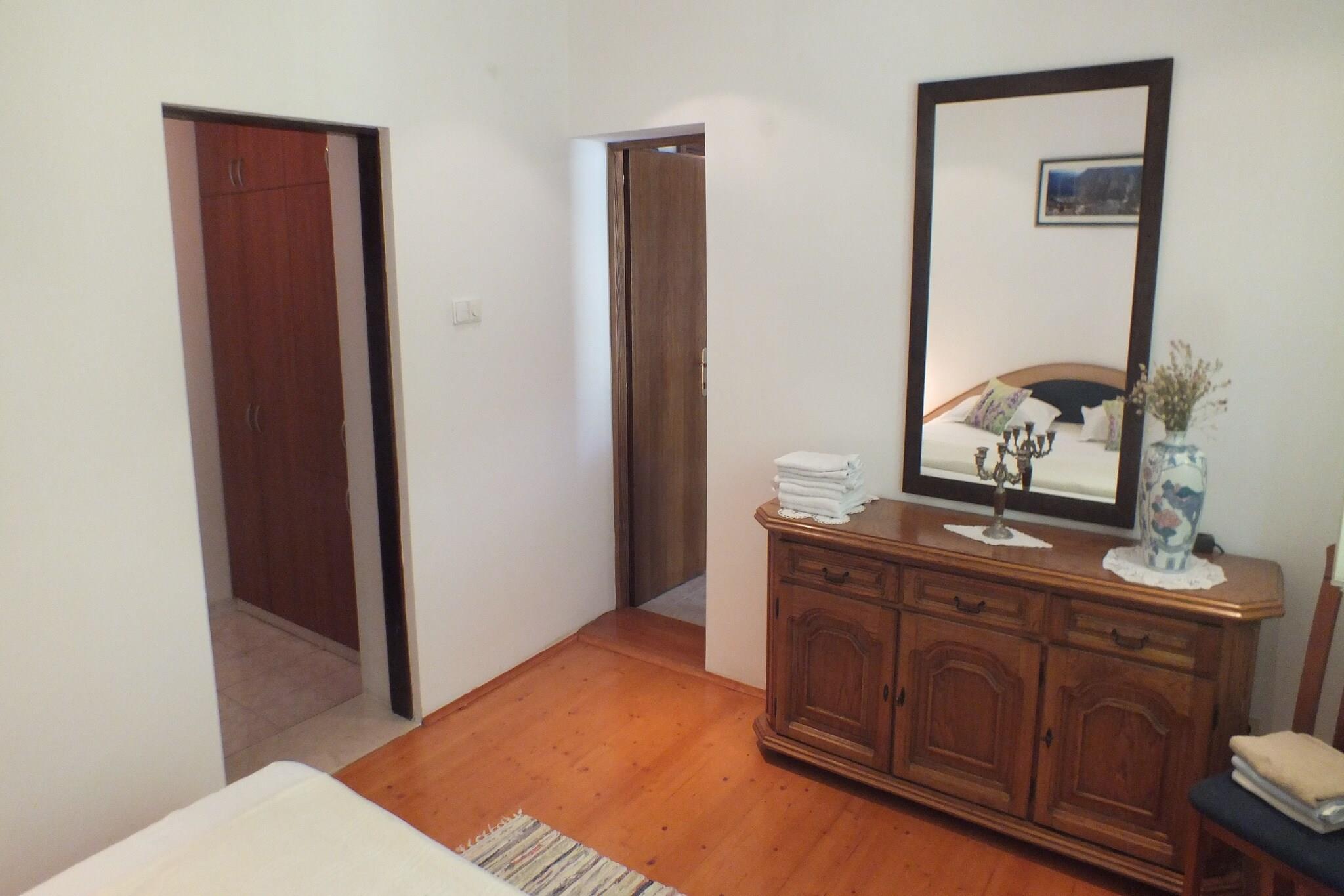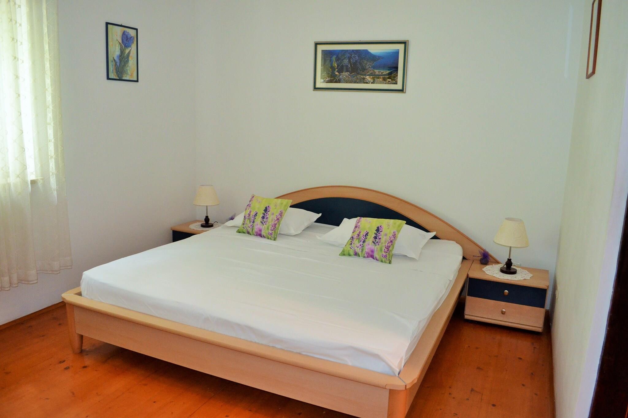 Denne kæledyrsvenlige lejlighed til fire gæster ligger i Gata og tilbyder en fredelig oase kun 6 km fra Adriaterhavet. Beliggende 1 km fra landsbyens centrum, giver den nem adgang til lokale restauranter, dagligvarer og offentlig transport. Med Splits pulserende byliv kun 22 km væk og Omiš' charmerende kystby kun 6 km væk, kan gæsterne nyde både afslapning og eventyr. Indenfor har lejligheden en komfortabel opholds- og spisestue med fladskærms-satellit-tv, et fuldt udstyret køkken med moderne apparater og to hyggelige soveværelser, et med en dobbeltseng og et andet med en køjeseng. Gæsterne kan slappe af i den fælles indhegnede have, nyde en grill eller drage fordel af praktiske faciliteter som en vaskemaskine og privat parkering. I nærheden kan du udforske Diocletians Palads, en UNESCO-fredet romersk fæstning i Split, eller besøge fæstningen Mirabella i Omiš for at nyde en betagende udsigt. Til spisning tilbyder Shimla Restaurant lækre lokale retter, mens Royal City Point Bar and Restaurant serverer et udvalg af retter i livlige omgivelser. Uanset om du søger eventyr eller afslapning, er dette charmerende tilflugtssted den perfekte oase.