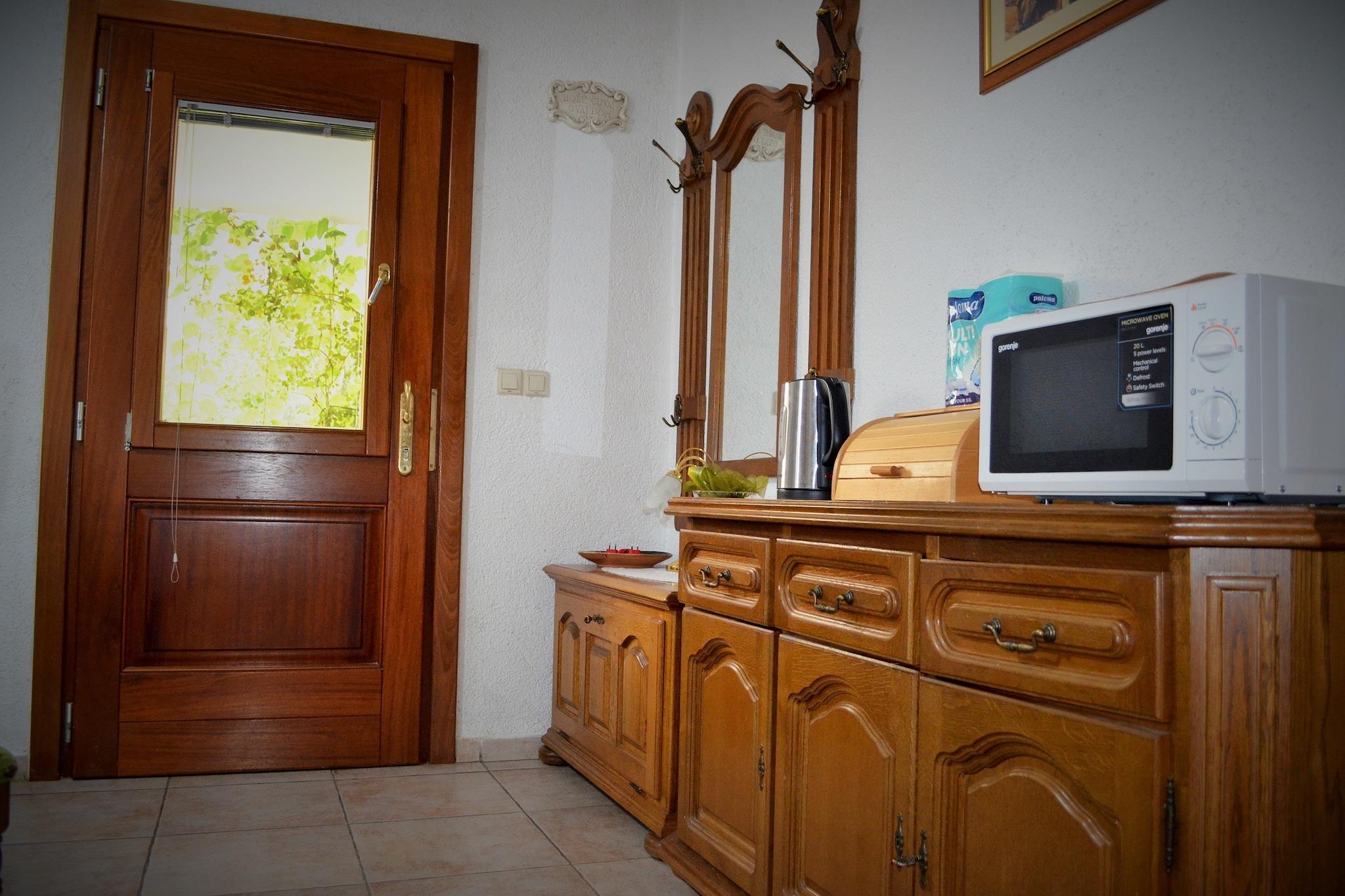 Stueetage: (Køkken(elkedel, komfur(Komfur med fire kogeplader, gas, elektrisk), kaffemaskine(kaffetragt), ovn, mikrobølgeovn, køle-fryseskab), stue / spisestue(Fjernsyn(fladskærm, parabol), spisebord), soveværelse(dobbeltseng(200 x 180 cm)), soveværelse(dobbeltseng(140 x 200 cm)), badeværelse(bruser, håndvask, toilet), vaskemaskine(deles med ejer)) have(deles med ejer og andre gæster, indhegnet), grill, parkering