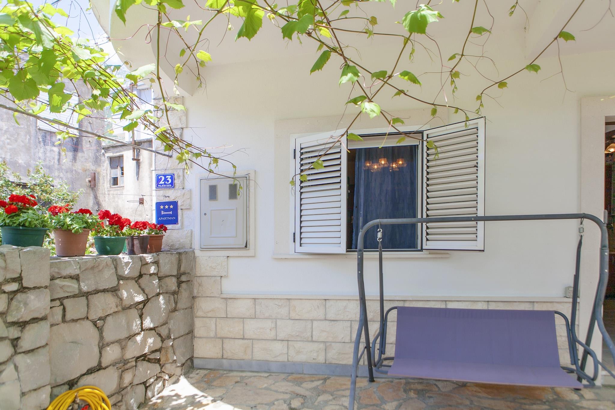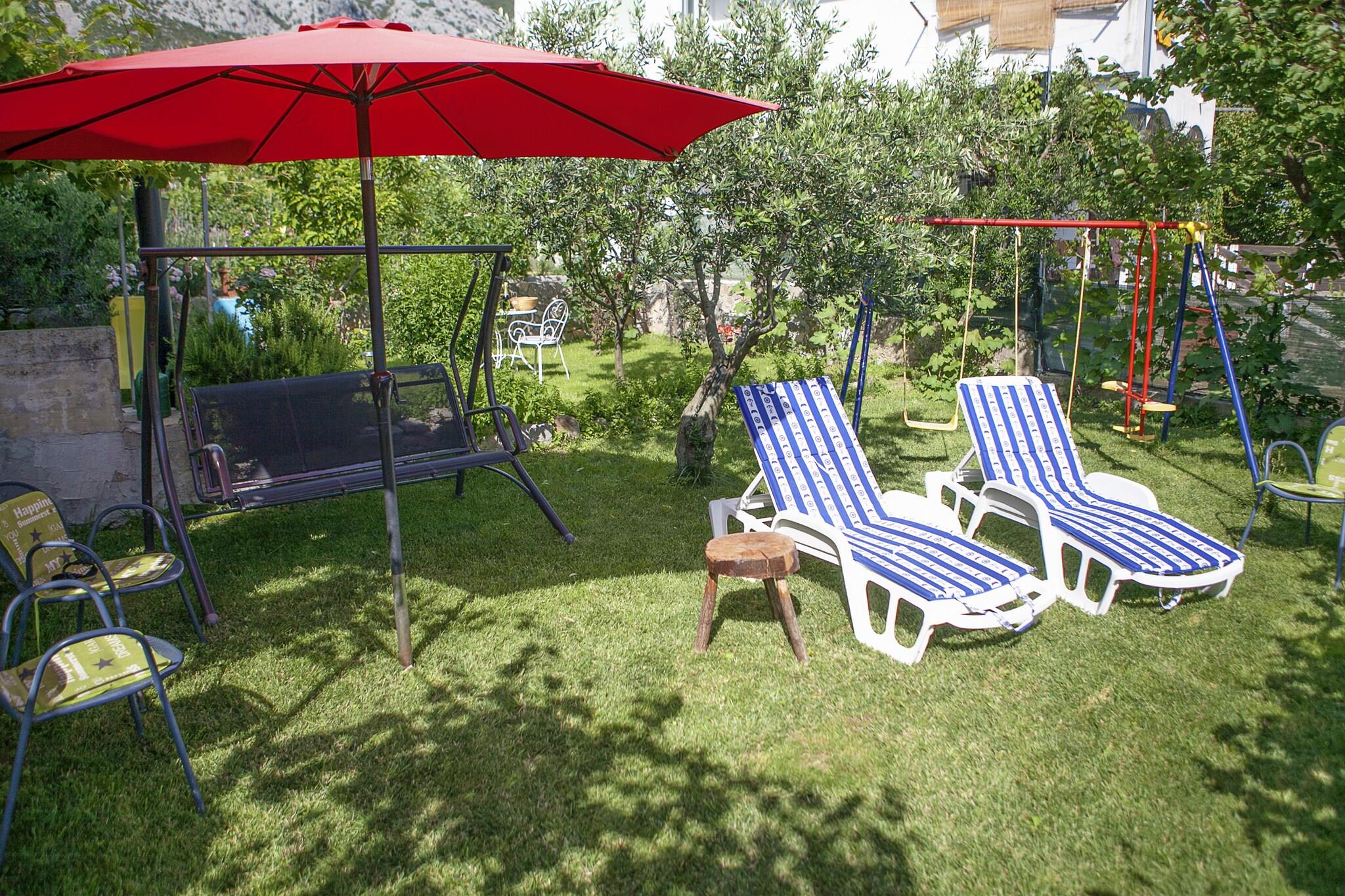 Beliggende i den rolige landsby Gata, er denne maleriske 2-værelses lejlighed perfekt til en afslappende ferie for op til 4 gæster. Uanset om du er en lille familie eller en gruppe venner, vil du finde komfort og enkelhed i dette hyggelige hjem. Lejligheden byder på en fælles, indhegnet have, ideel til at slappe af efter en dag med udforskning. En lokal købmand ligger kun 300 m væk, mens den nærmeste restaurant ligger 2 km, hvis du vil nyde det lokale dalmatiske køkken. Hvis du har lyst til en dag ved havet, ligger stranden kun 6 km fra lejligheden. Efter dine udflugter kan du slappe af med en varm drink i haven eller fyre op i den fælles grill for at nyde et afslappet aftensmåltid udendørs. Hjemmet er kæledyrsvenligt (1 kæledyr tilladt), og parkering på stedet gør dit ophold endnu mere bekvemt. Med Split Lufthavn kun 38 km væk, er det nemt at nå dette fredelige sted.