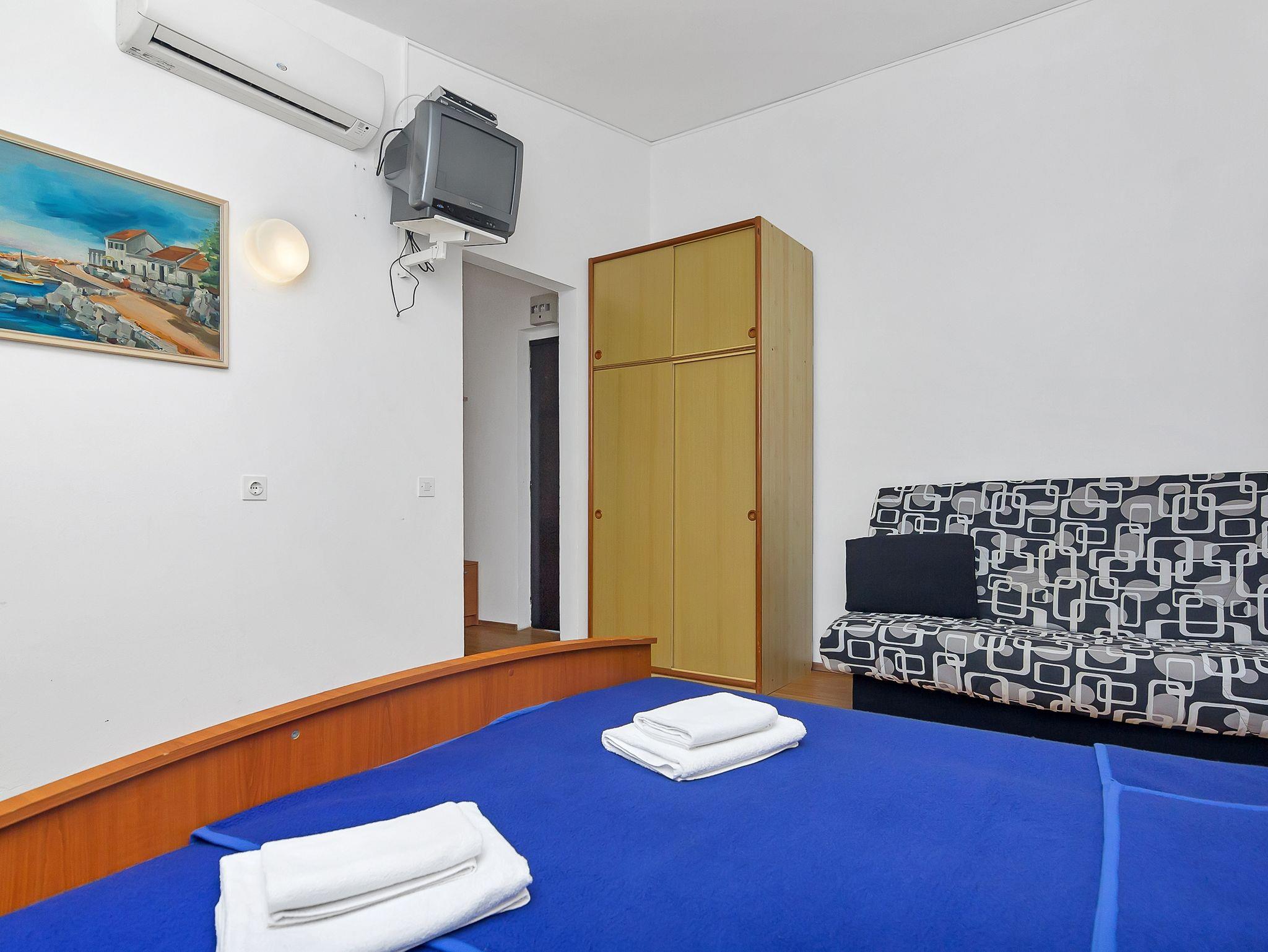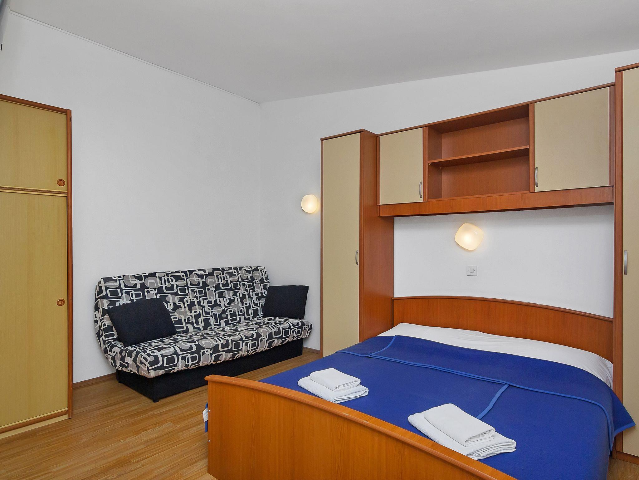 Studio bietet Platz für 4 Gäste. Die Betten sind in Schlafzimmern, die es 1 gibt, innerhalb einer Gesamtfläche von 22m2, angeordnet. Die Gäste haben eine eigene Terrasse zur Verfügung, auf der sie in warmen Sommernächten genießen können. Das Studio-Apartment bietet Meerblick. Es ist erlaubt, Speisen auf dem Gemeinschafts-Grill vorzubereiten. In der Unterkunftseinheit besteht die Möglichkeit des Mitbringens von Haustieren gegen Aufpreis. IM PREIS INBEGRIFFEN: Kurtaxe, Endreinigung, Klimatisierung, Parkplatz, Internet, Bootsanlegeplatz, Kinderbett. UNVERBINDLICHE ZUSÄTZLICHE KOSTEN: Boot (115,00 € pro Nacht), Haustiere (13,00 € pro Nacht). Die Verfügbarkeit zusätzlicher Dienstleistungen in Ihrem reservierten Termin und die Preise derselben (falls nicht aufgeführt) müssen im Voraus überprüft werden. Zusätzliche Dienstleistungen die in der Zahlungsaufforderung nicht aufgeführt sind werden direkt beim Vermieter bezahlt, angenommen der Gast nutzt auch diese.