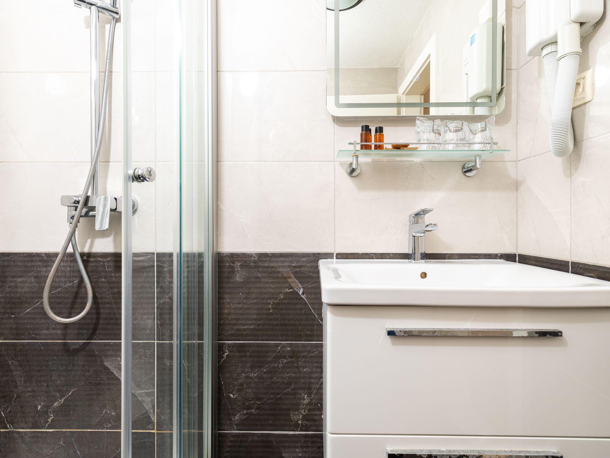 Zimmer bietet Platz für 3 Gäste. Die Betten sind in Schlafzimmern, die es 1 gibt, innerhalb einer Gesamtfläche von 15m2, angeordnet. Die Gäste haben einen eigenen Balkon zur Verfügung, auf der sie in warmen Sommernächten genießen können. Das Zimmer bietet Meerblick. In der Unterkunftseinheit besteht die Möglichkeit des Mitbringens von Haustieren gegen Aufpreis. Die reservierte Unterkunftseinheit ist ein Zimmer mit eigenem Badezimmer ohne die Möglichkeit der Nutzung einer Küche. IM PREIS INBEGRIFFEN: Halbpension, Endreinigung, Klimatisierung, Parkplatz, Internet, Kinderbett, Föhn. VERBINDLICHE ZUSÄTZLICHE KOSTEN: Kurtaxe (Erwachsene 0,93 € - 1,80 € Nacht/Person, Kinderermäßigung 12 - 17 Jahre). UNVERBINDLICHE ZUSÄTZLICHE KOSTEN: Boot (65,00 € pro Nacht), Haustiere (13,00 € pro Nacht). Die Verfügbarkeit zusätzlicher Dienstleistungen in Ihrem reservierten Termin und die Preise derselben (falls nicht aufgeführt) müssen im Voraus überprüft werden. Zusätzliche Dienstleistungen die in der Zahlungsaufforderung nicht aufgeführt sind werden direkt beim Vermieter bezahlt, angenommen der Gast nutzt auch diese.