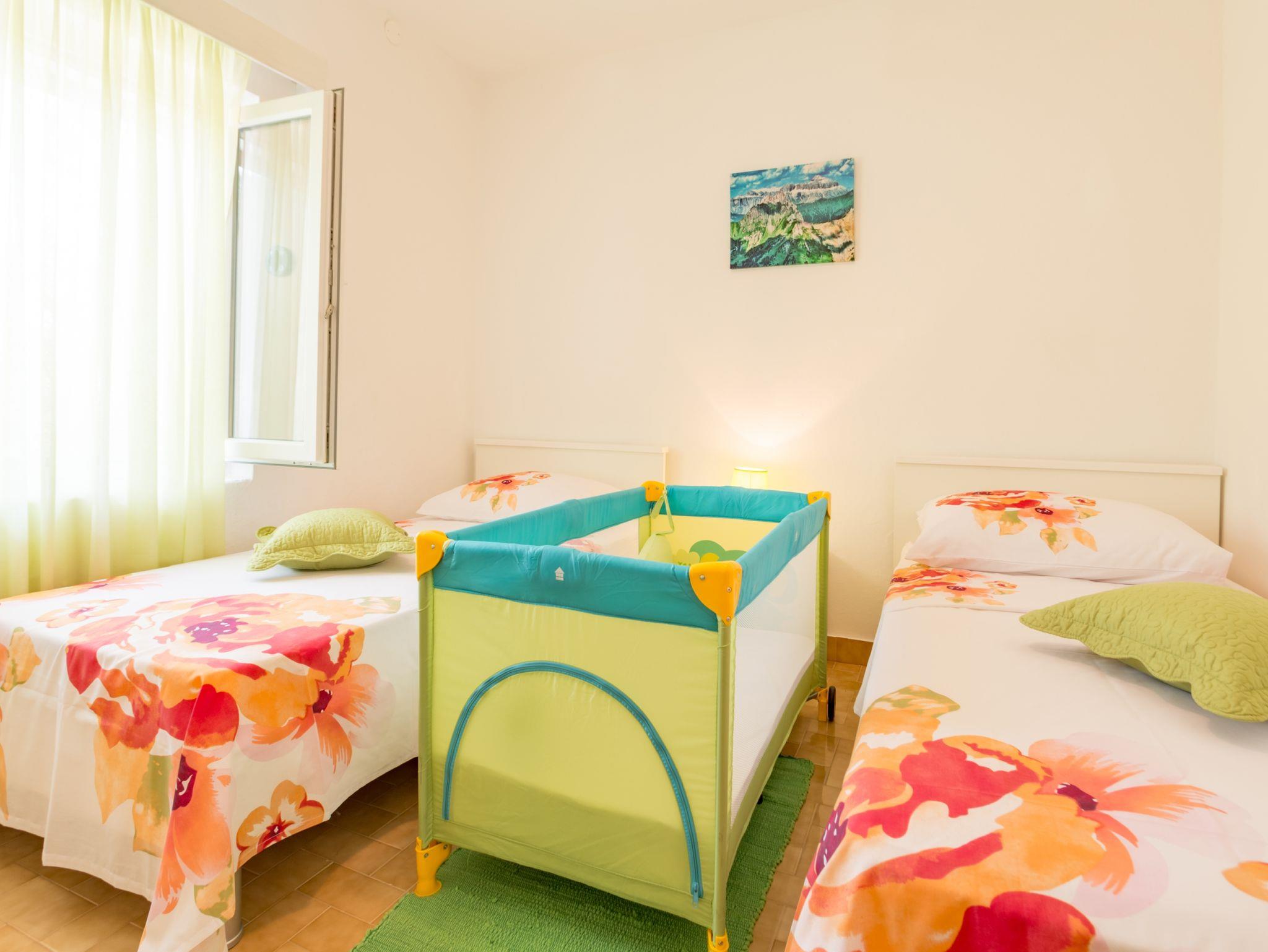 Haus bietet Platz für 6 Gäste. Die Betten sind in Schlafzimmern, die es 3 gibt, innerhalb einer Gesamtfläche von 51m2, angeordnet. Die Gäste haben eine eigene Terrasse zur Verfügung, auf der sie in warmen Sommernächten genießen können. Das Haus bietet Meerblick. Für vollen Genuss und Entspannung gibt es einen privaten Grill für Gäste dieser Unterkunft. IM PREIS INBEGRIFFEN: Kurtaxe, Endreinigung, Klimatisierung, Parkplatz. VERBINDLICHE ZUSÄTZLICHE KOSTEN: Aufzahlung für Kurzaufenthalte (prozentualer Zuschlag pro Nächtigungsanzahl: 30% - 1, 20% - 2, 10% - 3). Die Verfügbarkeit zusätzlicher Dienstleistungen in Ihrem reservierten Termin und die Preise derselben (falls nicht aufgeführt) müssen im Voraus überprüft werden. Zusätzliche Dienstleistungen die in der Zahlungsaufforderung nicht aufgeführt sind werden direkt beim Vermieter bezahlt, angenommen der Gast nutzt auch diese.