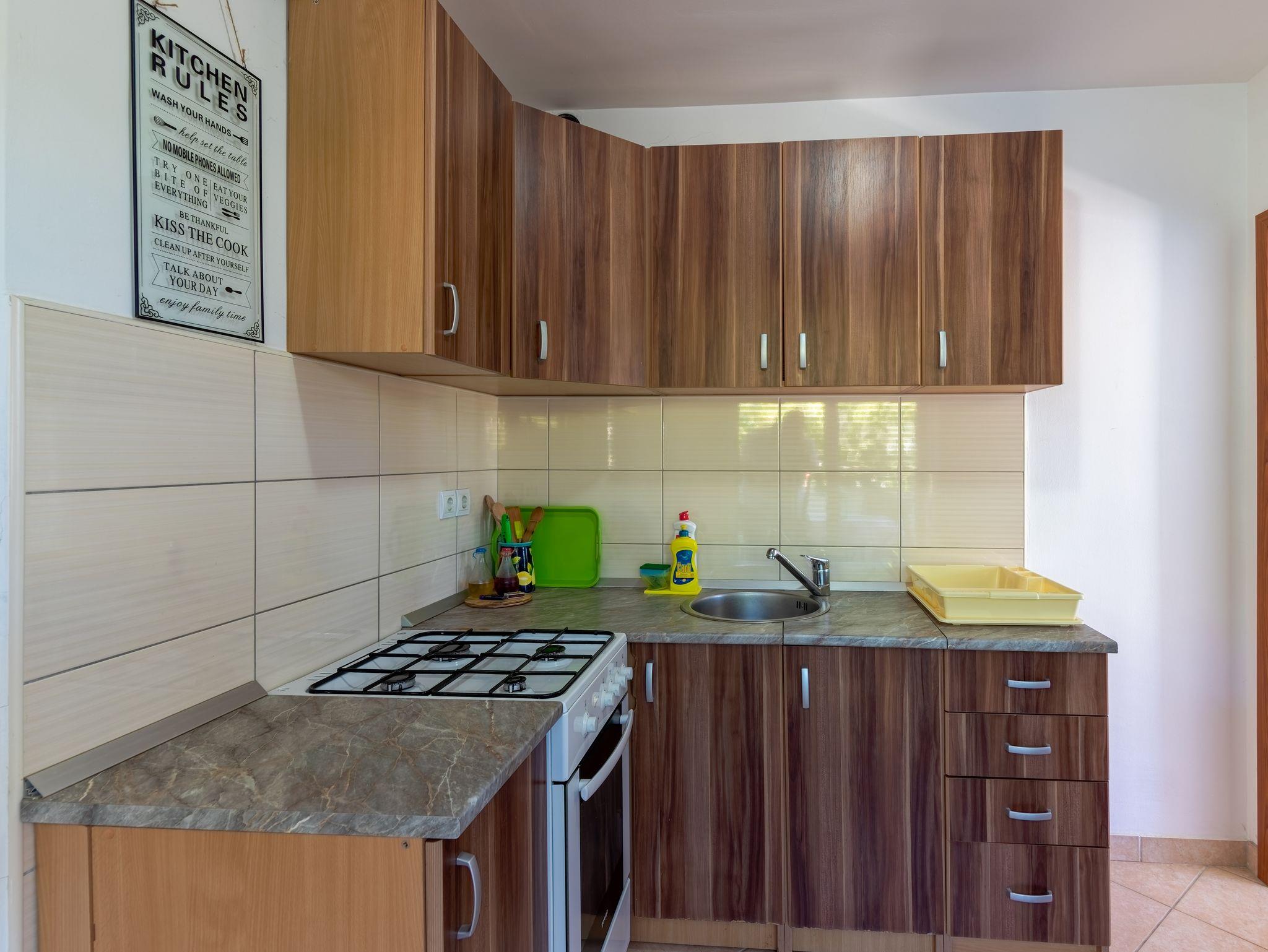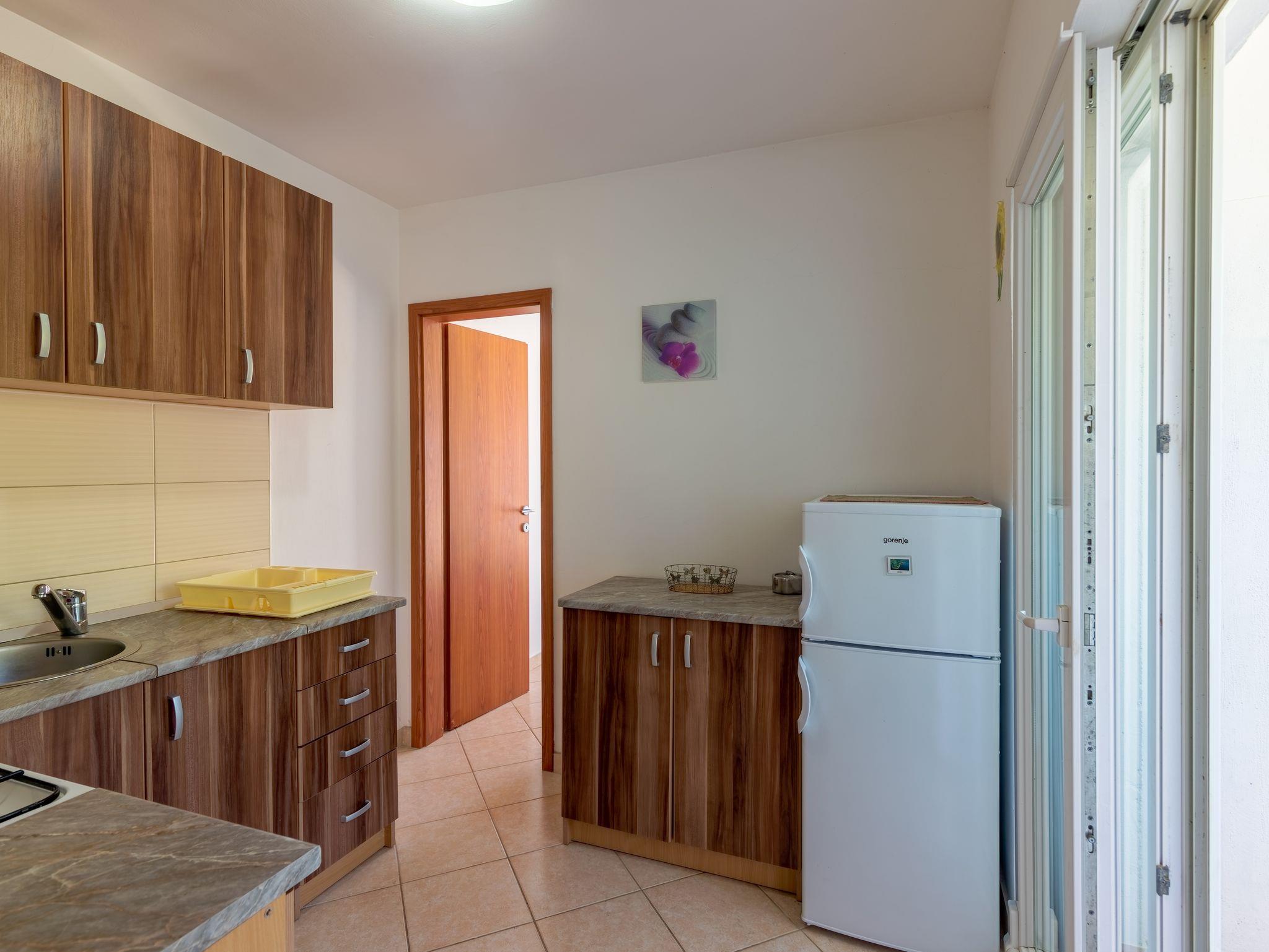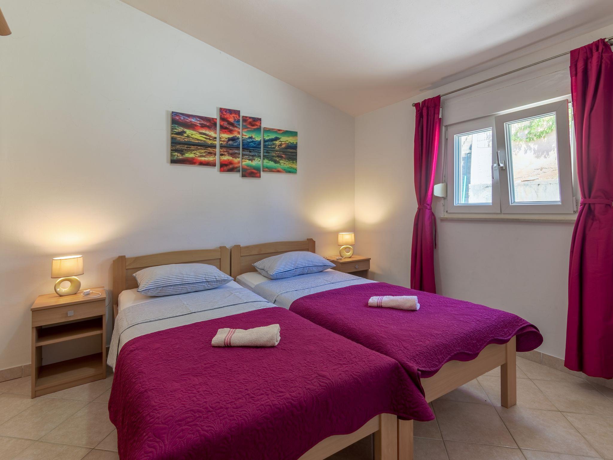 Ferienwohnung bietet Platz für 4 Gäste. Die Betten sind in Schlafzimmern, die es 2 gibt, innerhalb einer Gesamtfläche von 42m2, angeordnet. Die Gäste haben eine eigene Terrasse zur Verfügung, auf der sie in warmen Sommernächten genießen können. Das Apartment bietet Meerblick. Es ist erlaubt, Speisen auf dem Gemeinschafts-Grill vorzubereiten. In der Unterkunftseinheit besteht die Möglichkeit des Mitbringens von Haustieren, und die Dienstleistung ist im Preis der Unterkunft enthalten. IM PREIS INBEGRIFFEN: Kurtaxe, Endreinigung, Parkplatz, Internet, Bootsanlegeplatz, Haustiere, Kinderbett, Föhn. Die Verfügbarkeit zusätzlicher Dienstleistungen in Ihrem reservierten Termin und die Preise derselben (falls nicht aufgeführt) müssen im Voraus überprüft werden. Zusätzliche Dienstleistungen die in der Zahlungsaufforderung nicht aufgeführt sind werden direkt beim Vermieter bezahlt, angenommen der Gast nutzt auch diese.