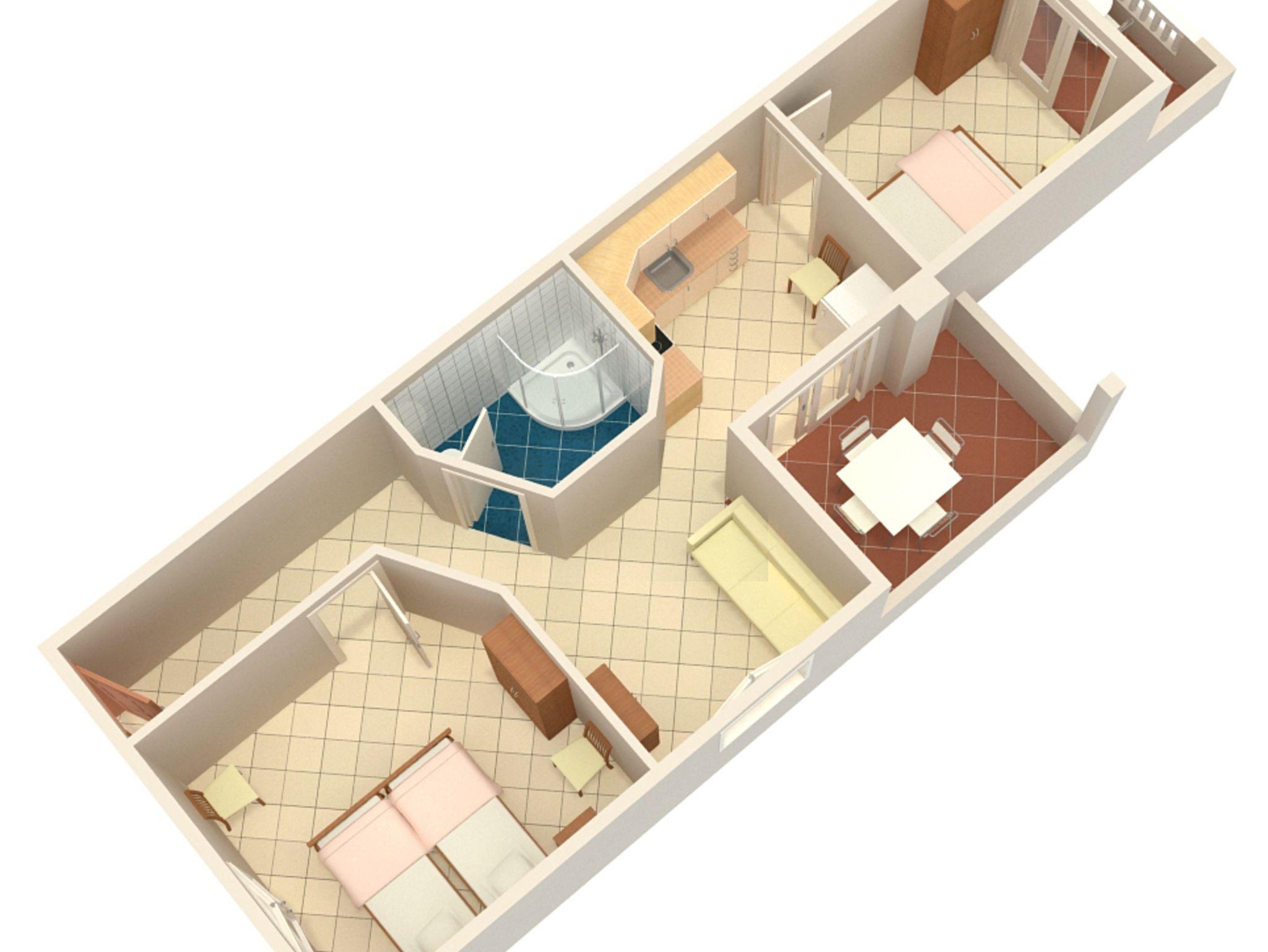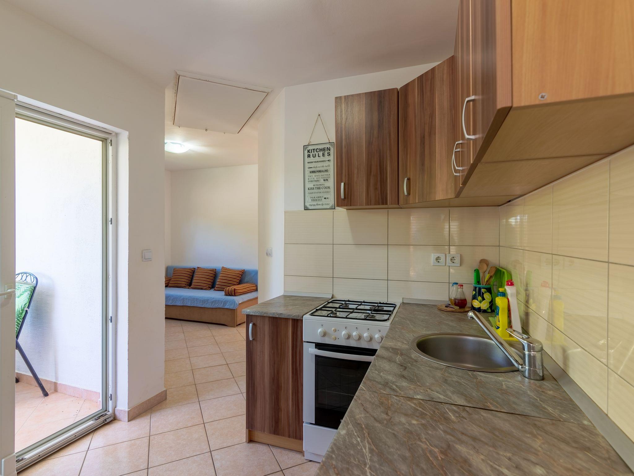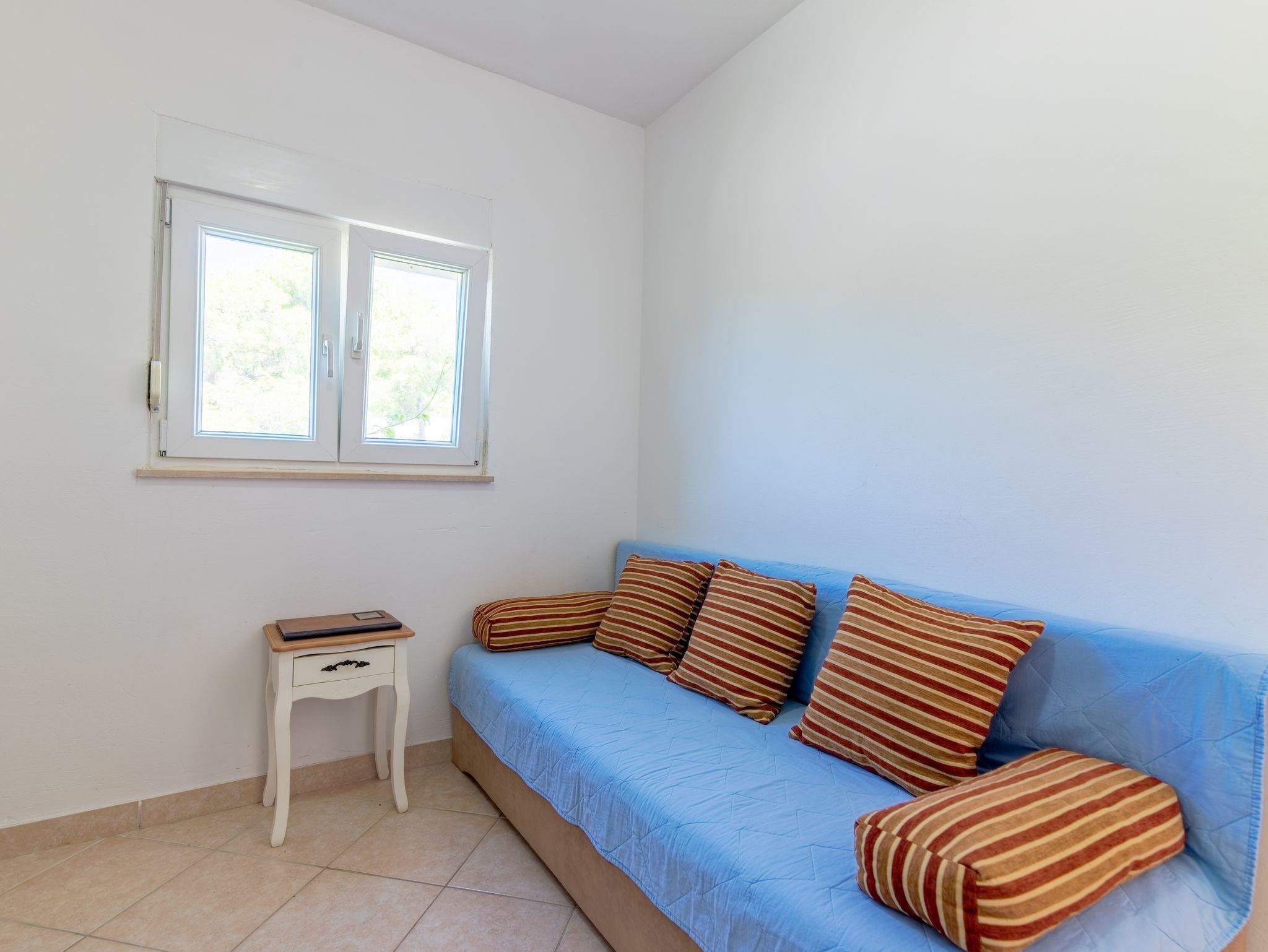 Ferienwohnung bietet Platz für 4 Gäste. Die Betten sind in Schlafzimmern, die es 2 gibt, innerhalb einer Gesamtfläche von 42m2, angeordnet. Die Gäste haben eine eigene Terrasse zur Verfügung, auf der sie in warmen Sommernächten genießen können. Das Apartment bietet Meerblick. Es ist erlaubt, Speisen auf dem Gemeinschafts-Grill vorzubereiten. In der Unterkunftseinheit besteht die Möglichkeit des Mitbringens von Haustieren, und die Dienstleistung ist im Preis der Unterkunft enthalten. IM PREIS INBEGRIFFEN: Kurtaxe, Endreinigung, Parkplatz, Internet, Bootsanlegeplatz, Haustiere, Kinderbett, Föhn. Die Verfügbarkeit zusätzlicher Dienstleistungen in Ihrem reservierten Termin und die Preise derselben (falls nicht aufgeführt) müssen im Voraus überprüft werden. Zusätzliche Dienstleistungen die in der Zahlungsaufforderung nicht aufgeführt sind werden direkt beim Vermieter bezahlt, angenommen der Gast nutzt auch diese.