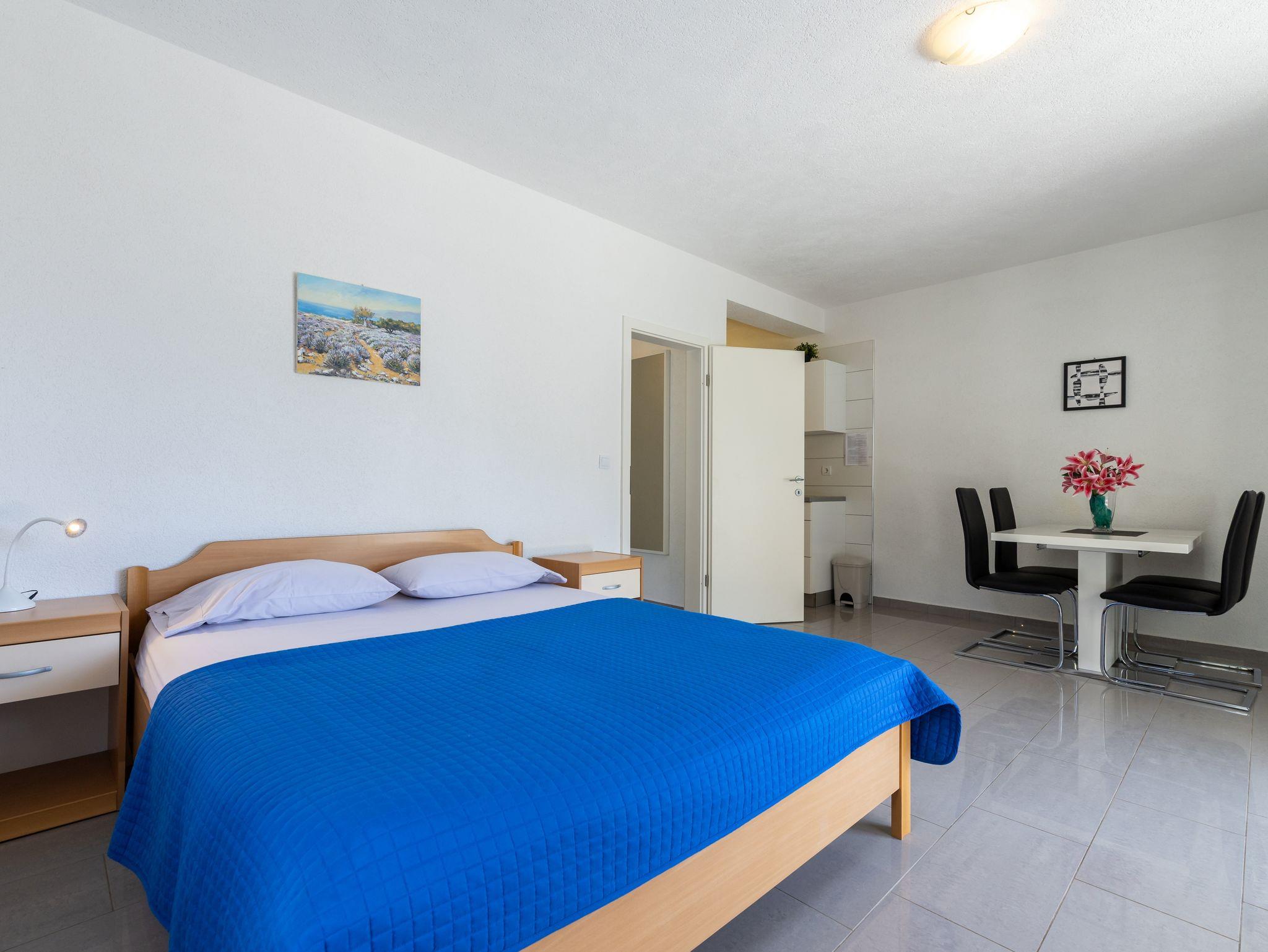 Ferienwohnung bietet Platz für 4 Gäste. Die Betten sind in Schlafzimmern, die es 1 gibt, und in Wohnzimmer, innerhalb einer Gesamtfläche von 40m2, angeordnet. Die Gäste haben eine eigene Terrasse zur Verfügung, auf der sie in warmen Sommernächten genießen können. Das Apartment bietet Meerblick. Es ist erlaubt, Speisen auf dem Gemeinschafts-Grill vorzubereiten. IM PREIS INBEGRIFFEN: Kurtaxe, Endreinigung, Parkplatz, Internet, Kinderbett, tragbarer Grill. Die Verfügbarkeit zusätzlicher Dienstleistungen in Ihrem reservierten Termin und die Preise derselben (falls nicht aufgeführt) müssen im Voraus überprüft werden. Zusätzliche Dienstleistungen die in der Zahlungsaufforderung nicht aufgeführt sind werden direkt beim Vermieter bezahlt, angenommen der Gast nutzt auch diese.