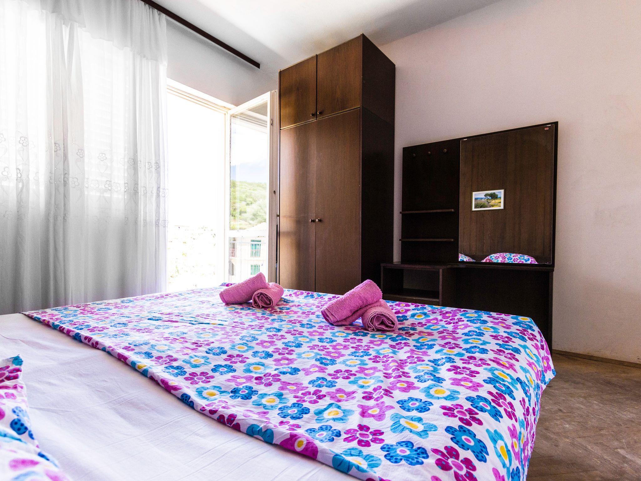 Ferienwohnung bietet Platz für 6 Gäste. Die Betten sind in Schlafzimmern, die es 2 gibt, und in Esszimmer, innerhalb einer Gesamtfläche von 62m2, angeordnet. Die Gäste haben einen eigenen Balkon zur Verfügung, auf der sie in warmen Sommernächten genießen können. Das Apartment bietet Meerblick. In der Unterkunftseinheit besteht die Möglichkeit des Mitbringens von Haustieren gegen Aufpreis. IM PREIS INBEGRIFFEN: Kurtaxe, Endreinigung, Klimatisierung, Parkplatz, Internet, Bootsanlegeplatz, Bügeleisen, Föhn. VERBINDLICHE ZUSÄTZLICHE KOSTEN: Aufzahlung für Kurzaufenthalte (prozentualer Zuschlag pro Nächtigungsanzahl: 30% - 1, 20% - 2, 10% - 3). UNVERBINDLICHE ZUSÄTZLICHE KOSTEN: Haustiere (10,00 € pro Nacht). Die Verfügbarkeit zusätzlicher Dienstleistungen in Ihrem reservierten Termin und die Preise derselben (falls nicht aufgeführt) müssen im Voraus überprüft werden. Zusätzliche Dienstleistungen die in der Zahlungsaufforderung nicht aufgeführt sind werden direkt beim Vermieter bezahlt, angenommen der Gast nutzt auch diese.