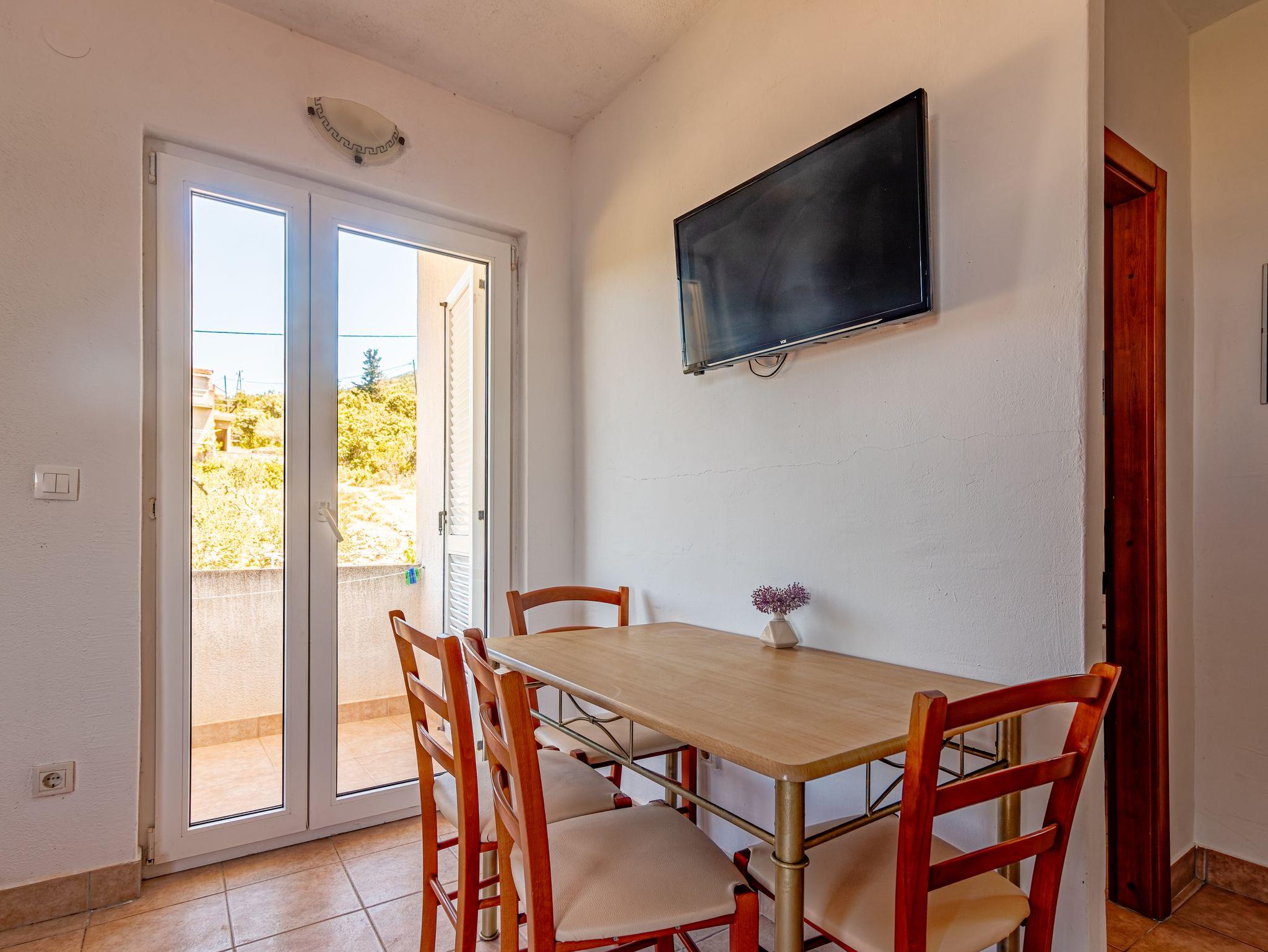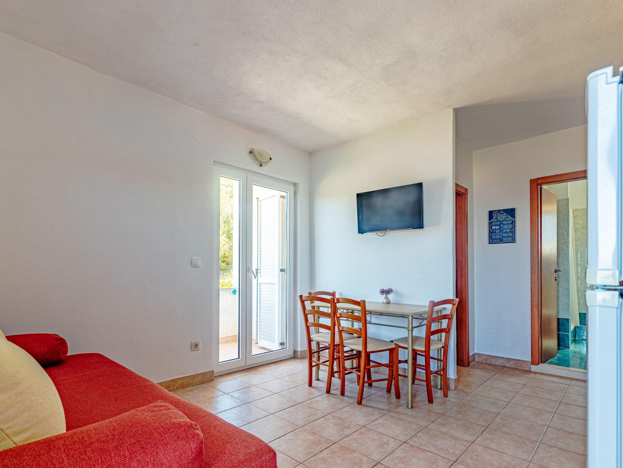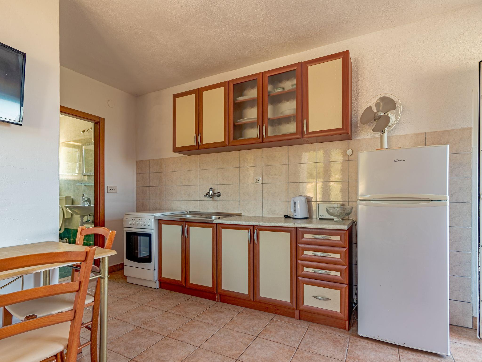 Ferienwohnung bietet Platz für 3 Gäste. Die Betten sind in Schlafzimmern, die es 1 gibt, und in Esszimmer, innerhalb einer Gesamtfläche von 28m2, angeordnet. Die Gäste haben eine eigene Terrasse zur Verfügung, auf der sie in warmen Sommernächten genießen können. Das Apartment bietet Meerblick. Es ist erlaubt, Speisen auf dem Gemeinschafts-Grill vorzubereiten. Durch die Terrasse der gebuchten Unterkunftseinheit gehen auch andere Gäste oder Vermieter. IM PREIS INBEGRIFFEN: Kurtaxe, Endreinigung, Klimatisierung, Parkplatz, Internet, Bootsanlegeplatz, Bügeleisen, Bügelbrett, Föhn. Die Verfügbarkeit zusätzlicher Dienstleistungen in Ihrem reservierten Termin und die Preise derselben (falls nicht aufgeführt) müssen im Voraus überprüft werden. Zusätzliche Dienstleistungen die in der Zahlungsaufforderung nicht aufgeführt sind werden direkt beim Vermieter bezahlt, angenommen der Gast nutzt auch diese.