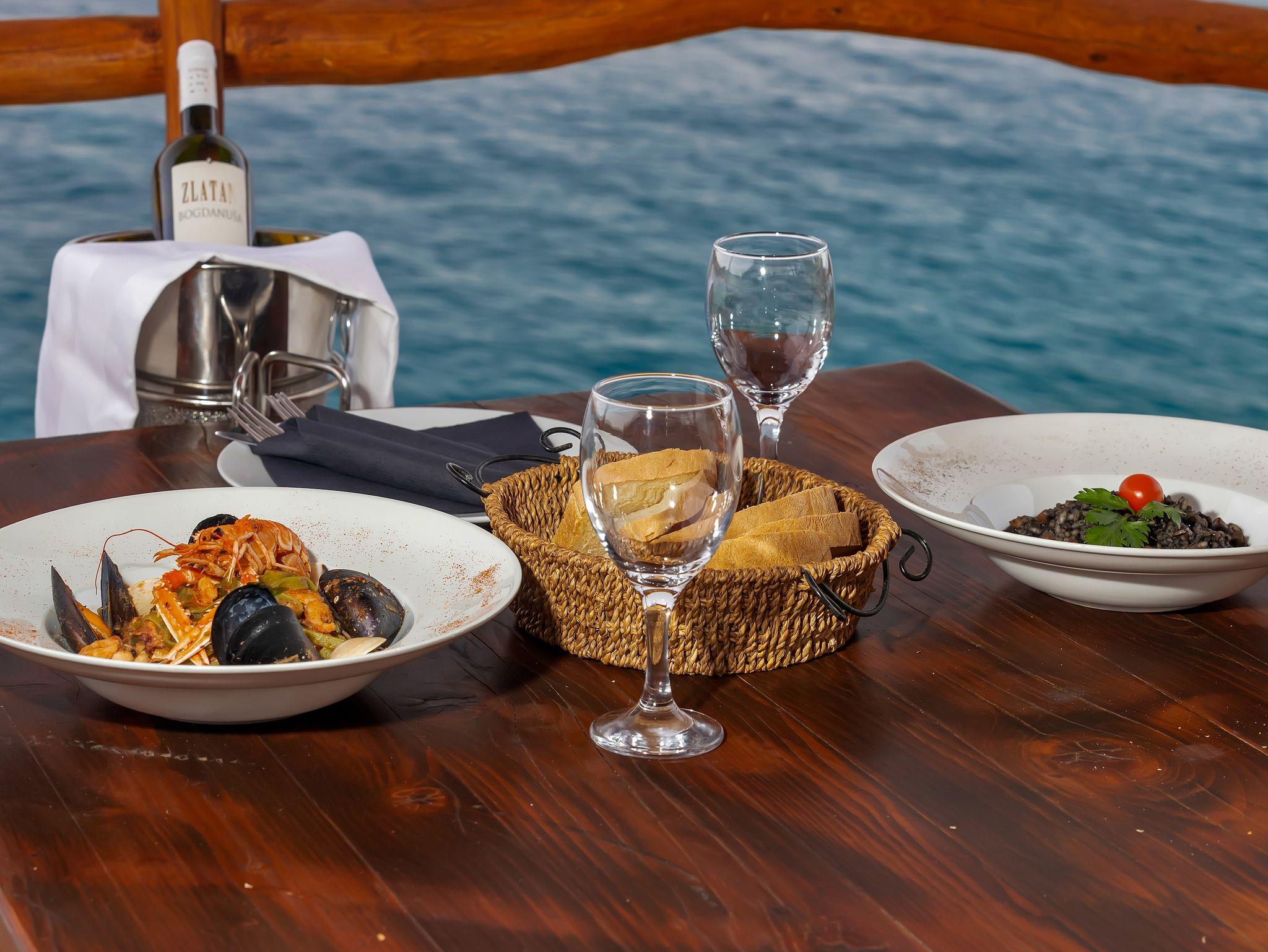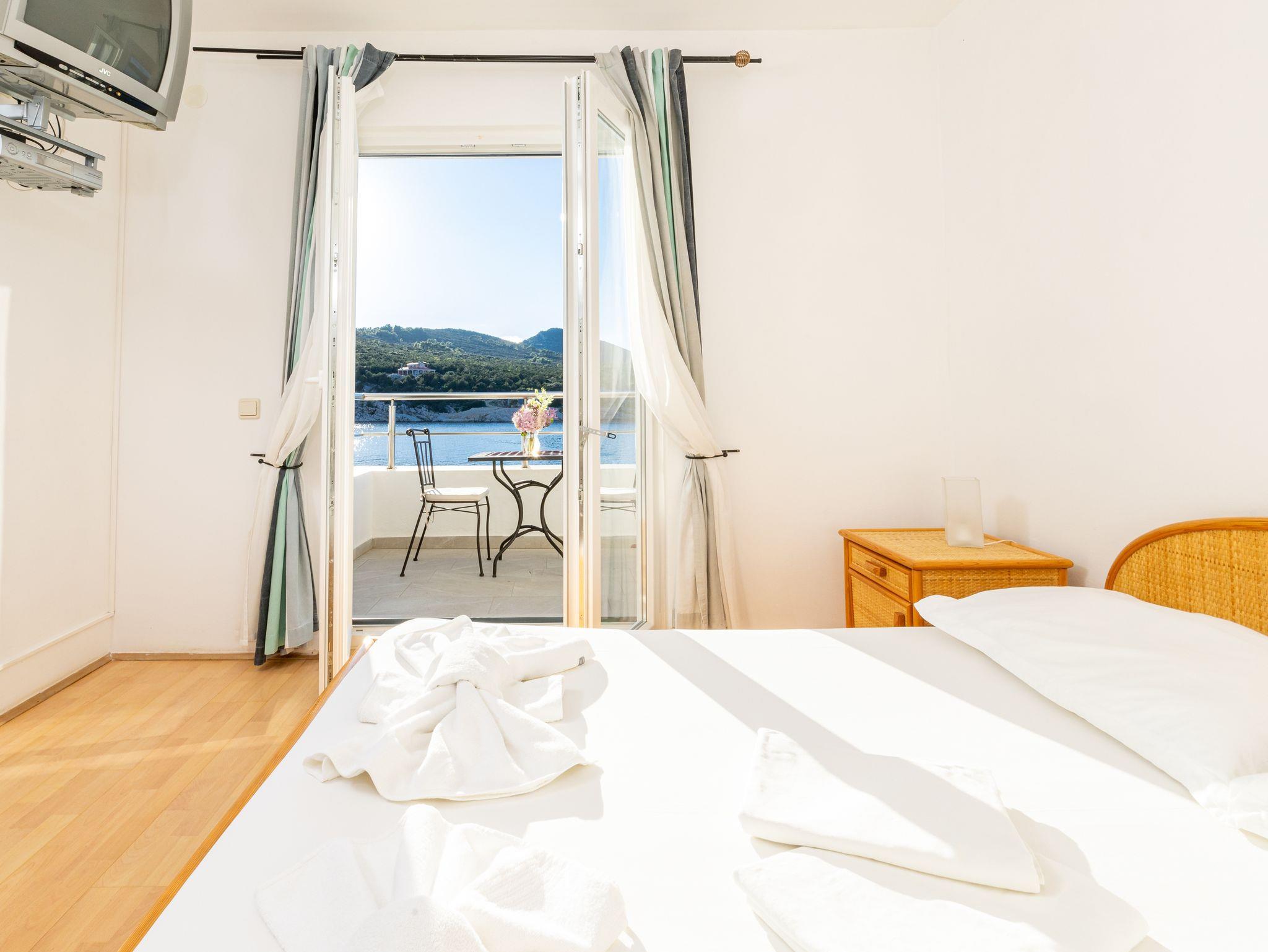 Zimmer bietet Platz für 2 Gäste. Die Betten sind in Schlafzimmern, die es 1 gibt, innerhalb einer Gesamtfläche von 14m2, angeordnet. Die Gäste haben eine eigene Terrasse zur Verfügung, auf der sie in warmen Sommernächten genießen können. Das Zimmer bietet Meerblick. In der Unterkunftseinheit besteht die Möglichkeit des Mitbringens von Haustieren gegen Aufpreis. Die reservierte Unterkunftseinheit ist ein Zimmer mit eigenem Badezimmer ohne die Möglichkeit der Nutzung einer Küche. IM PREIS INBEGRIFFEN: Halbpension, Endreinigung, Klimatisierung, Parkplatz, Internet, Kinderbett, Föhn. VERBINDLICHE ZUSÄTZLICHE KOSTEN: Kurtaxe (Erwachsene 0,93 € - 1,80 € Nacht/Person, Kinderermäßigung 12 - 17 Jahre). UNVERBINDLICHE ZUSÄTZLICHE KOSTEN: Boot (65,00 € pro Nacht), Haustiere (13,00 € pro Nacht). Die Verfügbarkeit zusätzlicher Dienstleistungen in Ihrem reservierten Termin und die Preise derselben (falls nicht aufgeführt) müssen im Voraus überprüft werden. Zusätzliche Dienstleistungen die in der Zahlungsaufforderung nicht aufgeführt sind werden direkt beim Vermieter bezahlt, angenommen der Gast nutzt auch diese.
