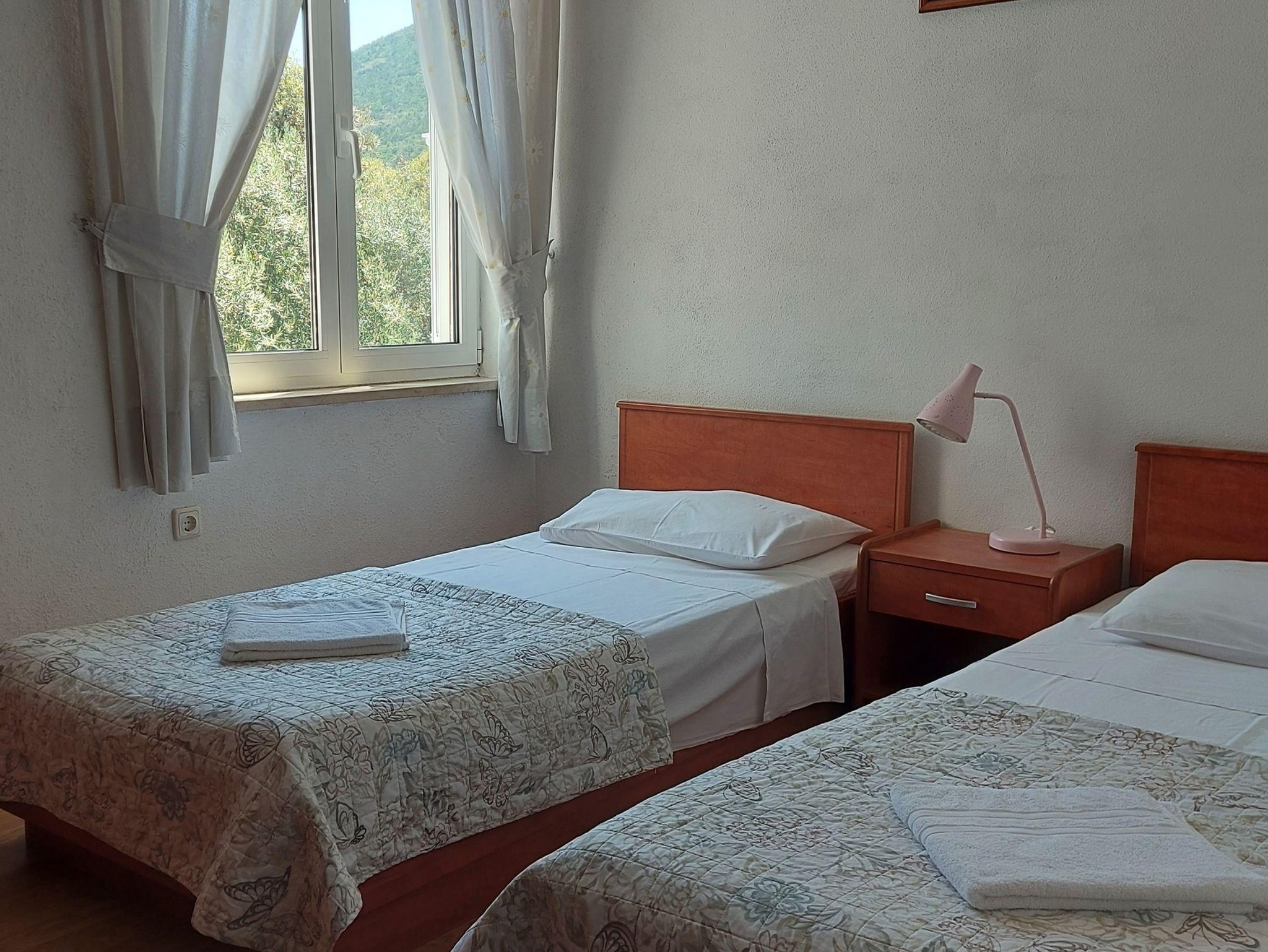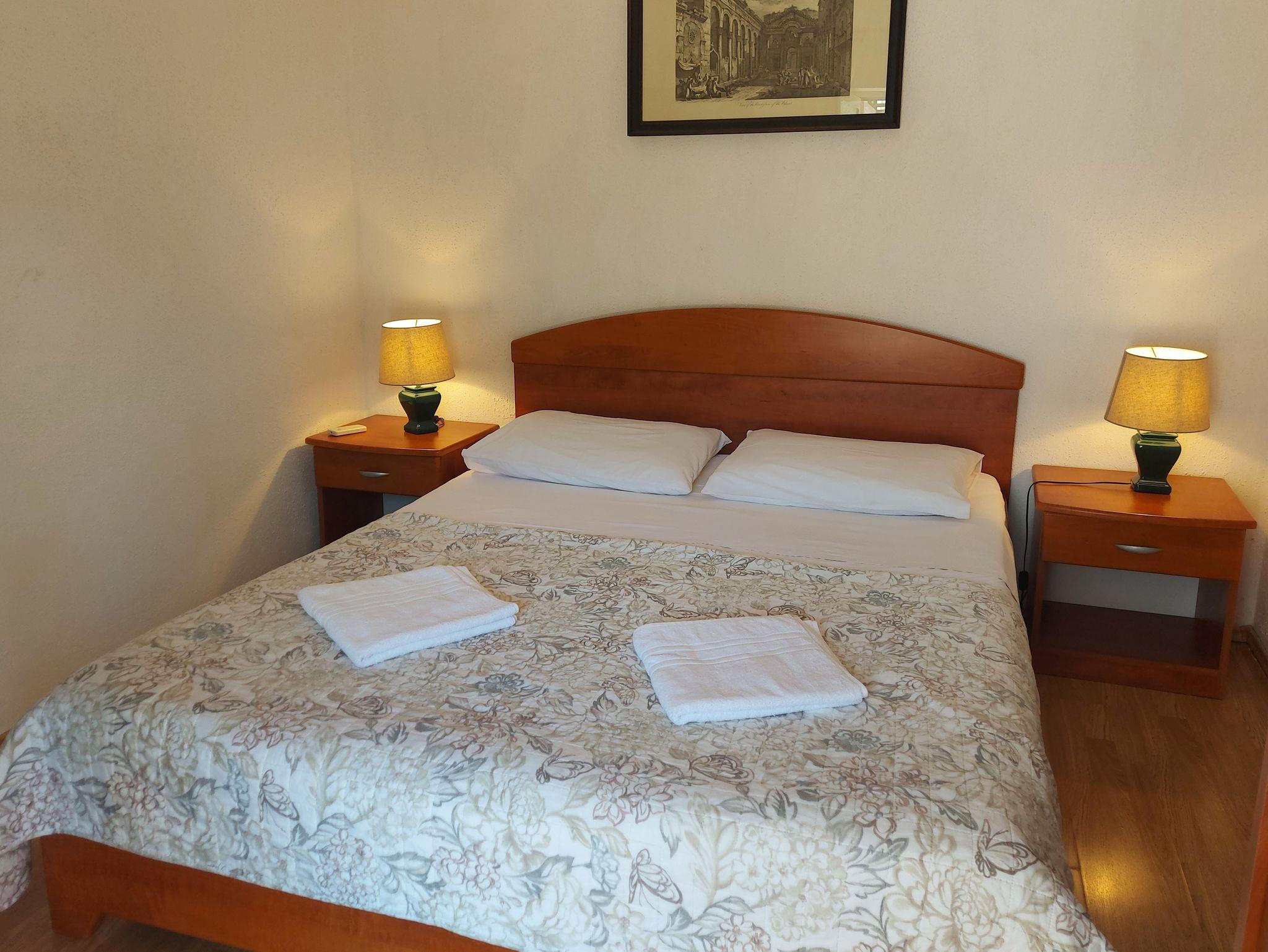 Ferienwohnung bietet Platz für 5 Gäste. Die Betten sind in Schlafzimmern, die es 2 gibt, und in Wohnzimmer, innerhalb einer Gesamtfläche von 48m2, angeordnet. Die Gäste haben eine eigene Terrasse zur Verfügung, auf der sie in warmen Sommernächten genießen können. Das Apartment bietet Meerblick. Es ist erlaubt, Speisen auf dem Gemeinschafts-Grill vorzubereiten. IM PREIS INBEGRIFFEN: Kurtaxe, Endreinigung, Klimatisierung, Parkplatz, Internet, Bootsanlegeplatz. Die Verfügbarkeit zusätzlicher Dienstleistungen in Ihrem reservierten Termin und die Preise derselben (falls nicht aufgeführt) müssen im Voraus überprüft werden. Zusätzliche Dienstleistungen die in der Zahlungsaufforderung nicht aufgeführt sind werden direkt beim Vermieter bezahlt, angenommen der Gast nutzt auch diese.