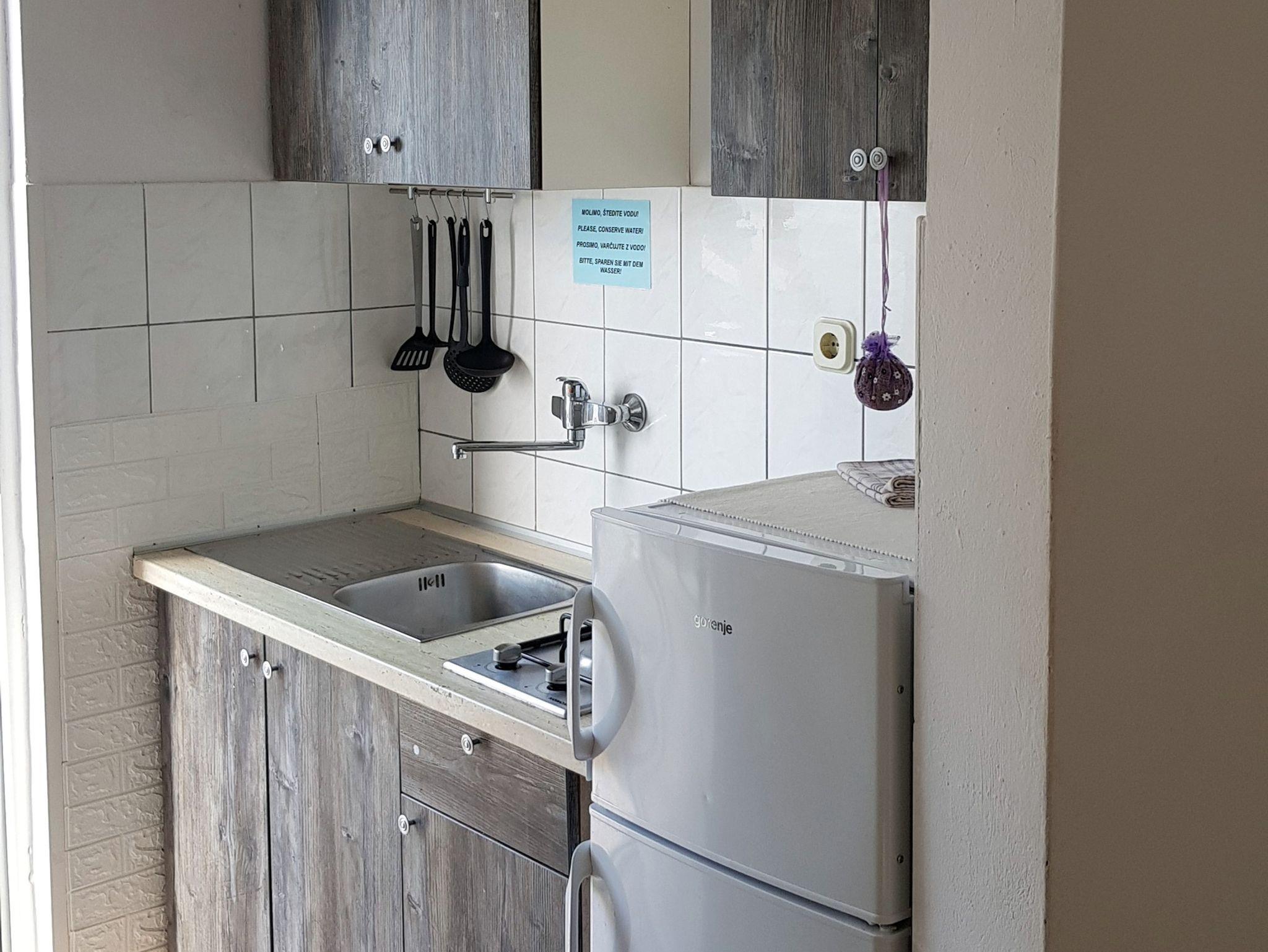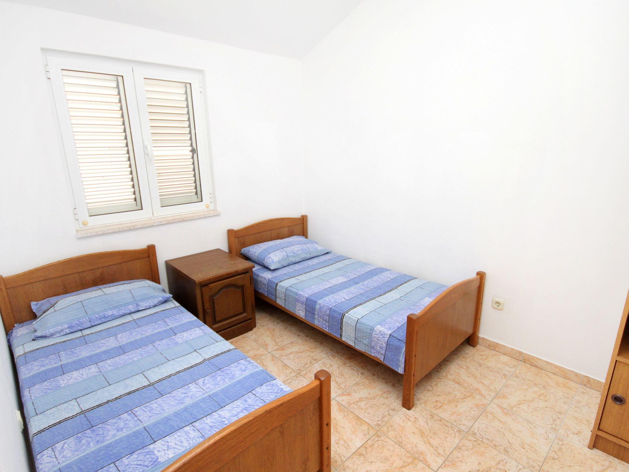 Ferienwohnung bietet Platz für 4 Gäste. Die Betten sind in Schlafzimmern, die es 2 gibt, innerhalb einer Gesamtfläche von 38m2, angeordnet. Die Gäste haben eine eigene Terrasse zur Verfügung, auf der sie in warmen Sommernächten genießen können. Das Apartment bietet Meerblick. Es ist erlaubt, Speisen auf dem Gemeinschafts-Grill vorzubereiten. IM PREIS INBEGRIFFEN: Kurtaxe, Endreinigung, Parkplatz, Internet, Kinderbett, Föhn, Liegestühle. VERBINDLICHE ZUSÄTZLICHE KOSTEN: Aufzahlung für Kurzaufenthalte (prozentualer Zuschlag pro Nächtigungsanzahl: 30% - 1, 20% - 2, 10% - 3). UNVERBINDLICHE ZUSÄTZLICHE KOSTEN: Wäschewaschen (5,00 € Waschen), Bootsanlegeplatz (10,00 € pro Nacht), Zusatzbett (10,00 € pro Nacht). Die Verfügbarkeit zusätzlicher Dienstleistungen in Ihrem reservierten Termin und die Preise derselben (falls nicht aufgeführt) müssen im Voraus überprüft werden. Zusätzliche Dienstleistungen die in der Zahlungsaufforderung nicht aufgeführt sind werden direkt beim Vermieter bezahlt, angenommen der Gast nutzt auch diese.