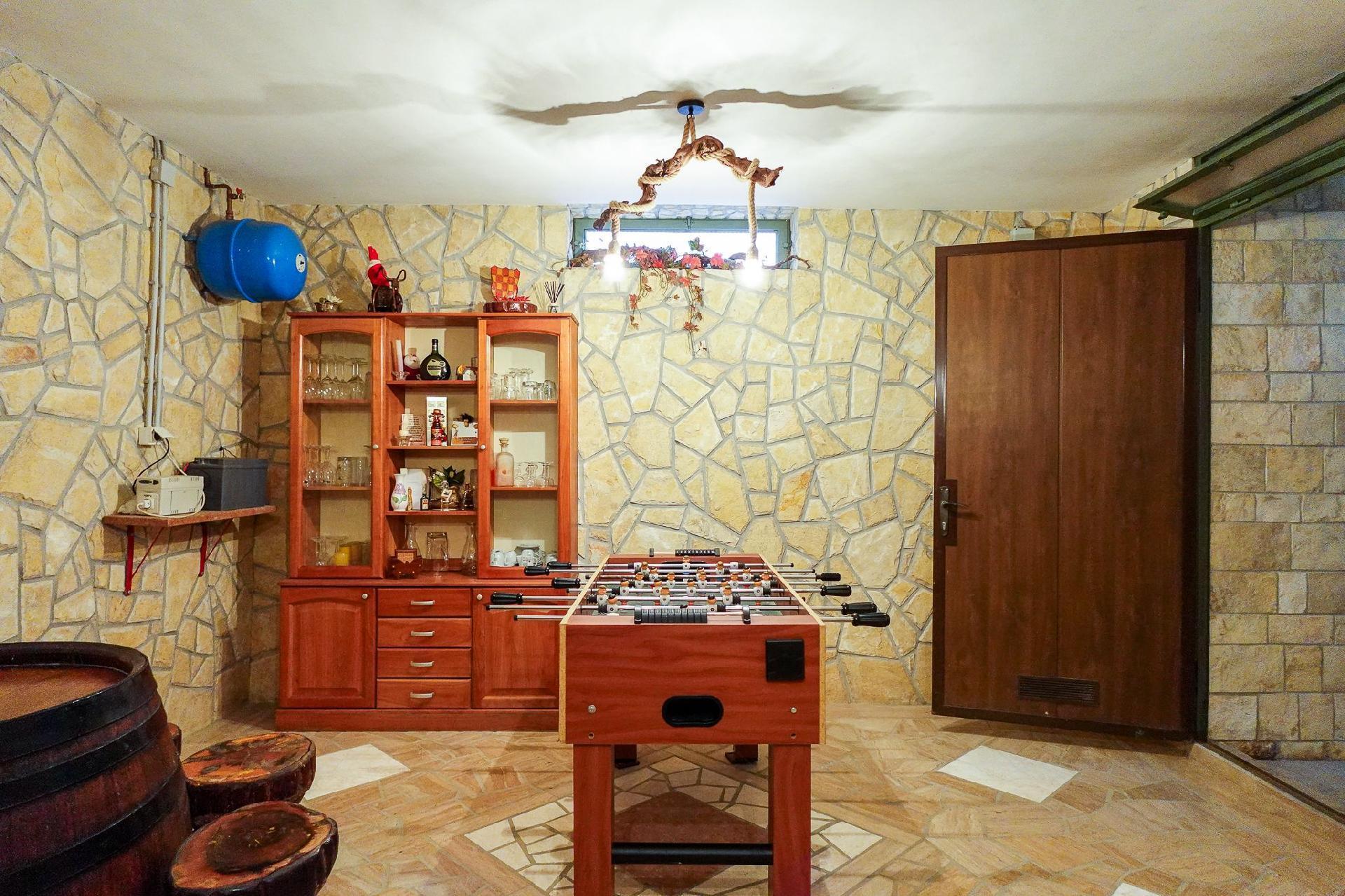 Inside, the house boasts a well-equipped kitchen featuring a gas cooker, dishwasher, filter coffee machine, and electric kettle to cater to all your culinary needs. For your entertainment, the house is fitted with a Smart TV and offers exciting games like billiards and table football, ensuring fun moments with family or friends. The inclusion of air conditioning throughout the house guarantees your utmost comfort during your stay.