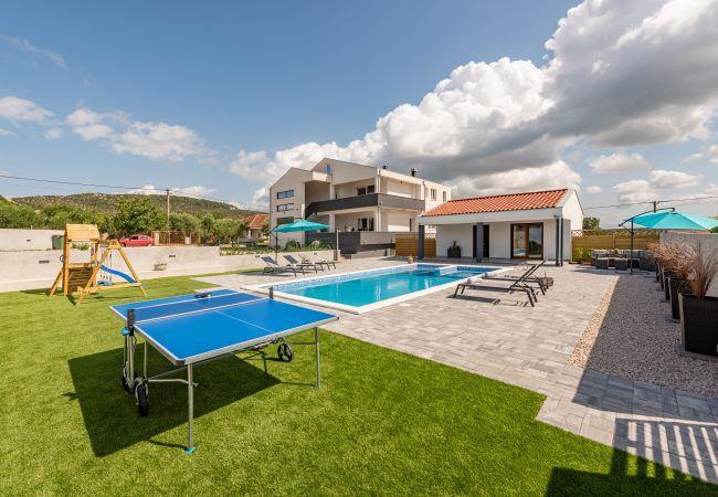 Villa Zeleni Gaj is located in the small place of Glavica, which is located not far from Sukošan. Glavica is located in the municipality of Sukošan, so it is close to all important facilities, such as Zadar Airport, which is 12 km away, the city of Zadar, 20 km away, and Marina Dalmacija, only 13 km away. The beauty of beaches and sea in this parto f Croatia, luxury accommodation, hospitable hosts with a rich cultural heritage have been attracting many domestic and foreign tourists and boaters for decades.