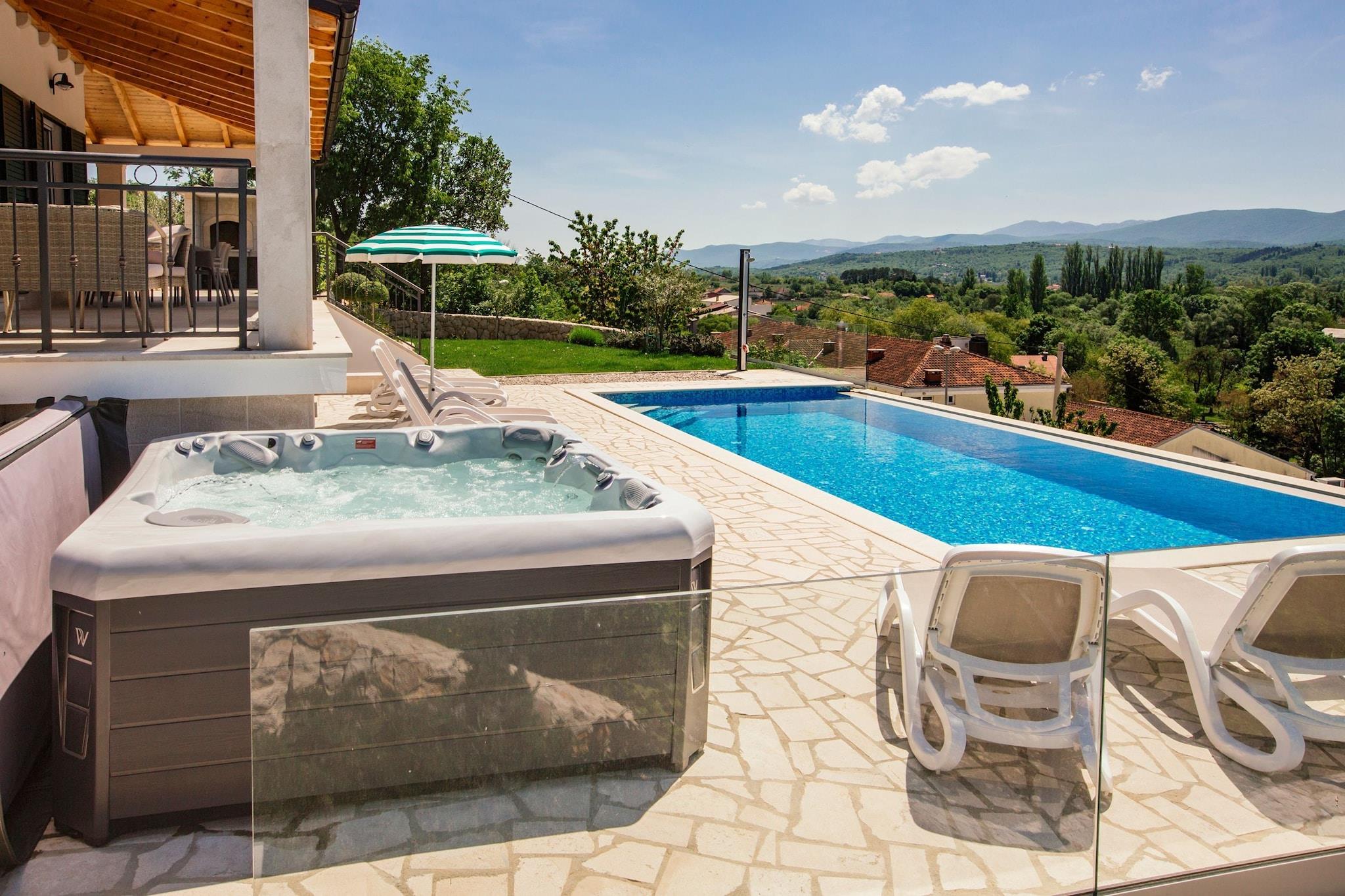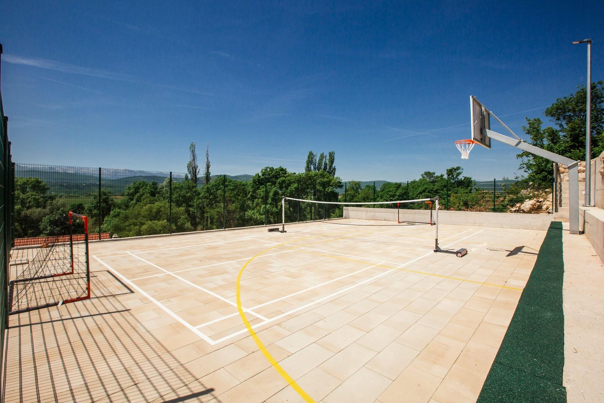 Langt væk fra byens vanvid tilbyder denne fredelige villa i Glavina Donja 5 soveværelser til 11 personer. Ideel til en stor familie eller gruppe, villaen har en privat swimmingpool, hvor du kan svømme, mens du nyder udsigten, og grillfaciliteter for at nyde madlavning i naturlige omgivelser. Mæt dine smagsløg ved at spise på restauranter i 100 m. Du kan få dine daglige forsyninger i supermarkedet 400 m væk. Der er en flod på 200 m og en sø på 1 km, hvor du kan tage på picnic. En dagstur til havet, 30 km væk, kan også laves. Chat med dine venner på den private overdækkede terrasse, mens du ser børnene lege i den private have. Parkeringsmulighed er på stedet. Cykler er også tilgængelige, hvis du vil ud og udforske området. Der er et opholdsrum med bordtennisbord og dart, billard, bordfodbold, flipperspil, så du ikke keder dig, når du er indendørs. Ikke langt fra swimmingpoolen er der også en privat legeplads, hvor du kan genskabe og nyde badminton, 3x3 basketball eller cagebal. Nærmeste lufthavn ligger 100 km.