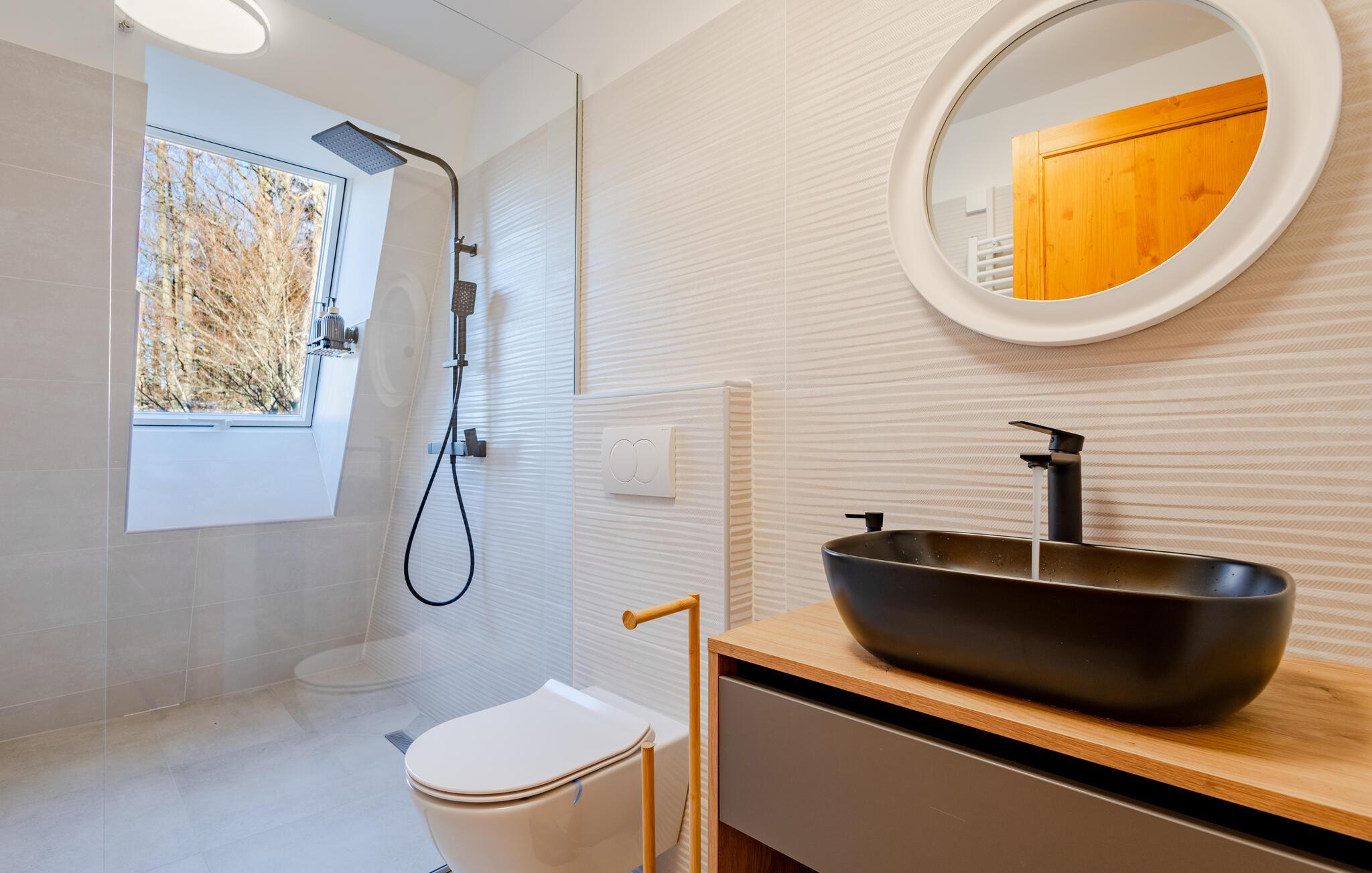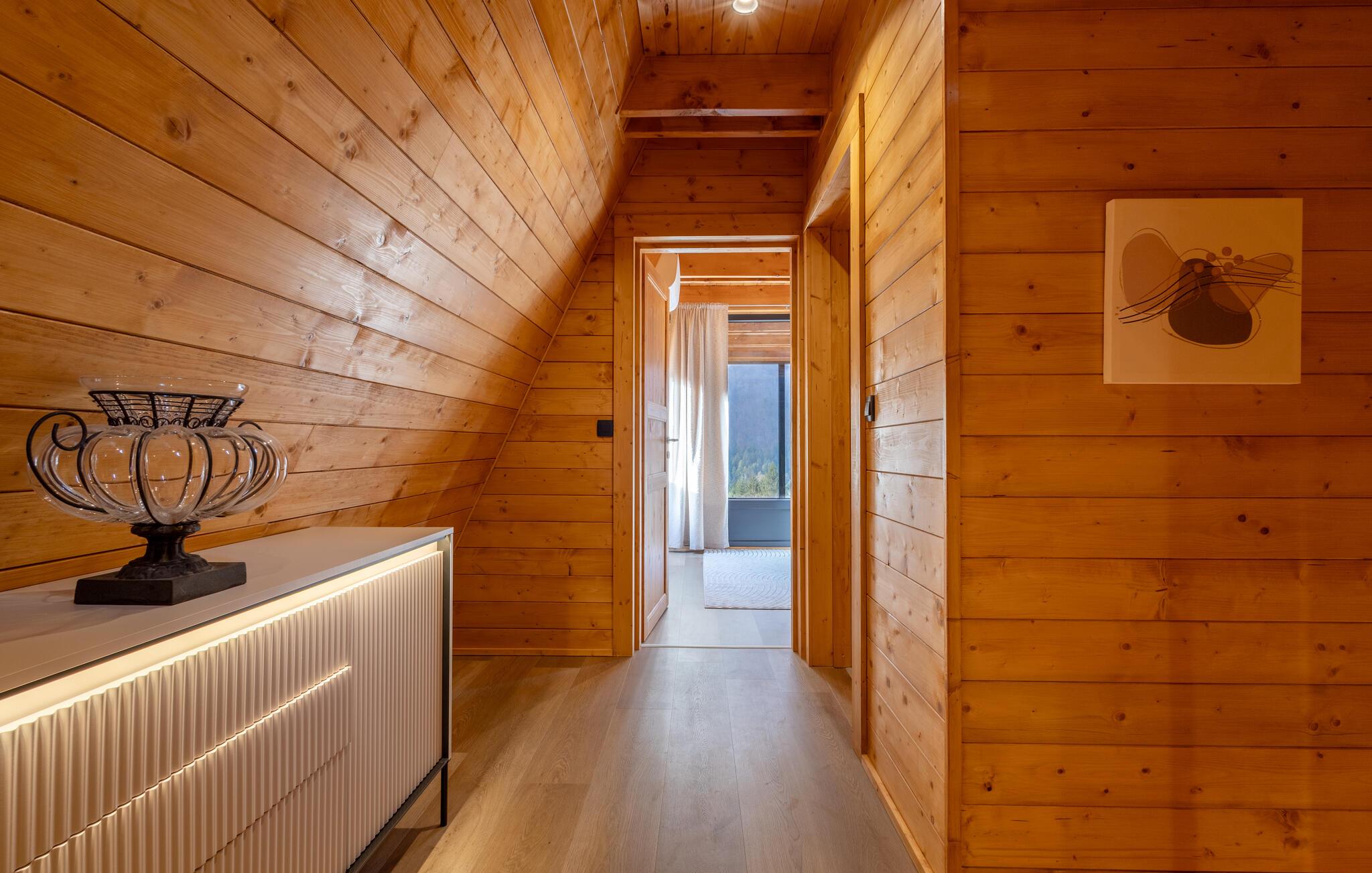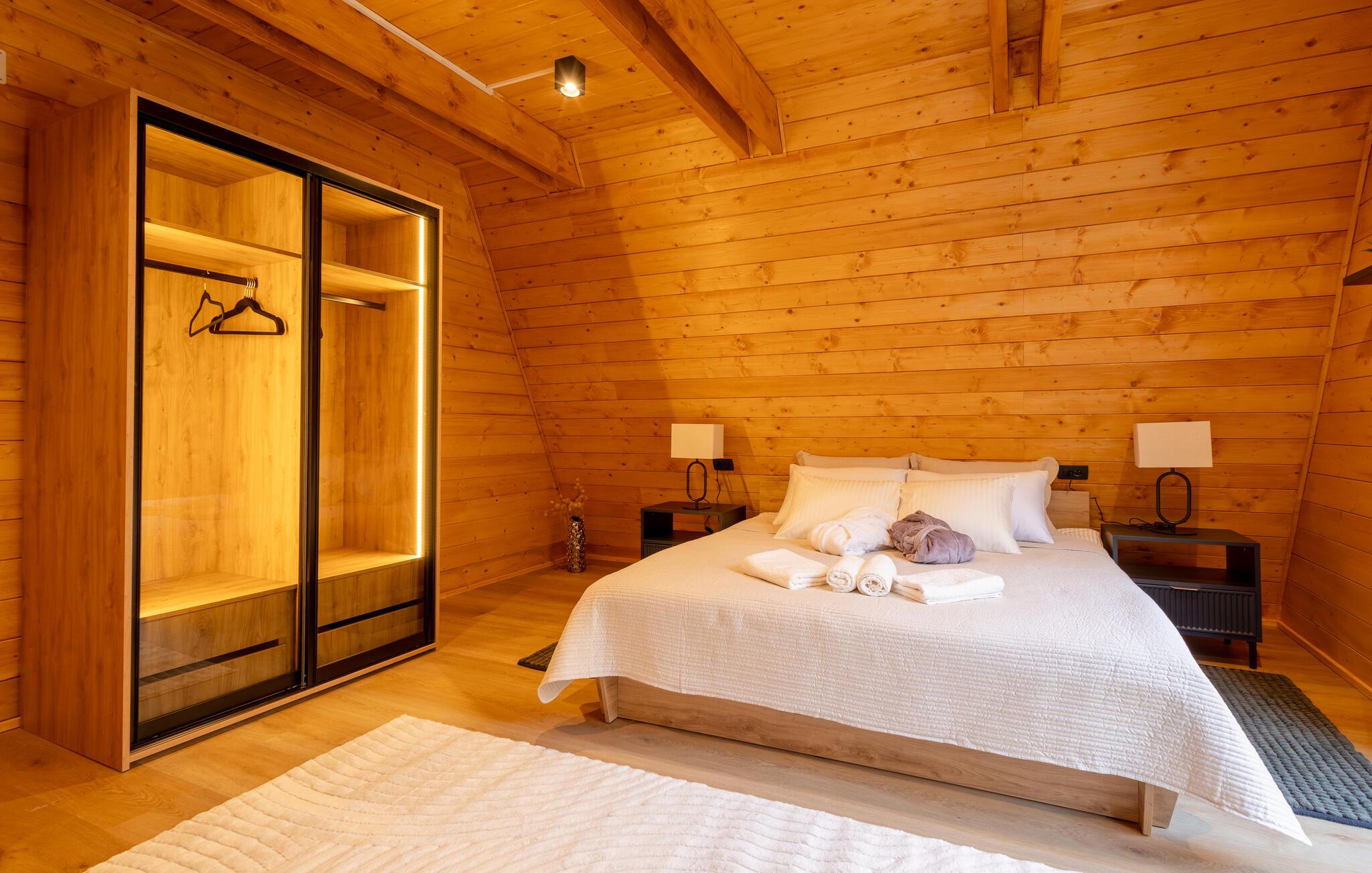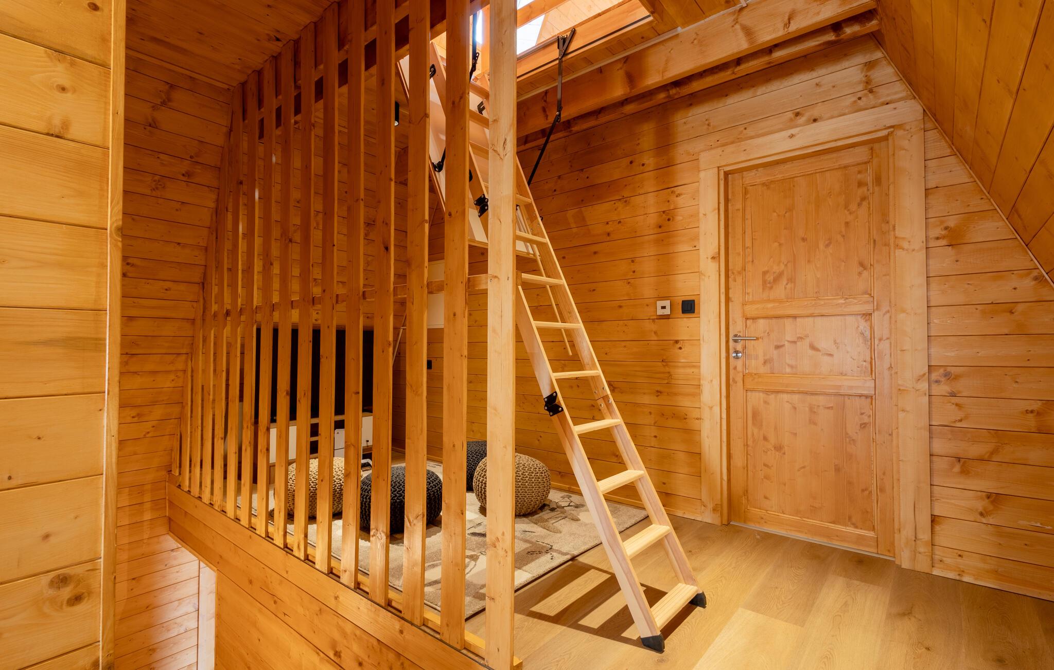 Omgivet af uberørt natur og beliggende på en skråning byder dette komfortable og smagfuldt indrettede feriehus velkommen, hvis rummelige vinduesfronter byder på en betagende udsigt over det omkringliggende landskab. Lav mad sammen i det moderne køkken og spis ved det elegante spisebord. Forkæl jer selv med afslapning i den indendørs pool, inden I synker ned i det komfortable sofaområde om aftenen, streamer en spændende serie eller slutter dagen af ??med et glas vin foran pejsen.