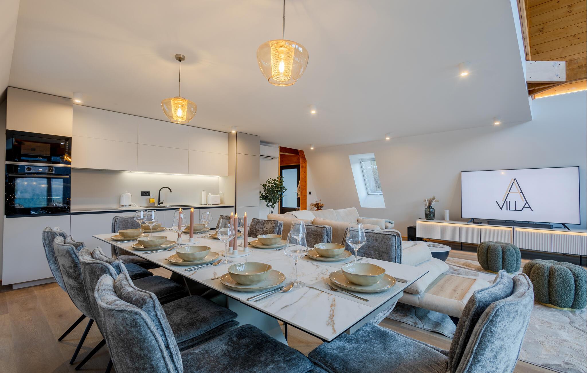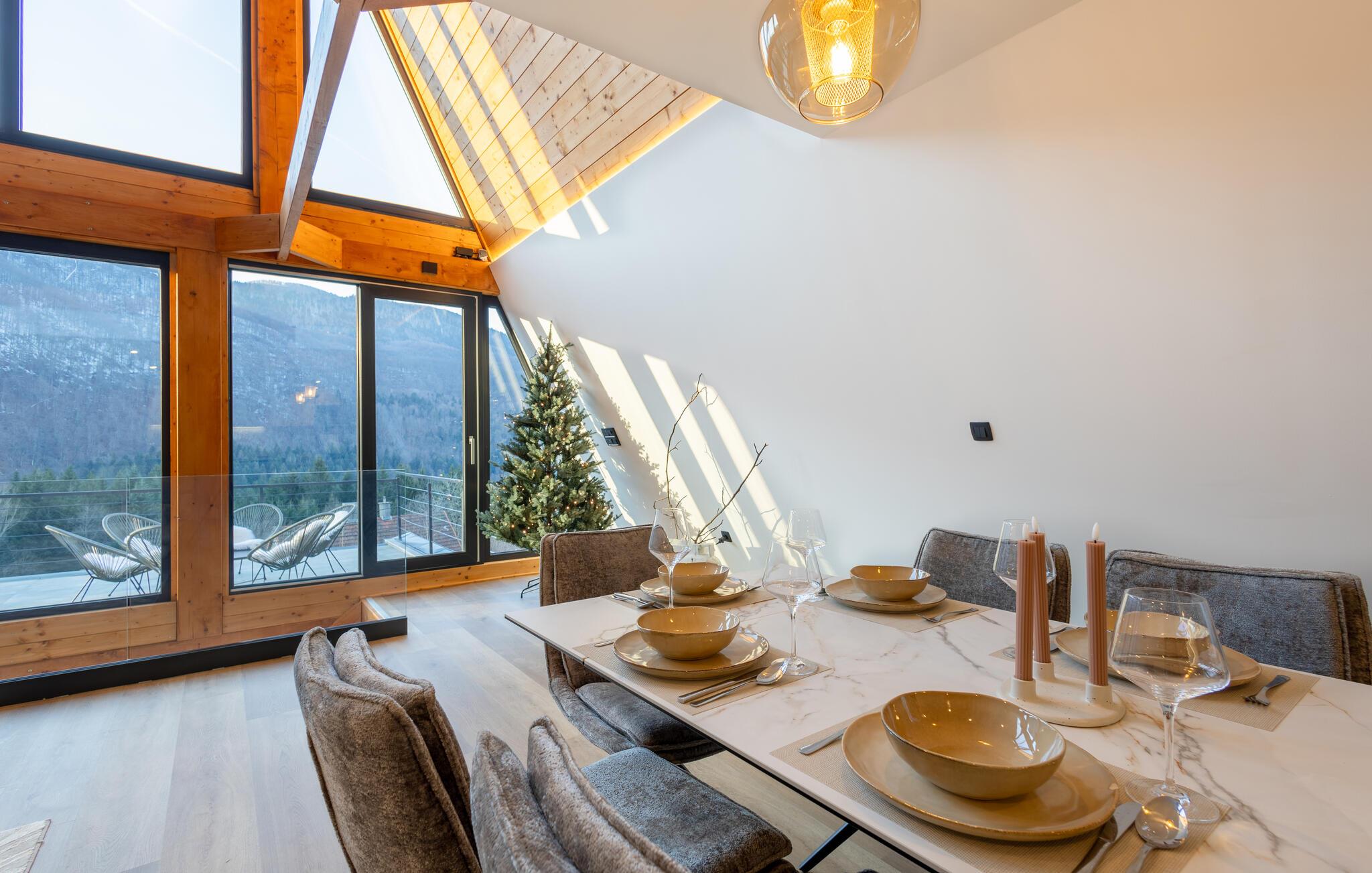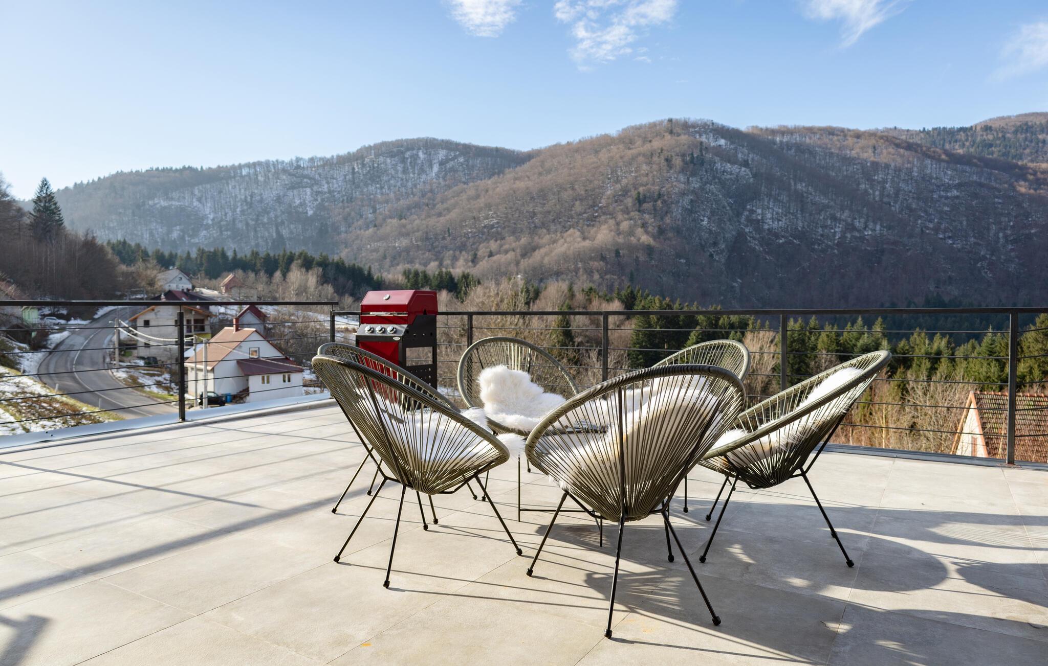 Træd ud på jeres terrasse med en sensationel panoramaudsigt, og lad den klare bjergluft strømme gennem jeres lunger, mens Dette blik vandrer over den maleriske kulisse. Tænd grillen ved solnedgang og nyd stemningsfulde grillmad under den funklende stjernehimmel.