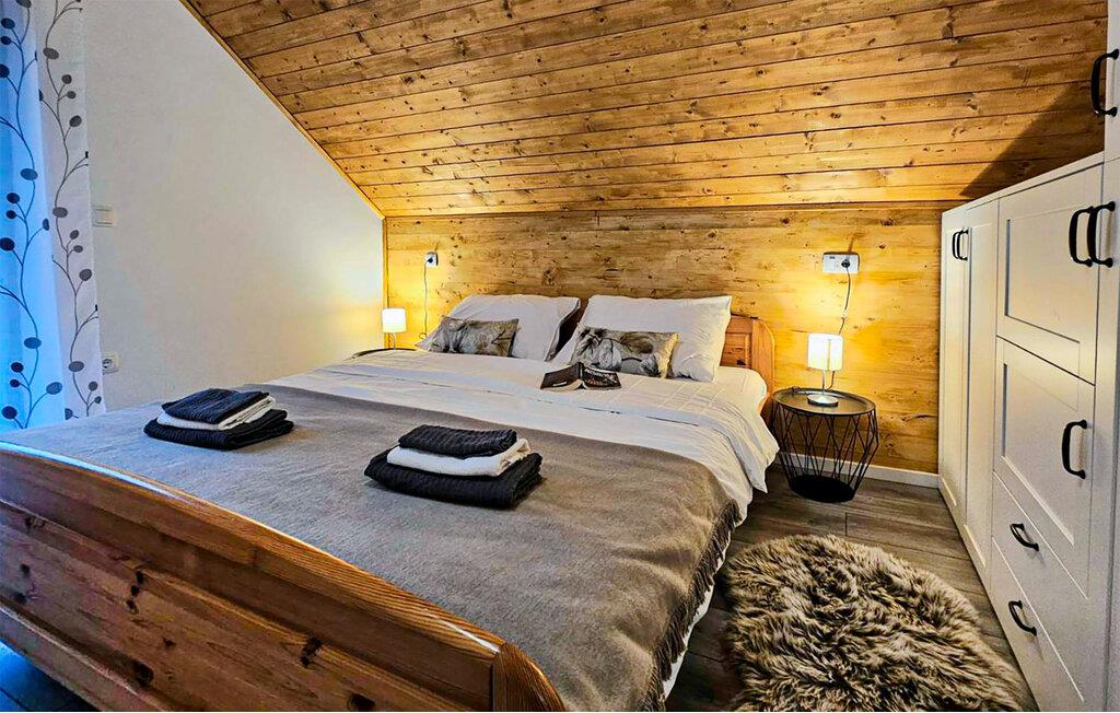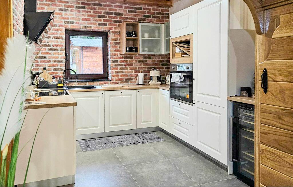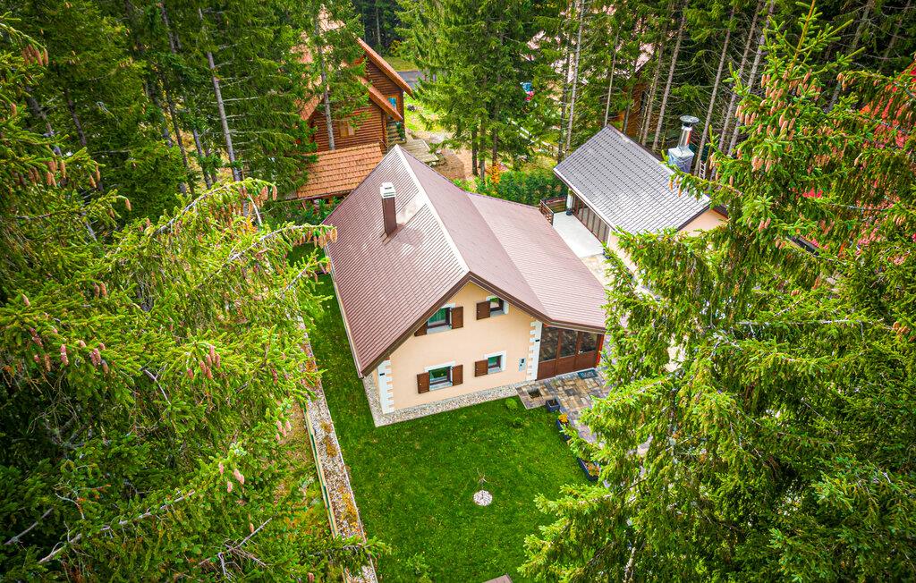 Omgivet af tårnhøje træer kombinerer dette hus på harmonisk vis rustik charme og komfort. Synlige træbjælker, natursten og træmøbler skaber en hyggelig atmosfære, hvor I hurtigt vil føle jer hjemme. Læn jer tilbage i spabadet, tilbring en filmaften på sofaen eller spil et spil dart.