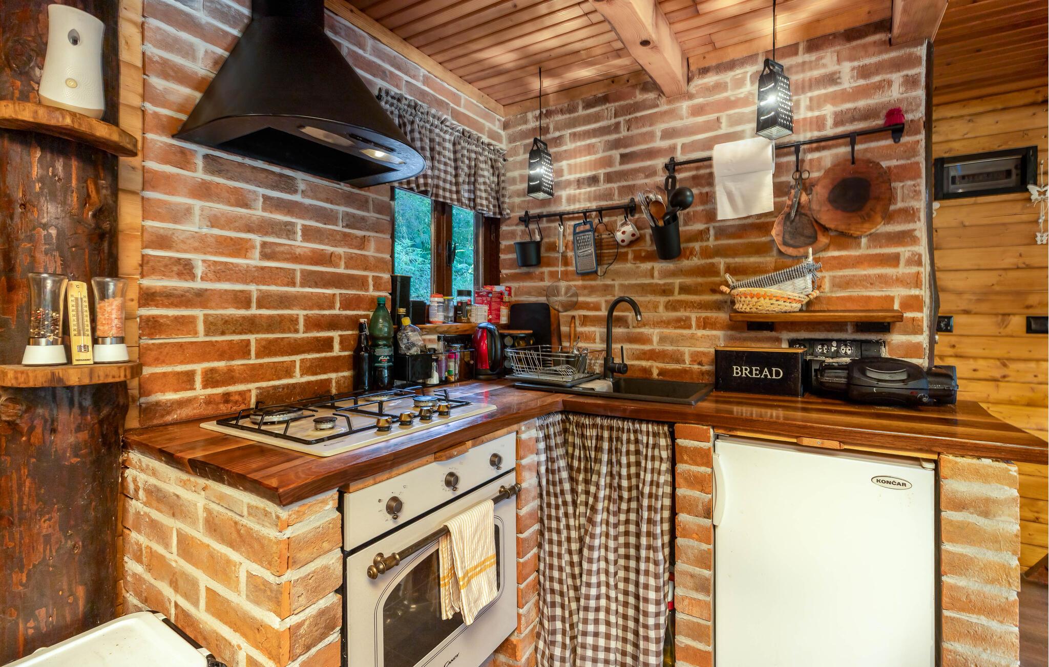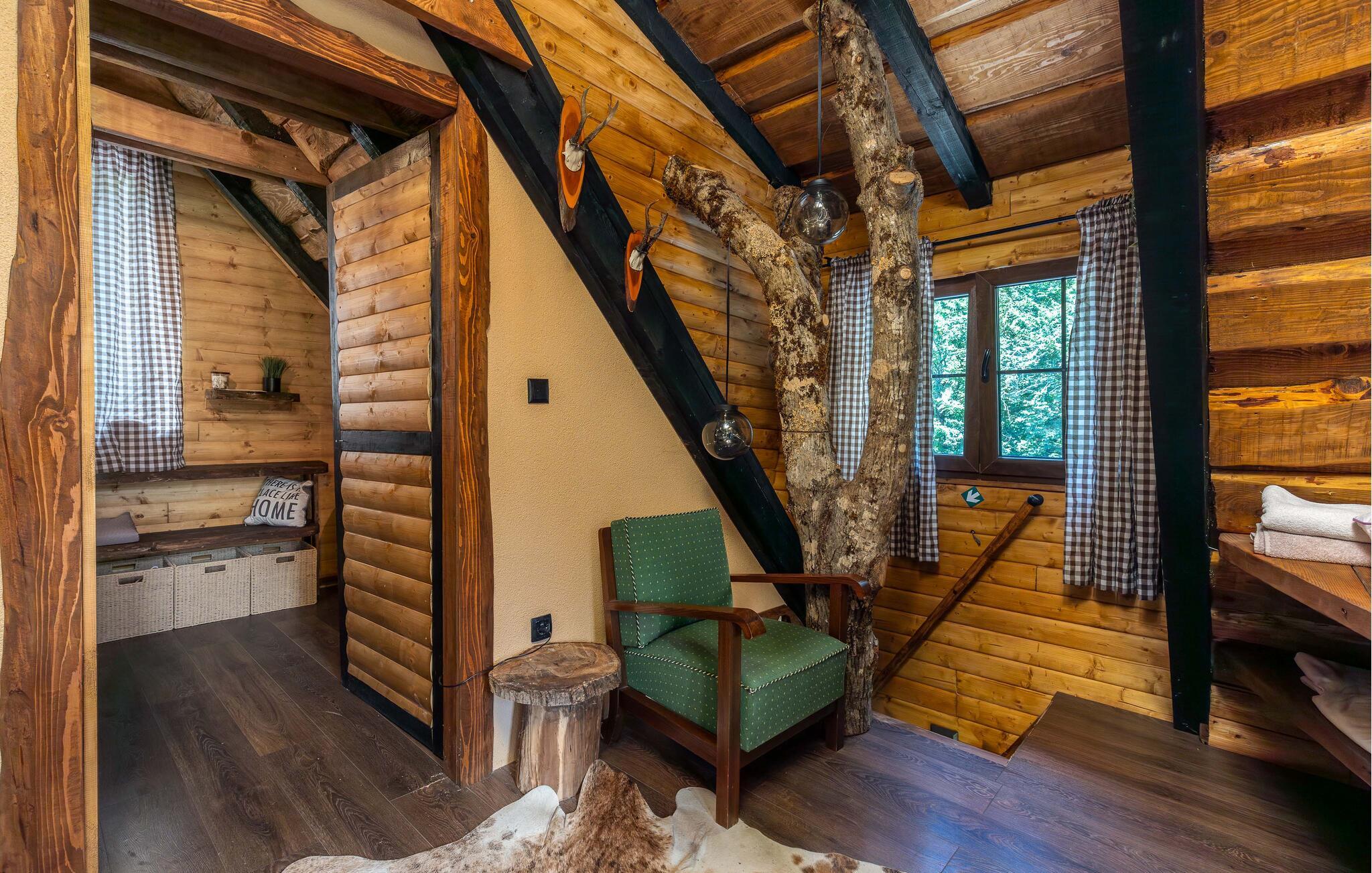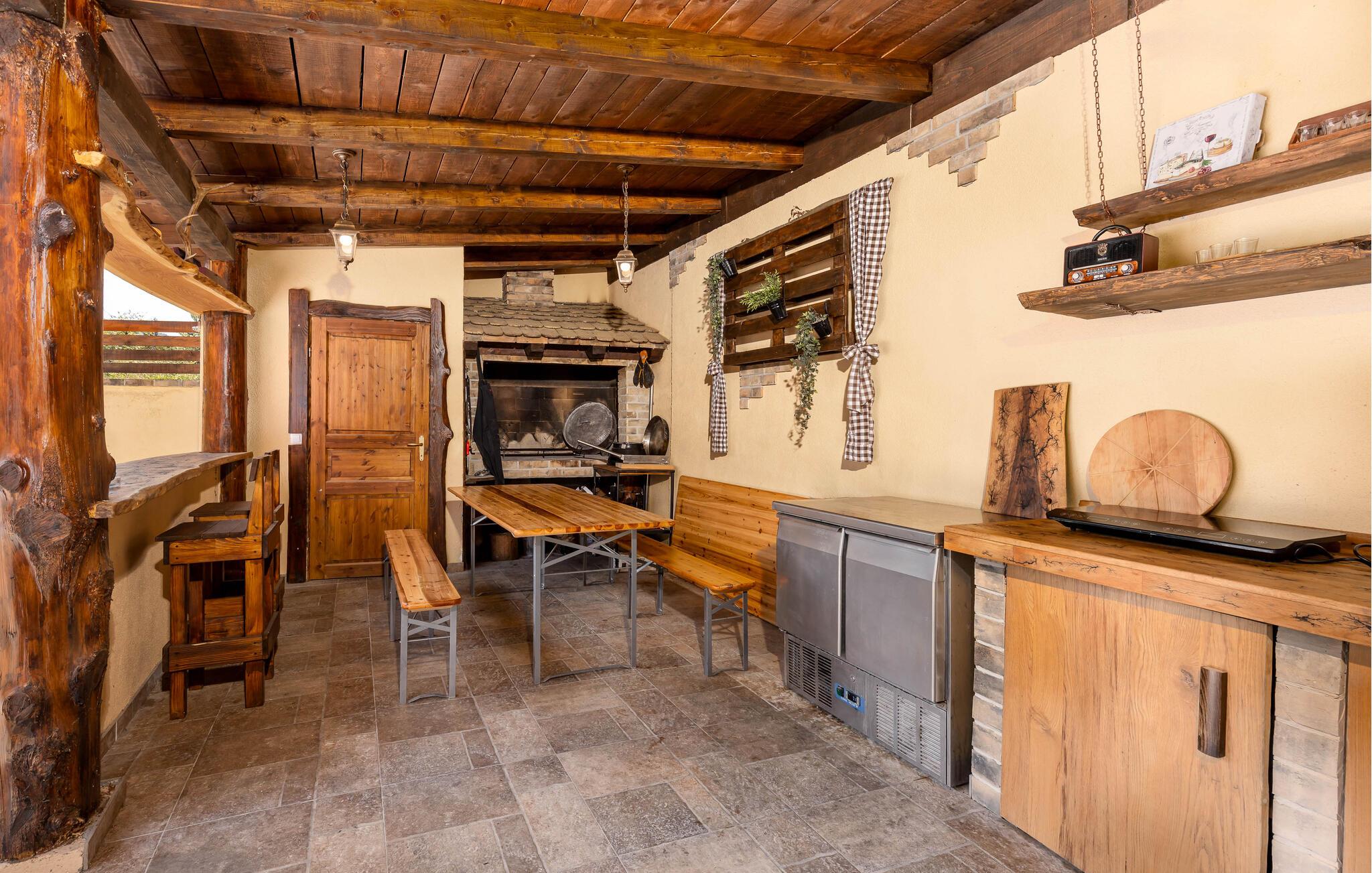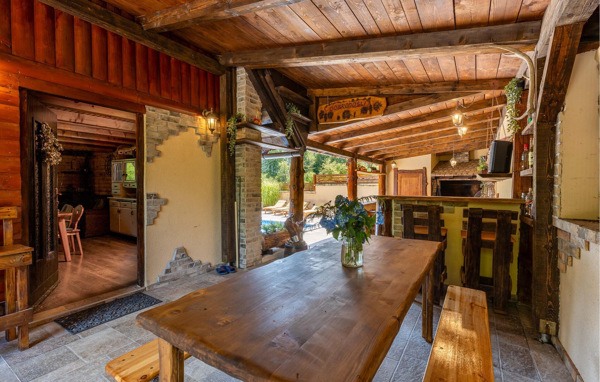 Nyd en afslappende ferie i dette maleriske feriehus med pool og panoramaudsigt. Dette hus venter jer med en hyggelig atmosfære med masser af træ, varm belysning og gennemtænkte detaljer, der udstråler en ægte hyttefølelse. Hyg jer sammen i den store sofa, lyt til jeres yndlingsmusik, eller slap af med en film. I det rustikke, veludstyrede køkken kan I lave mad sammen og nyde regionale råvarer. Den åbne spisestue med massive træmøbler inviterer jer til at tilbringe lange aftener med at snakke, spille spil eller nyde et glas vin. I den store have, omgivet af modne frugttræer, finder I et roligt sted at læse, spille spil eller blot slappe af i det grønne. Nyd jeres måltider under den overdækkede terrasse med det rustikke træbord, ideelt til lange grillfester med familie eller venner. På varme sommerdage er aftenerne her behageligt kølige. Udforsk den uberørte natur i Kroatiens grønne hjerte på lange vandreture eller cykelture gennem skove og dale. Tag en tur til den nærliggende by Cabar, som imponerer med sin charmerende beliggenhed og regionale kultur. Slap af ved floden i umiddelbar nærhed af huset, som giver forfriskning på varme sommerdage. Talrige udsigtspunkter, huler og historiske stier i det omkringliggende område indbyder til spændende opdagelser.
