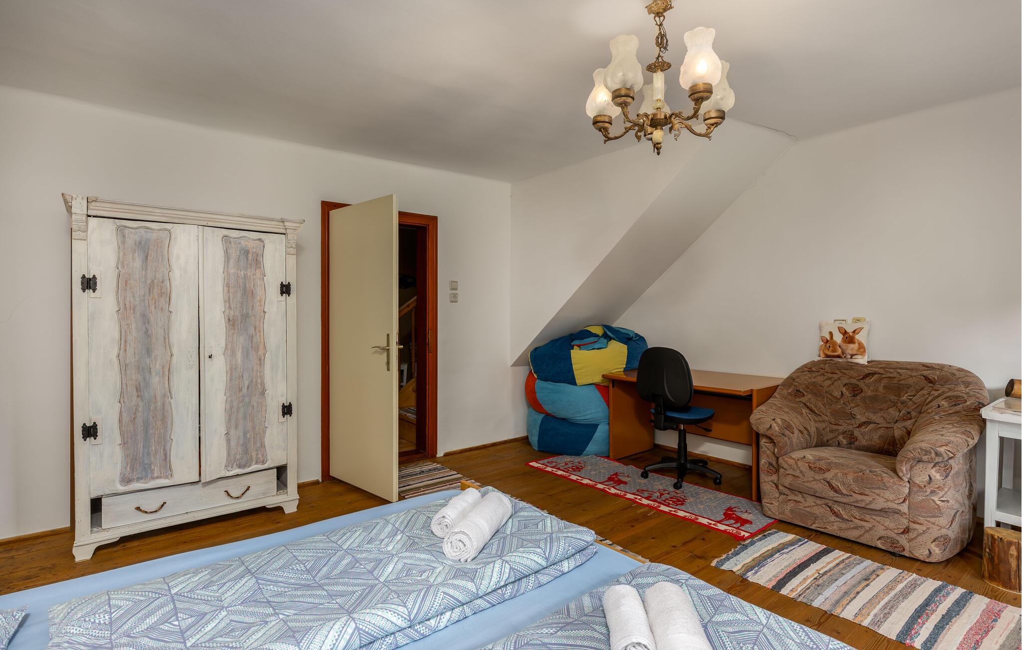 Nyd jeres ferie i dette idyllisk beliggende feriehus. Dette indbydende hus byder jer velkommen med en vellykket blanding af rustik charme og hygge. Træpaneler, synlige træbjælker og en traditionel pejs skaber en atmosfære, der er både hyggelig og nostalgisk. Slap af i sofaen, stream jeres yndlingsserie, eller tilbered et lækkert måltid i det moderne køkken. Den smukke have inviterer jer til at slappe af når som helst på dagen. Gå udenfor om morgenen med en duftende kaffe og nyd naturens ro. Find et roligt sted i træernes skygge og fordyb jer i en god bog. Skænk en kroatisk vin i glasset om aftenen og afslut dagen på en afslappet måde. Udforsk de omkringliggende skove og bjerge på vandreture eller cykelture gennem den uberørte natur i Gorski Kotar. Besøg den nærliggende by Vrbovsko, som vil glæde jer med sine maleriske omgivelser og traditionelle arkitektur. Tag på udflugter til regionens floder og søer, som inviterer jer til at fiske, padle eller blot slappe af. Nyd naturens ro og oplev bjergregionens kulinariske specialiteter i gæstehusene i Ravna Gora og omegn.