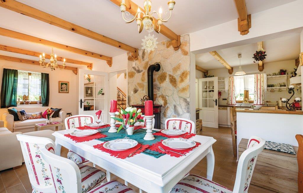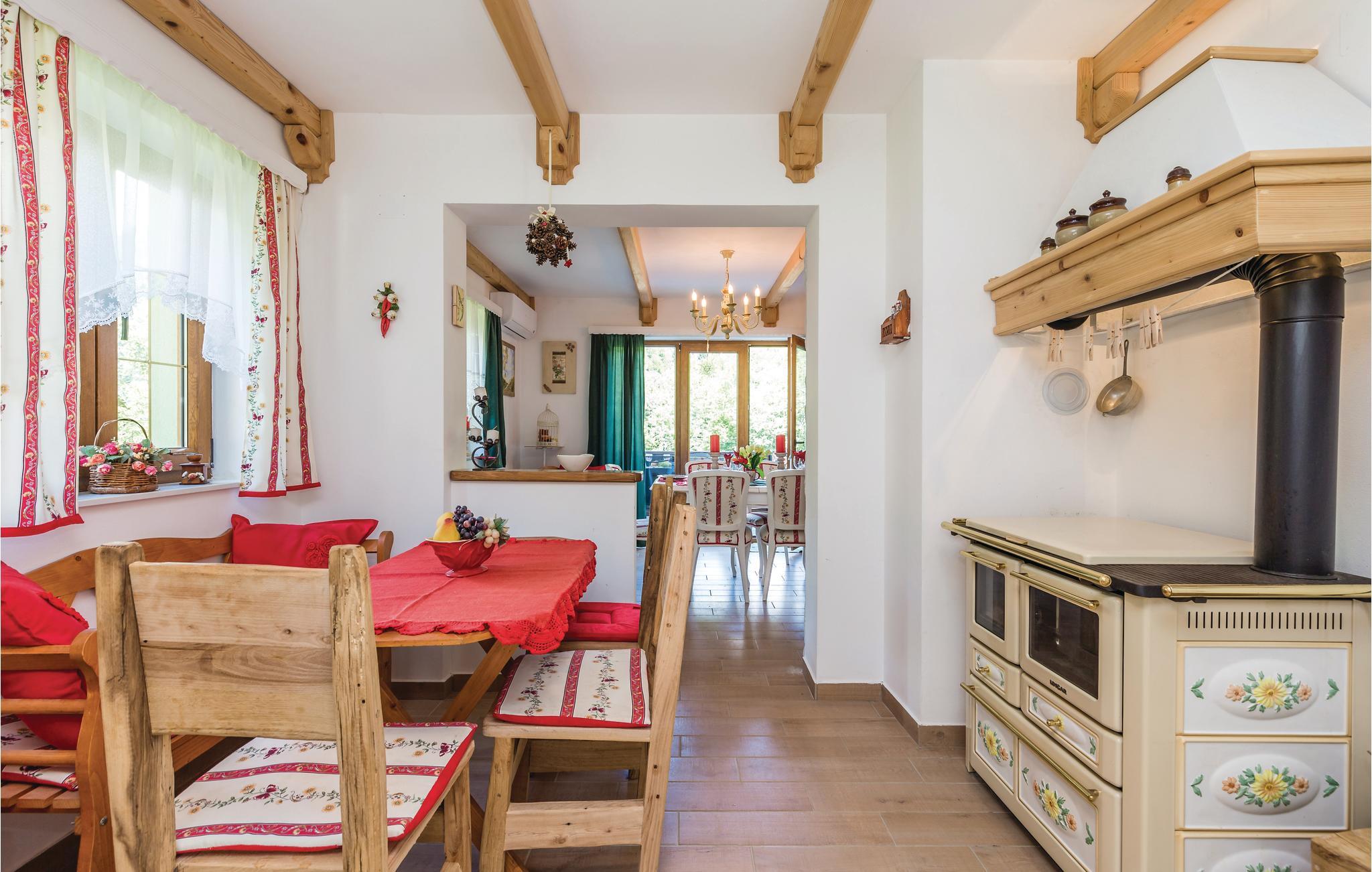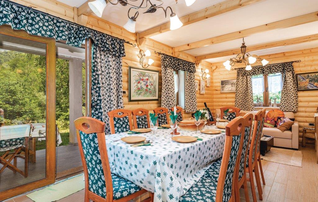 Dette skønne rummelige feriehus ligger ved floden Kupa og er fordelt på tre etager. Hovedindgangen ligger du mod floden og fører op til første sal hvor der er et køkken i åben kombination med stuen og en delvist overdækket terrasse. En indre trappe fører op til tagetagen med soveværelser. I stueplan er der yderligere køkken i åben forbindelse med stue og udgang til en overdækket terrasse. Her er der både grill og aktivitetsmuligheder som mini-fitness, en sauna og bordfodbold. I området kan I vandre, cykle, kigge på en stor diversitet af fugle, rafte og fiske. Det tager kun 40 minutter at køre til havet og Crikvenicas berømte riviera og Opatija.