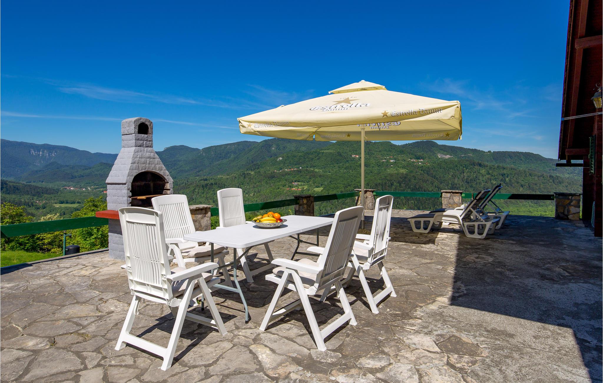 Ved ankomsten vil I straks blive overbevist af husets højdepunkt, den smukke store terrasse med udsigt over landskabet. Her kan I tilbringe mange gode stunder, nyde jeres morgenkaffe, et godt middagsmåltid, en god bog eller blot den fantastiske udsigt og solen. Her er I omgivet af grønne bjerge, omkring dalen af den slovenske grænseflod Kolpa.