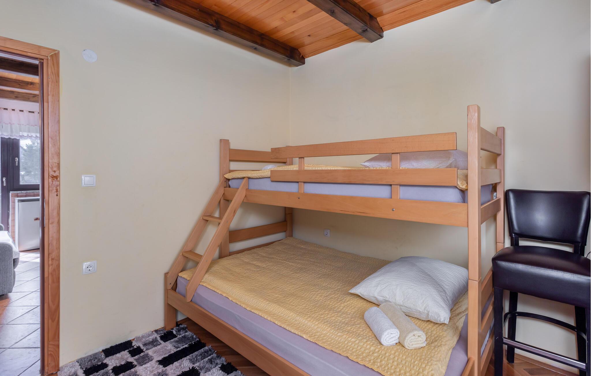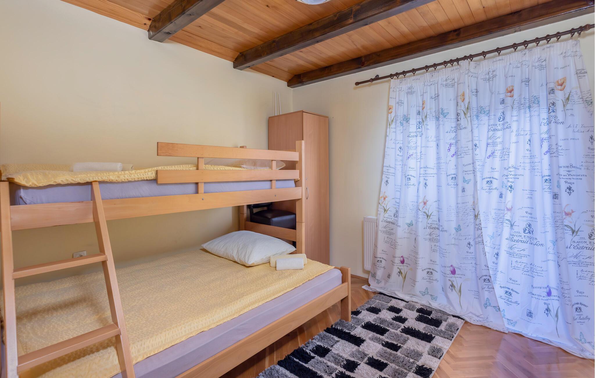 Dette dejlige feriehus ligger i Fužine, ikke langt fra en sø, men alligevel tæt på bymidten. Der er en halv time i bil til de nærmeste sandstrande ved havet, men som populært feriemål har Fužine flere aktiviteter for den aktive feriegæst. Landskabet har mange markerede vandre- og cykelstier, hvoraf stien rundt omkring Bajer søen hører til de mest benyttede på grund af udsigten. Fužine er kendt for sine gode spisesteder, hvor man kan nyde de lokale specialiteter. Husets ejer bor også på grunden.