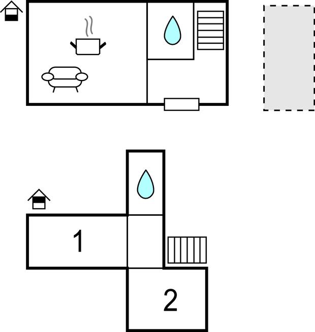 Opholdsstue/køkken - 2 Sovepladser. (Sofa, madras eller lignende).