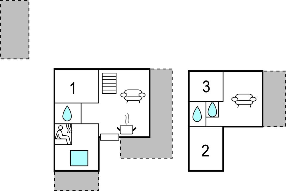 Soveværelse 20m2 (nr. 2) - 1 Soveplads. (Enkeltseng(e)). 2 Sovepladser. (Dobbeltseng(e)).