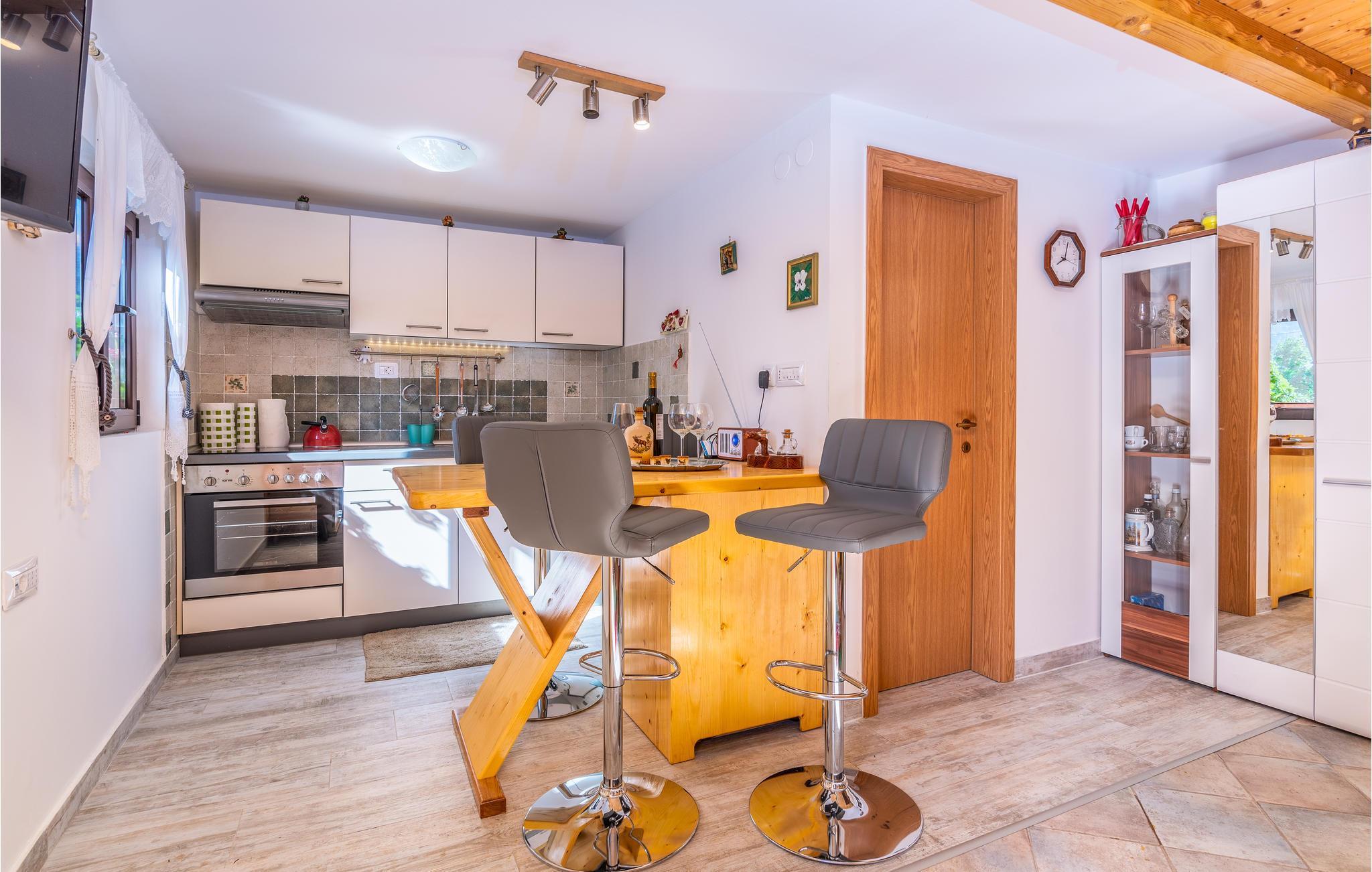 Tag hele familien med på ferie i det idylliske Gorski Kotar og bo i dette etplans feriehus omgivet af smuk natur og træer. Huset strækker sig over to etager, som er forbundet med en indedørs og stejl trætrappe uden gelænder og er ikke egnet til små børn og ældre. Regionen er gennemskåret af vandre- og cykelstier, hvor I kan plukke bær og finde svampe, og bare nyde livet. Oplev den smukke natur med klare søer, solrige enge, smukke bakker og bjerge, vandløb og floder. Dagsture kunne være til Risnjak- og Plitvice-søernes nationalparker eller at prøve rafting på Kupa-floden. På øverste etage er den laveste lofthøjde fra ca. 165 cm til ca. 50 cm. Der er en fælles terrasse med grill. Dette lille feriehus er ideelt til mindre familier eller vennepar. Er I flere der rejser sammen, så lej også CKB202.