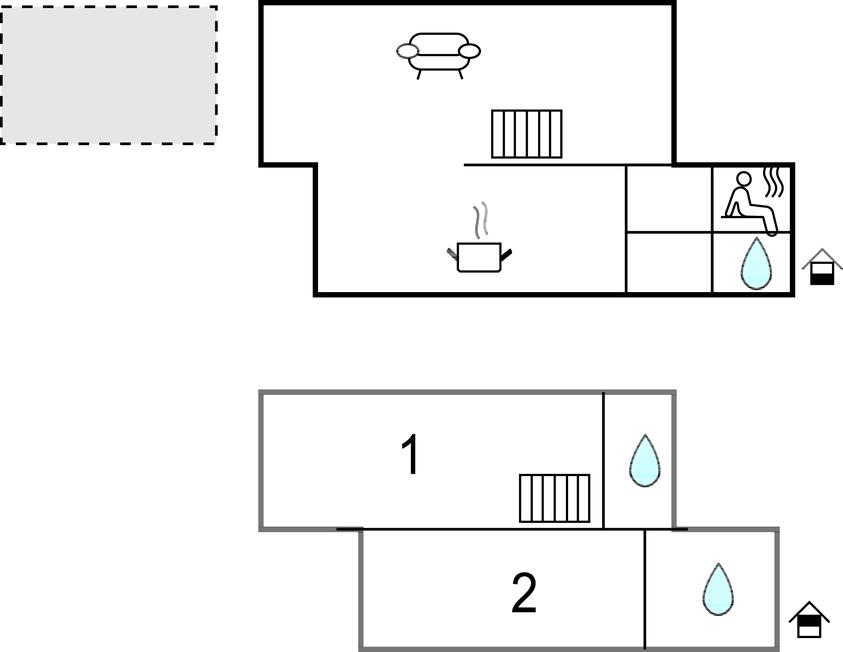 Opholdsstue/køkken 40m2 - 2 Sovepladser. (Sofa, madras eller lignende).