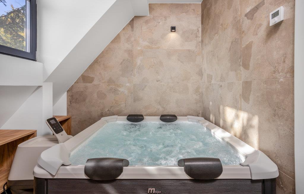 Velkommen til dette attraktive og moderne hus, hvor I kan hygge jer med familien. Det venter jer i en idyllisk beliggenhed i kystens landregion og er med sin smagfulde indretning og fremragende faciliteter det optimale sted for en dejlig pause fra hverdagen. Gulv til loft vinduer giver masser af lys ind i rummene og giver jer en vidunderlig udsigt udefra, når I vågner. Efter jeres udflugter kan I slappe af i spabadet, nyde en beroligende sauna og se frem til hyggelige aftener i en stilfuld atmosfære.