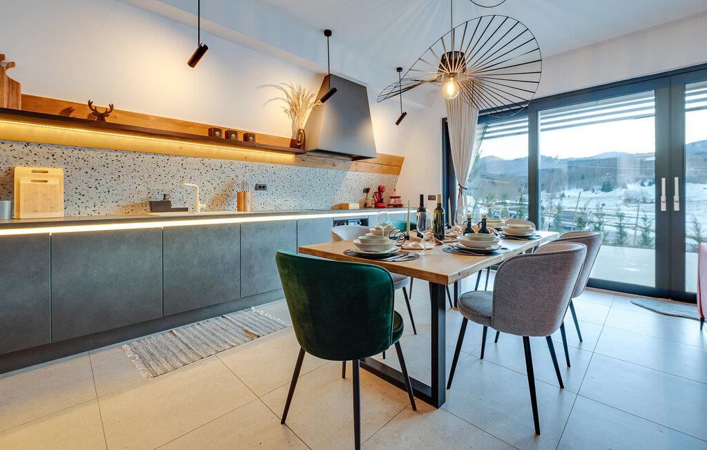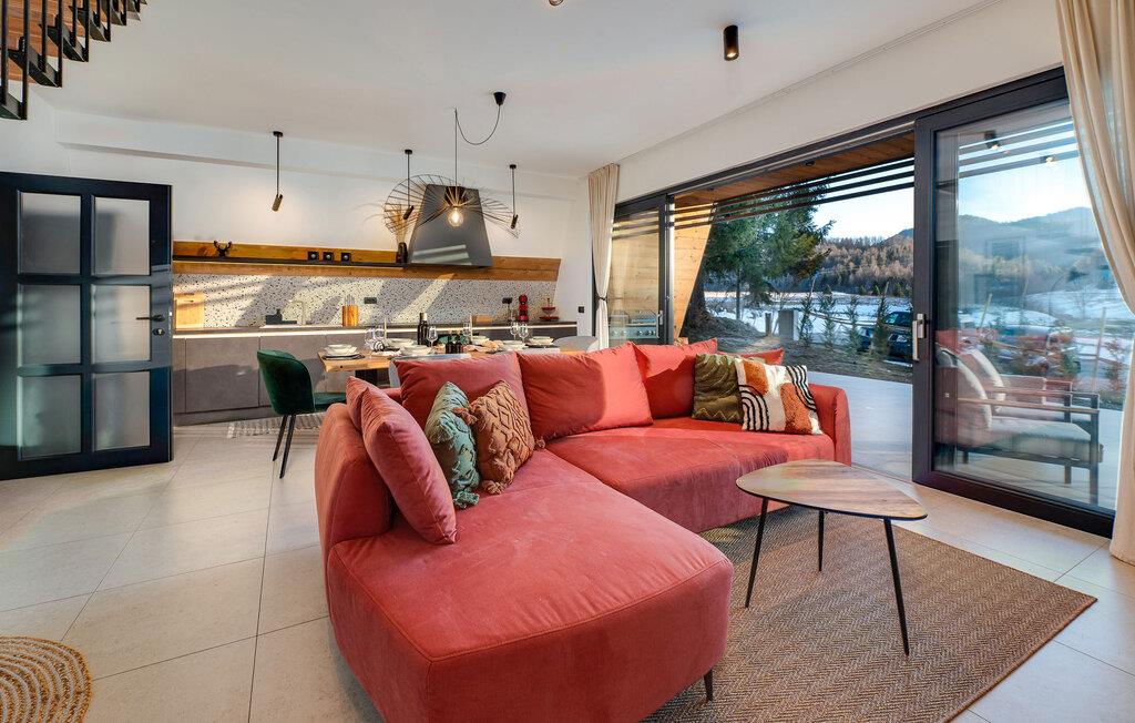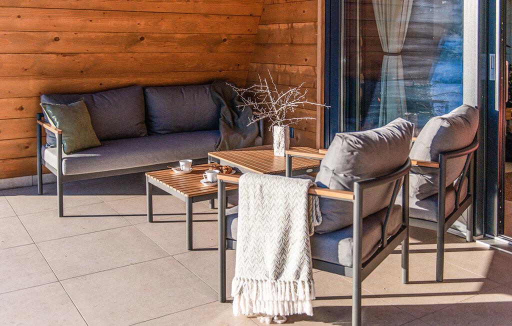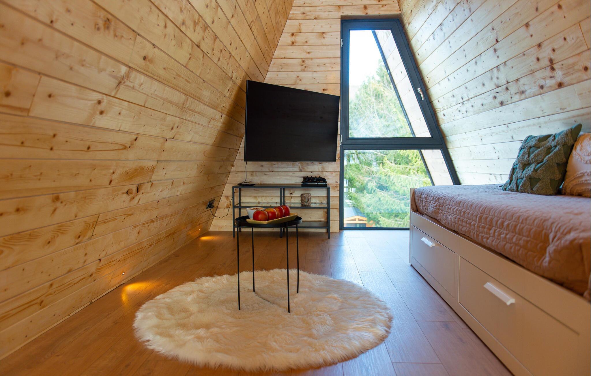 I vil straks føle jer hjemme i dette smukke telttaghus, som fordeler sig over to etager. Det rummelige feriehus kombinerer moderne design med rustik charme og byder på alt, hvad I skal bruge til en afslappende ferie. Det lyse interiør skaber en varm atmosfære, mens altanen og terrassen lægger op til afslappende timer i den friske luft. Husets højdepunkt er det luksuriøse wellness-område med sauna og spabad - perfekt til at slappe af efter en dag i naturen og nyde panoramaudsigten over det omkringliggende landskab.