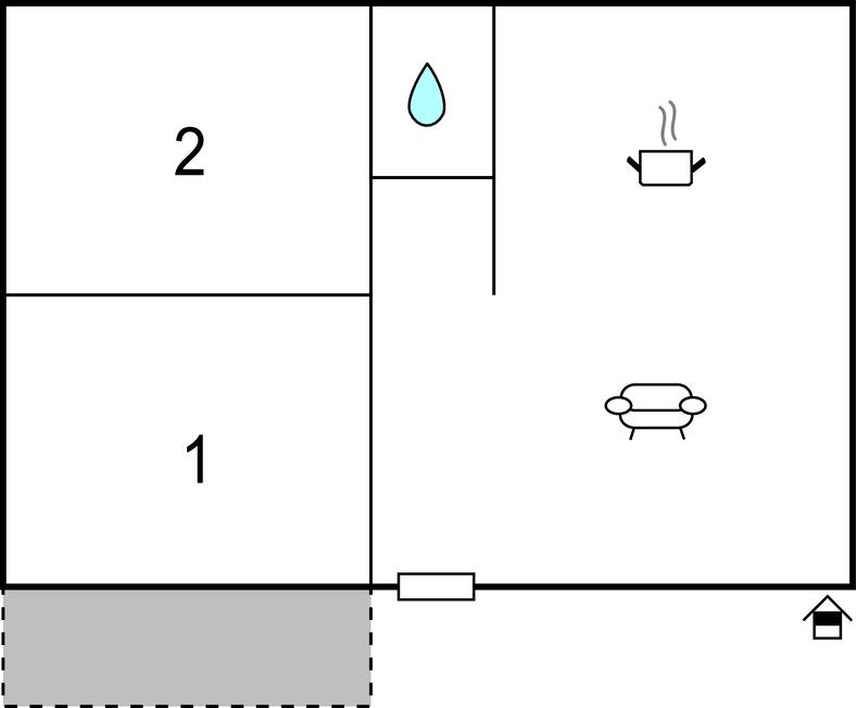 Opholdsstue/køkken 30m2 - 2 Sovepladser. (Sofa, madras eller lignende).