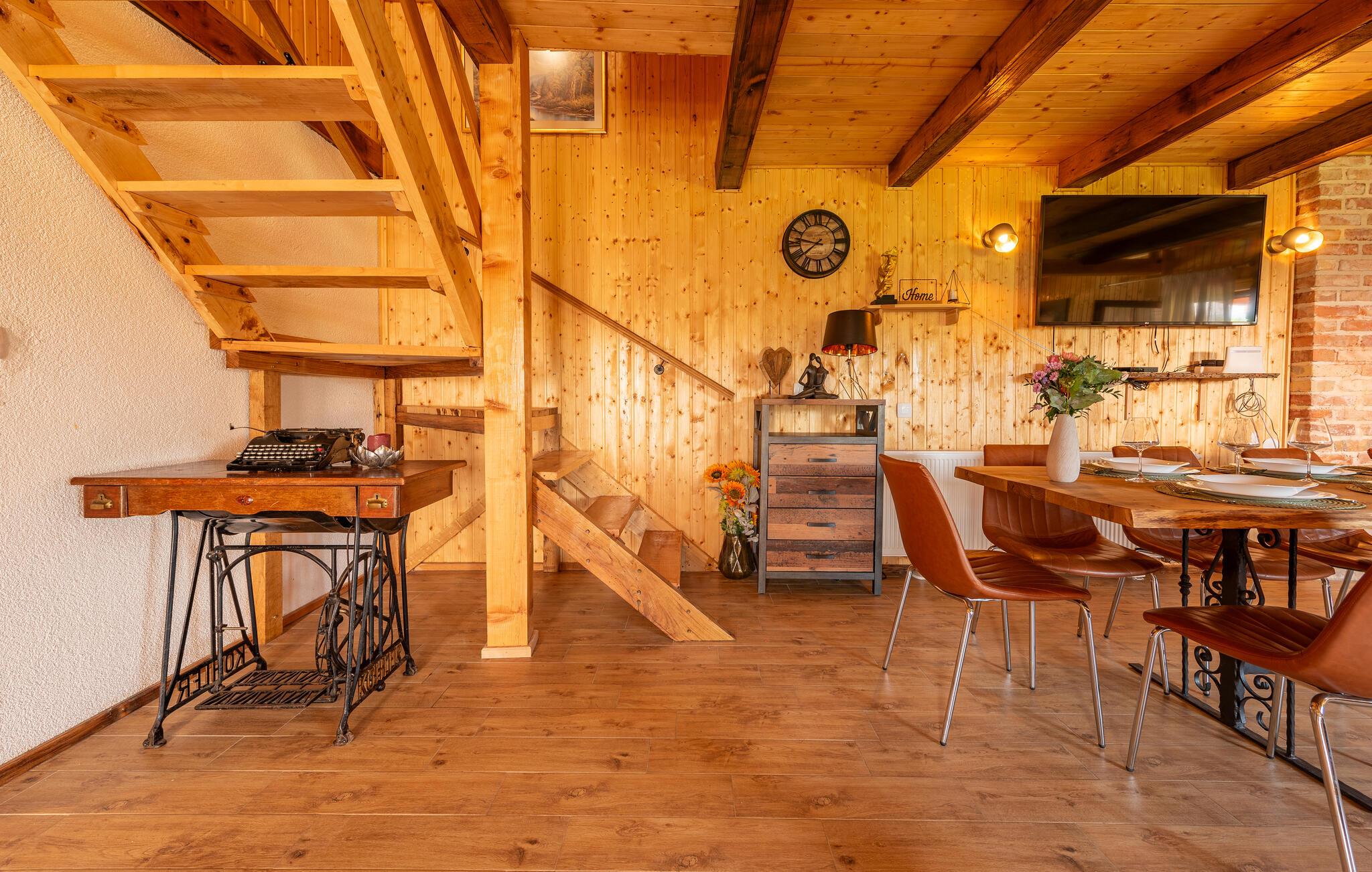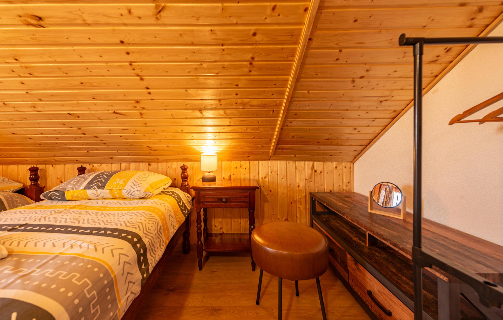 Dette fine detaljerede træhus venter på jer, gemt i det idylliske kroatiske landskab. Med moderne design, stilfulde værelser og smagfuld indretning er det det perfekte tilflugtssted. Den hyggelige stue med pejs lægger op til afslappende aftener, mens det veludstyrede køkken er ideelt til madlavningsaftener sammen.