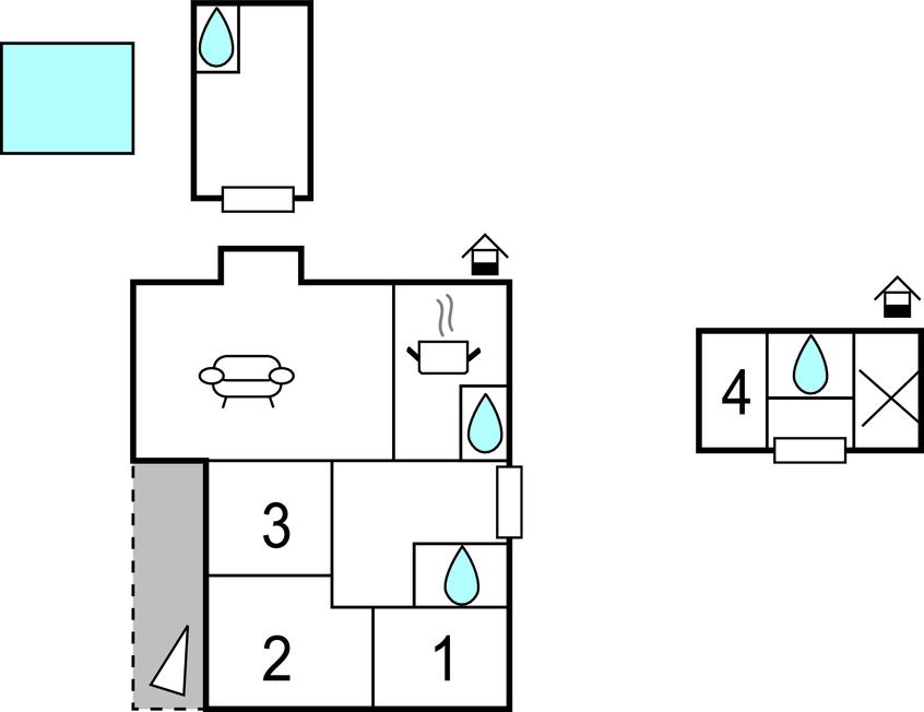 Badeværelse 5m2 (nr. 1) - WC. Varmt og koldt vand. Bruser
