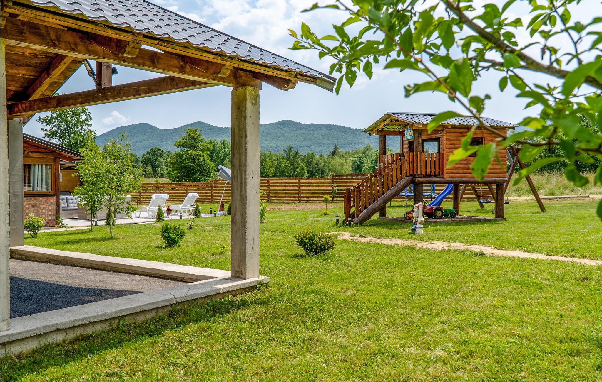 Tilbring en uforglemmelig ferie i dette komfortable og specielle feriehus. Dette indbydende feriehus byder velkommen i en tiltalende beliggenhed, det perfekte udgangspunkt for aktiviteter i naturen. Træhuset fortryller med en charmerende kontrast af moderne møbler og tunge trælofter og er det ideelle sted for en afslappende pause med dine kære. Her kan du finde dig rigtig godt tilpas, se frem til afslappende aftener i din ferieoase efter begivenhedsrige dage. Nyd solen og det fantastiske landskabspanorama i husets have, som er et legeparadis for børn. Du kan også vælge at tage dine måltider udenfor, komfortable loungemøbler inviterer dig til at slappe af på terrassen. Placeringen af huset giver dig mange aktiviteter. Der er flere floder og søer, der egner sig til svømning og fiskeri. Vandre- og cykelstier til Velebit og de omkringliggende bjerge er i nærheden. Du kan også nemt nå Plitvice Lakes National Park og havet herfra i bil. Zip-line, huler, adrenalinpark og quad-cykler tiltrækker eventyrlystne feriegæster. Du vil have gode minder fra din ferie i dette feriehus i lang tid.