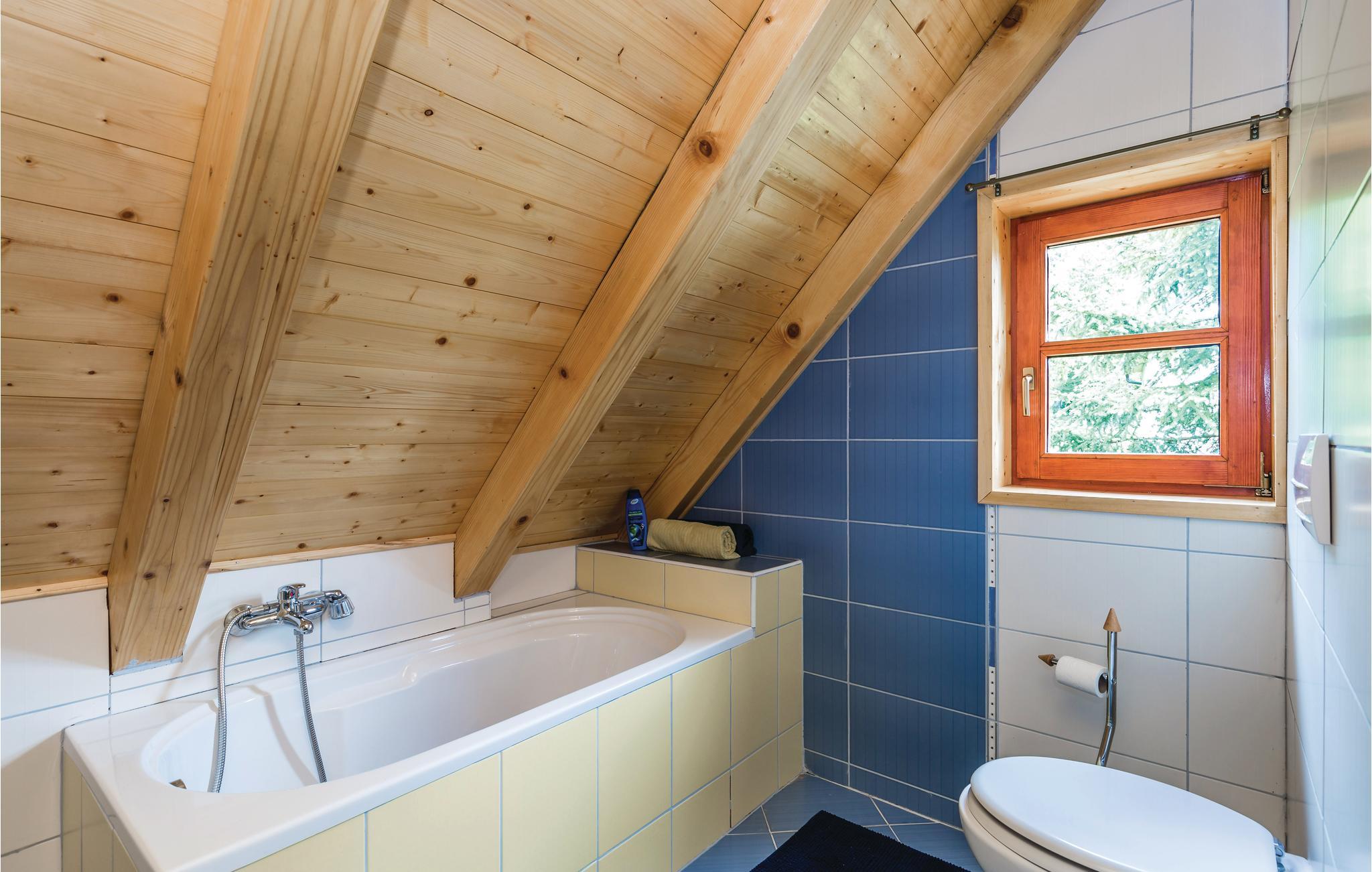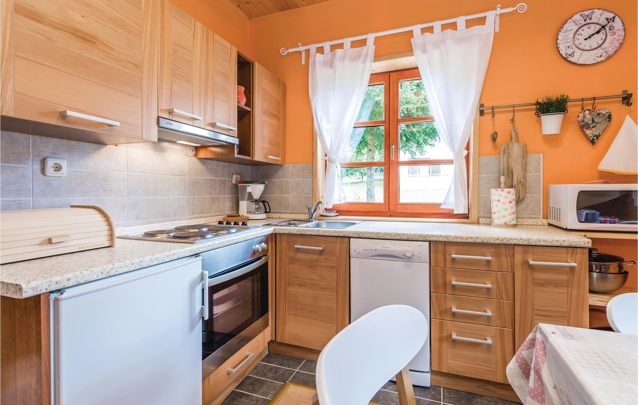 Nyd et afslappende ophold i dette charmerende feriehus i en lille landsby. Beliggende i grønne enge og omgivet af skove, er dette hus det ideelle tilflugtssted for friluftsmennesker og alle, der søger fred og ro. Mærk den varme og indbydende atmosfære, så snart I ankommer. Interiøret er kærligt indrettet med lyse trævægge og harmoniske farver. Læn jer tilbage i opholdsstuen på den komfortable sofa, mens brændeovnen udstråler hyggelig varme. I det åbne køkken med spisebord kan I lave mad og spise sammen eller afslutte dagen med et glas vin.