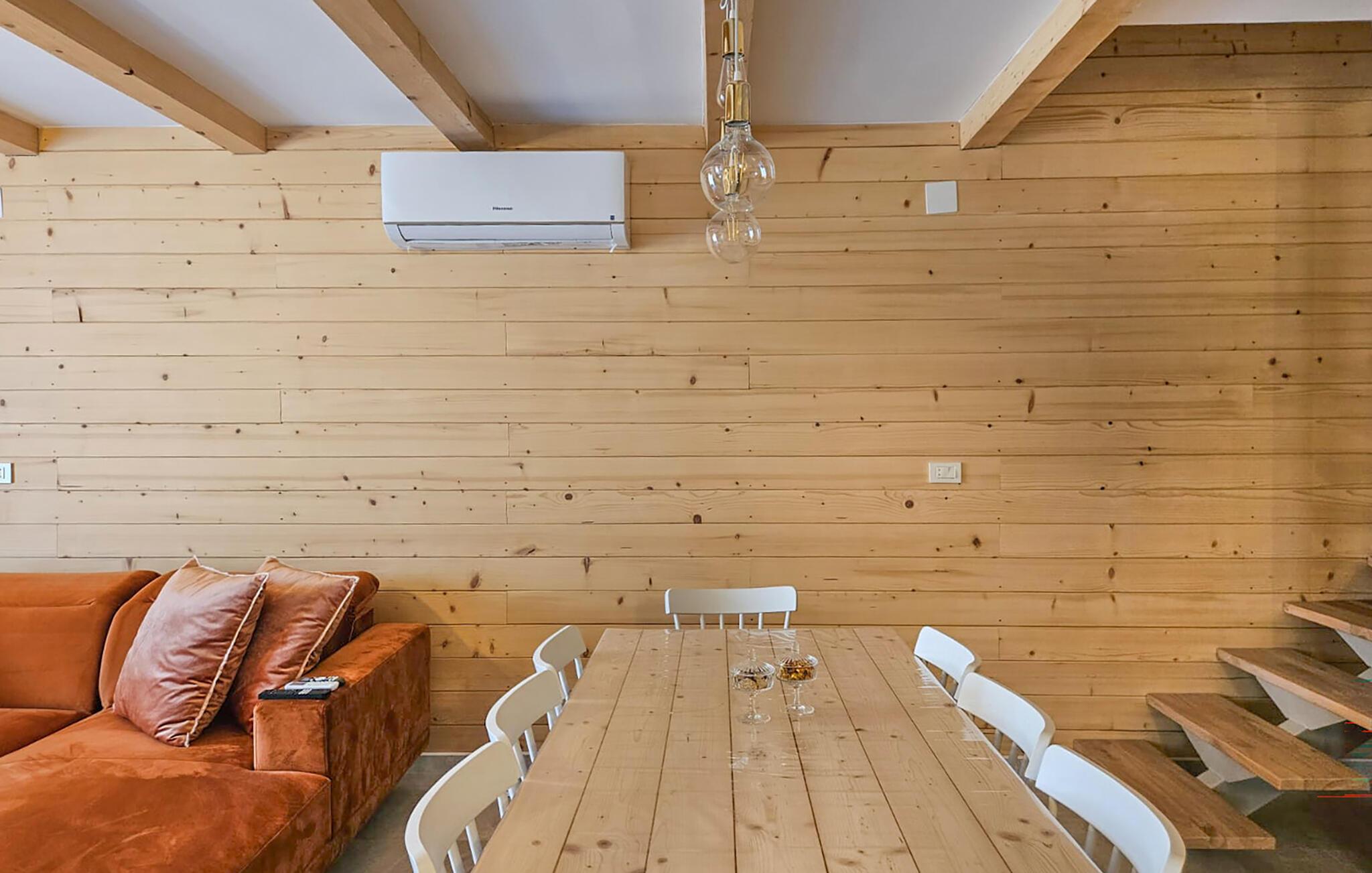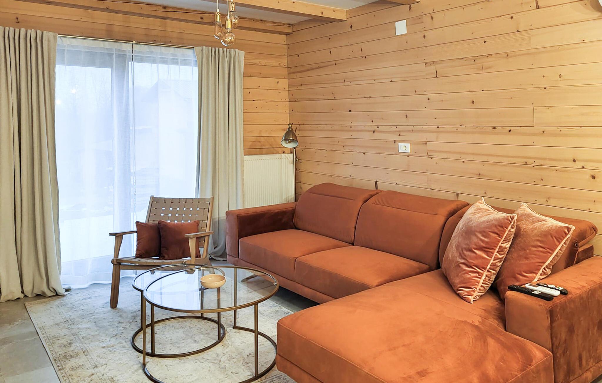 Dette hus blander problemfrit moderne komfort med en hyggelig atmosfære. Det byder jer velkommen med en atmosfære af varmt træ, diskrete farver og komfortable møbler, så I hurtigt kan falde i ferietilstand. Slap af, mens I lytter til musik, stream den nyeste serie eller forny jeres krop og sind i saunaens beroligende varme.