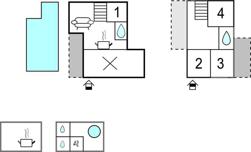 Badeværelse 4m2 (nr. 1) - WC. Varmt og koldt vand. Bruser