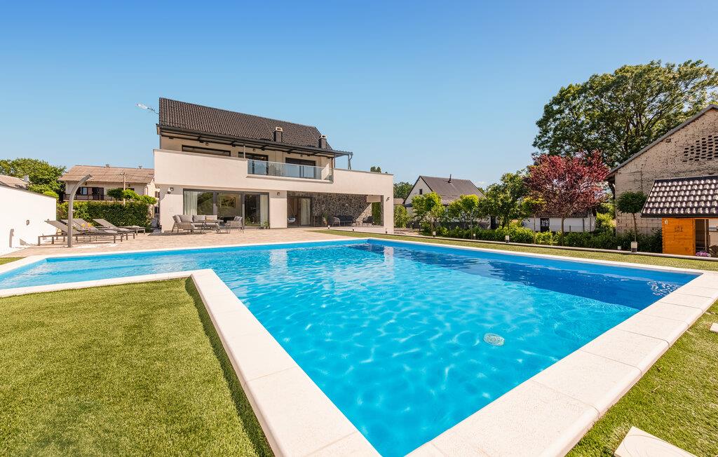 Nyd dette moderne og rummelige feriehus med pool i en rolig og idyllisk beliggenhed.